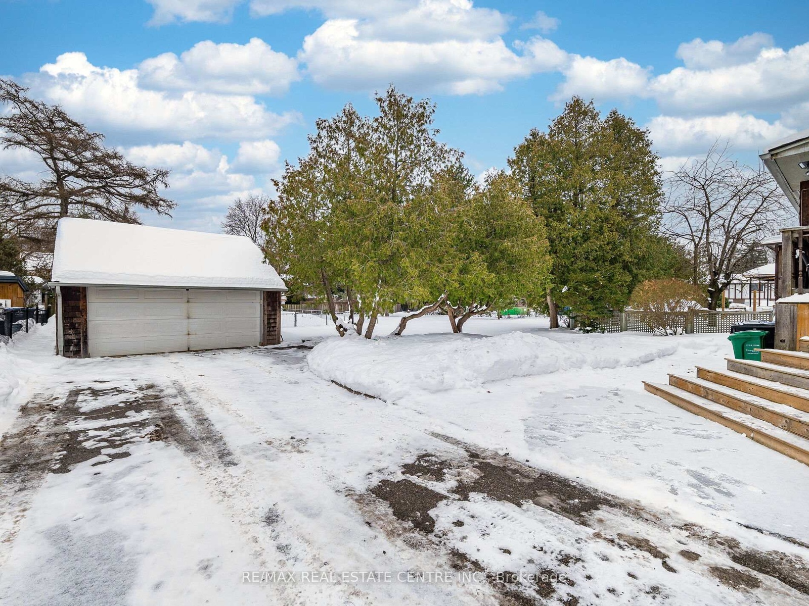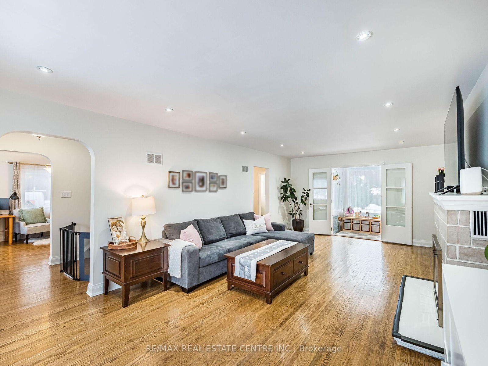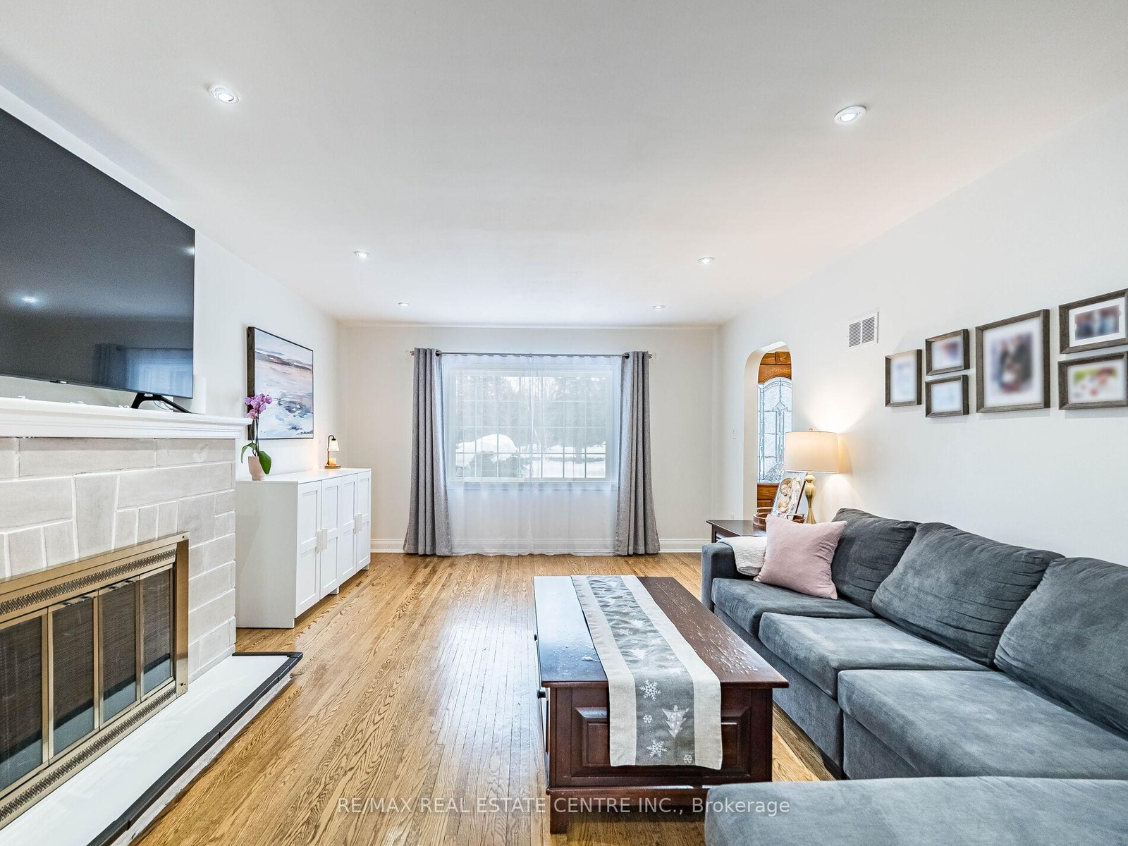 Cozy private and charming Cape Cod house located on huge over 0.6 acre (133 ft wide at the back) lot located across from Blythe Rd/ Doulton neighborhood. Home features large open concept room with hardwood floors, wood burning, fireplace and potlights, separate dining room with hardwood and picture window. home features family size kitchen combined with breakfast area and breafast bar. Good size bedrooms on the second floor, finished basement with 3 pc bathroom , workshop and great room.