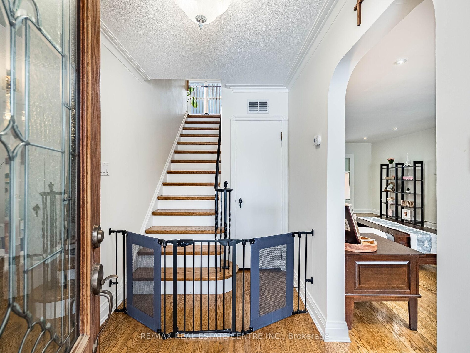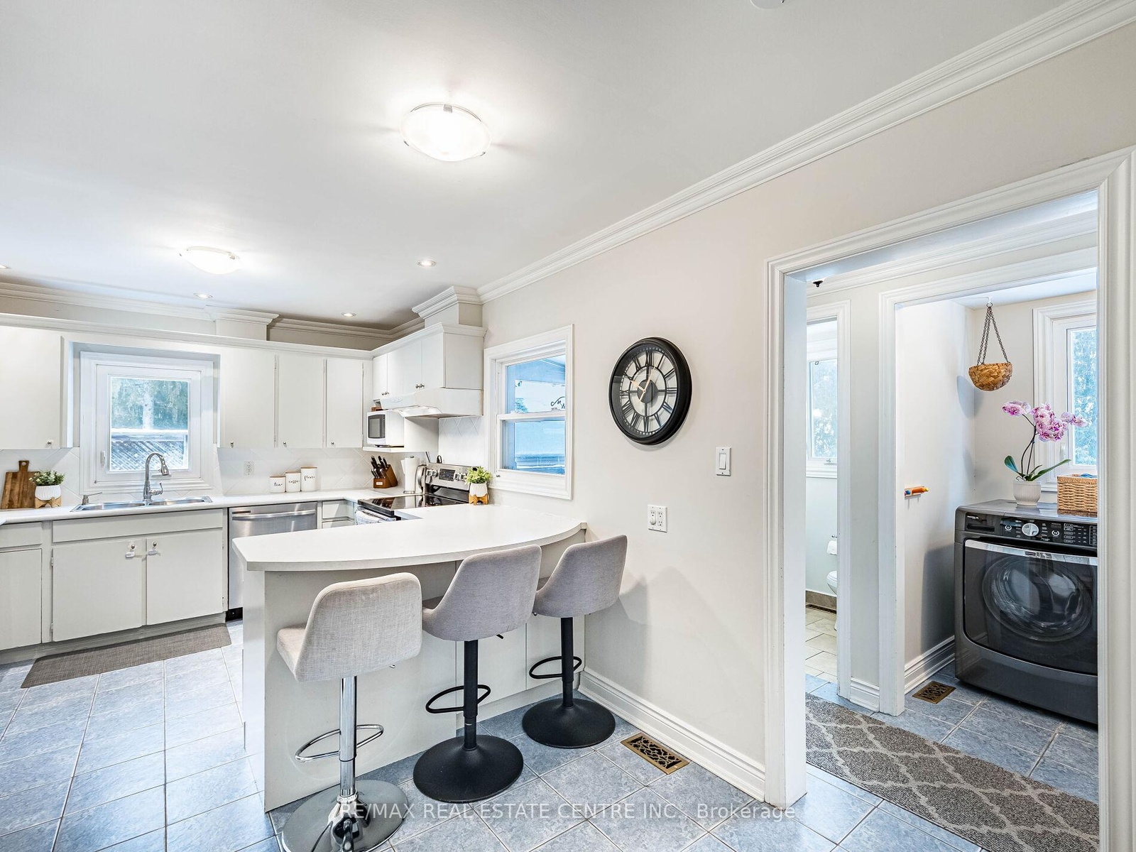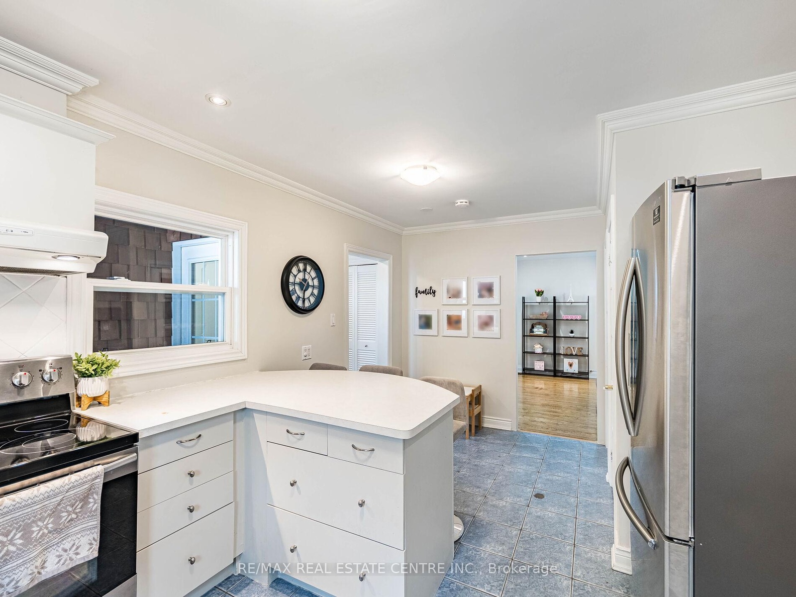 Cozy private and charming Cape Cod house located on huge over 0.6 acre (133 ft wide at the back) lot located across from Blythe Rd/ Doulton neighborhood. Home features large open concept room with hardwood floors, wood burning, fireplace and potlights, separate dining room with hardwood and picture window. home features family size kitchen combined with breakfast area and breafast bar. Good size bedrooms on the second floor, finished basement with 3 pc bathroom , workshop and great room.