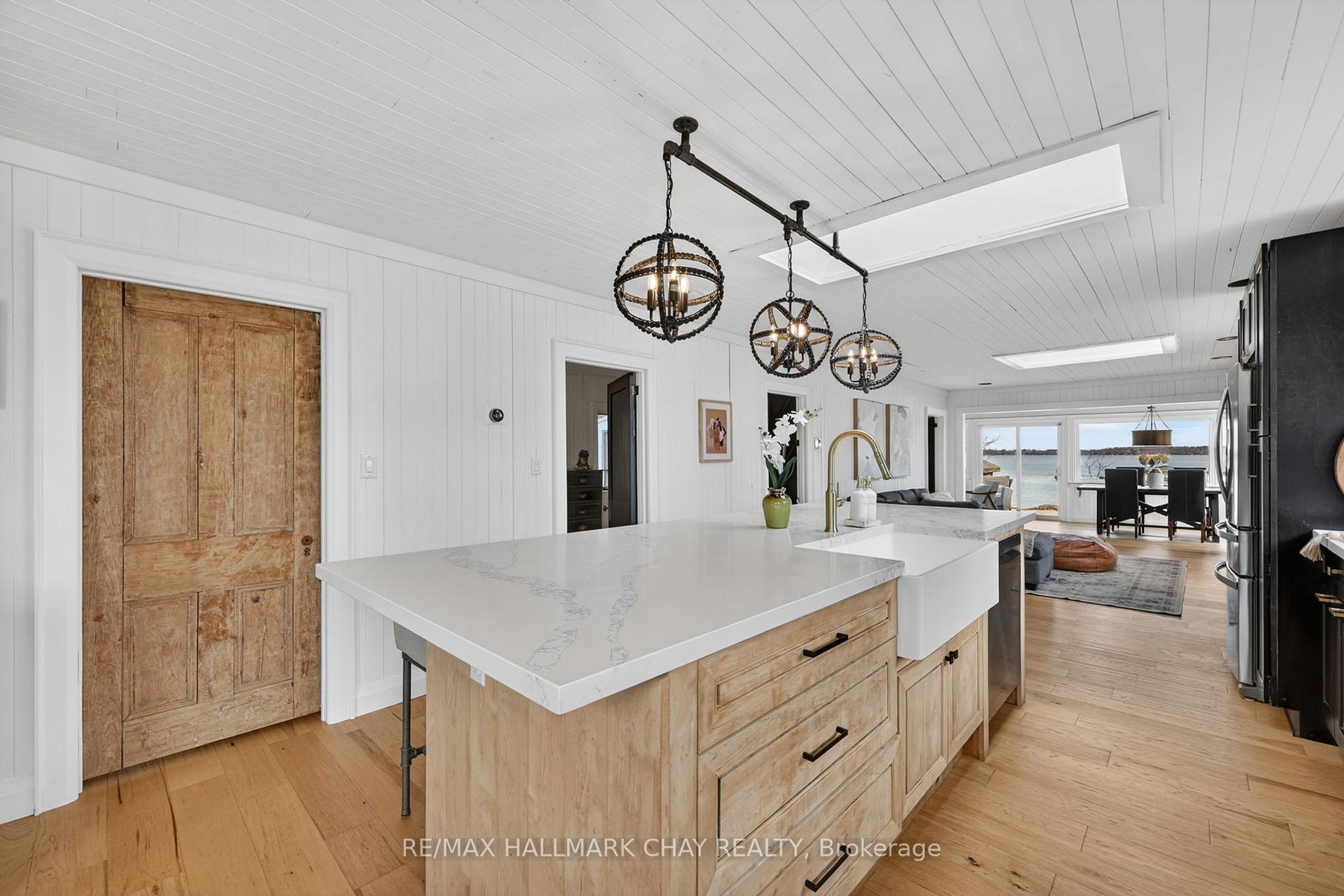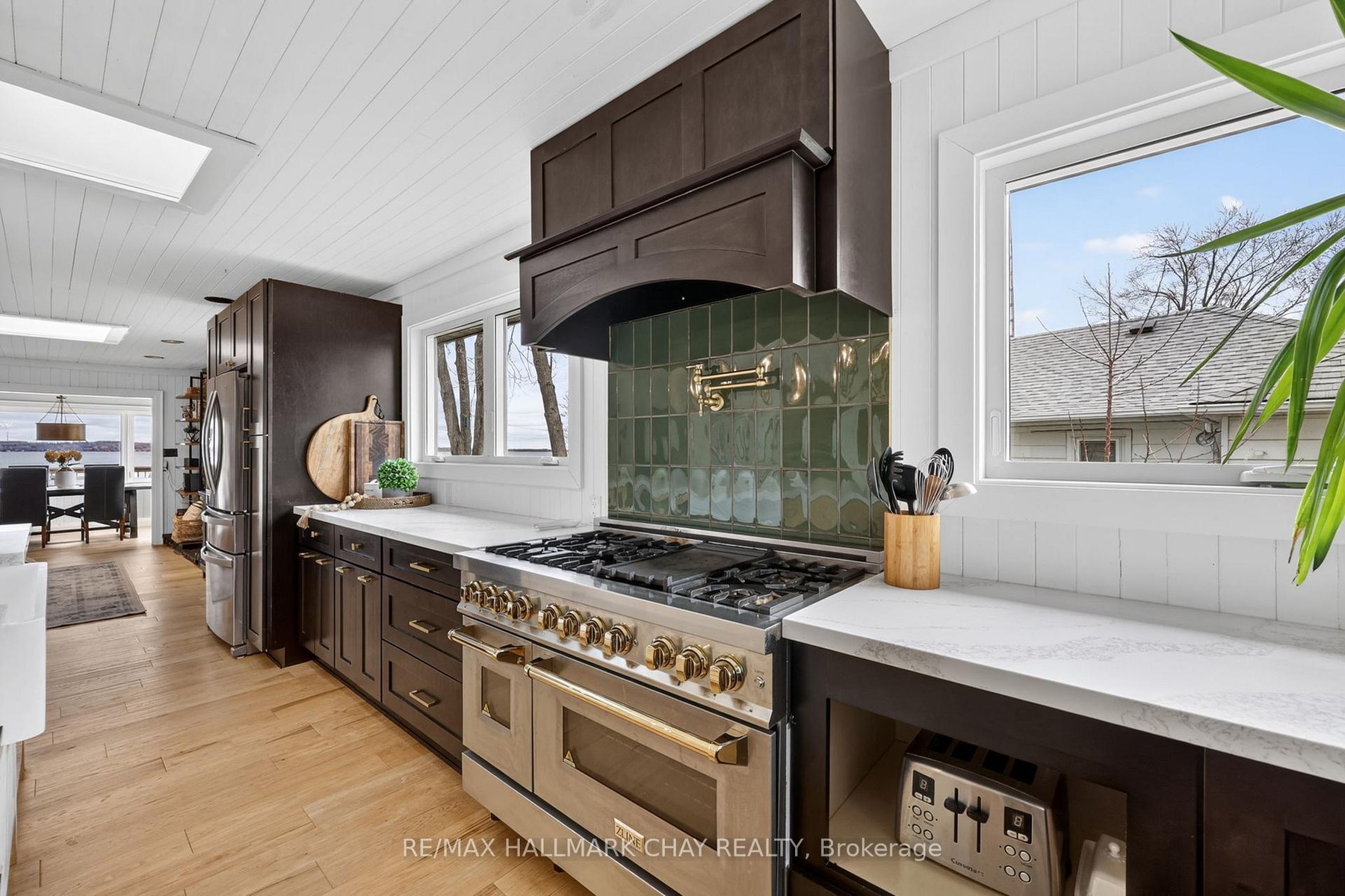 Experience the ultimate lakefront lifestyle with 50 ft of pristine, direct waterfront on Lake Simcoe's Cooks Bay! Tucked at the end of a quiet dead-end street and siding onto lush forest, this private 173-ft deep lot is a rare find! Enjoy endless outdoor fun with firepits, fruit trees, trampoline area, and space for family gatherings-plus you're just ~100 ft from a beautiful Lake Simcoe sandbar! This fully renovated home features a stunning chef's kitchen with a 10-ft island, farmhouse sink, ZLINE 8-burner gas stove, pot filler, double oven & skylights, complemented by hardwood floors and breathtaking water views from nearly every room. Relax by the cozy fireplace or soak in the gleaming water from the sun-filled dining/ sunroom. Main floor offers laundry with built-ins and a bright spacious mudroom with double-door entry. Upstairs, the primary retreat impresses with 14-ft soaring ceilings, private balcony, walk-in closet & spa-like ensuite with jacuzzi tub. Additional features include an oversized insulated detached garage (18'x16') with EV hookup & 100 AMP sub-panel, 200 AMP service, tankless water heater, nat gas BBQ hookup, hot tub pad & invisible fence. Recent Renovations; kitchen ('21), flooring ('22), most windows ('22), main floor bath ('26), shiplap décor ('21), washer/dryer ('21). Prime location minutes to beaches, boating, golf, ice fishing, shopping, restaurants, Yonge St & Hwy 400-your perfect year-round waterfront escape & Family home!