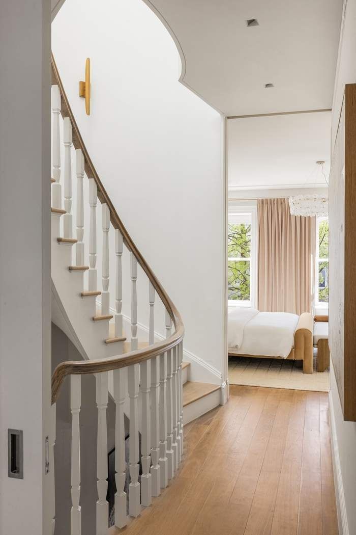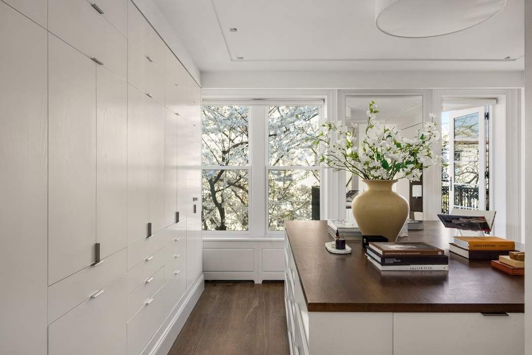 Spanning four expansive floors plus a finished cellar, the home is defined by extraordinary light and volume. A dramatic two-story window wall frames the garden, while a central skylight cascades natural light through each level—a highly coveted feature usually lacking in townhouse living.