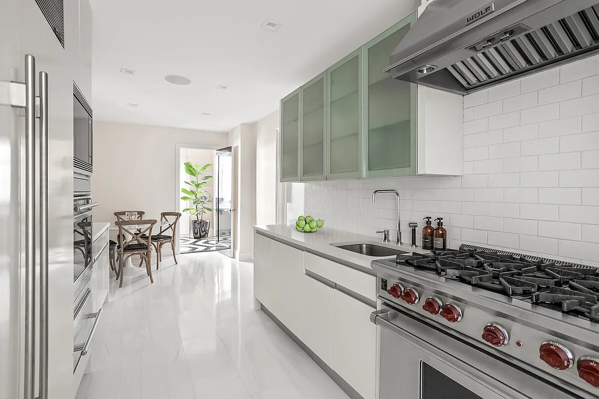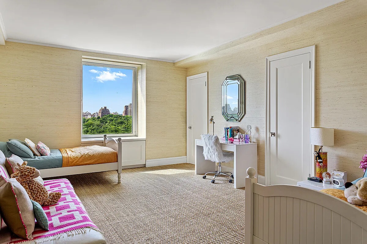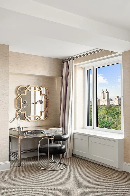 With more than 83 feet of windows facing Central Park, the home is bathed in natural light. All windows are state-of-the-art, noise-canceling, UV- and temperature-insulated double-pane glass. The windowed kitchen is outfitted with top-tier appliances-Wolf, Miele, and Sub-Zero-and custom cabinetry, while the newly completed bathrooms feature the finest fixtures by Waterworks, Porcher, Kallista, and Toto.