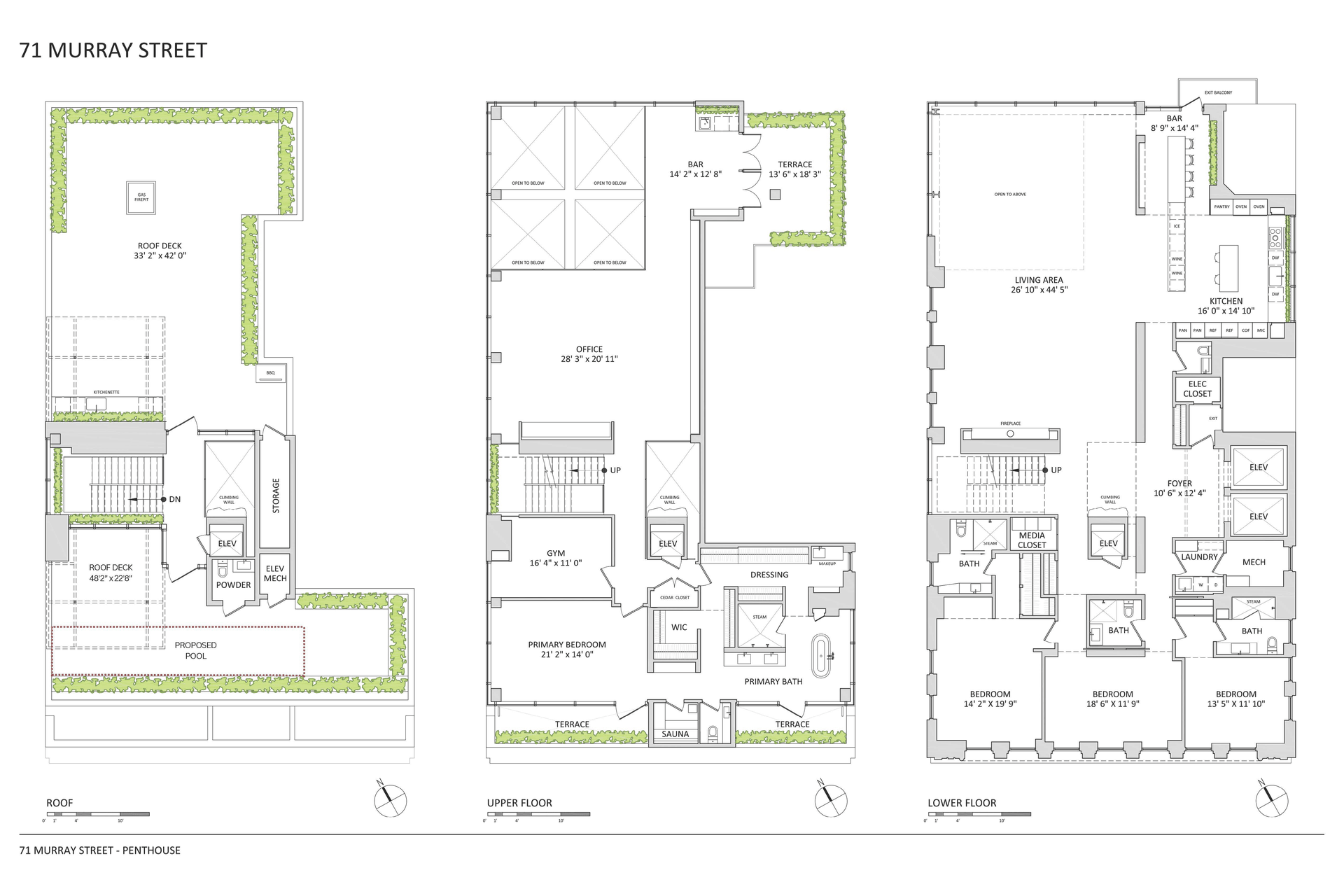 Situated in Tribeca’s cultural heart, 71 Murray Street is surrounded by acclaimed restaurants, boutiques, and waterfront parks, with easy access to major subways. With only twelve residences, a full-time doorman, and private storage, the building combines intimacy, discretion, and architectural integrity, creating a rare blend of glass, greenery, and light above downtown Manhattan.