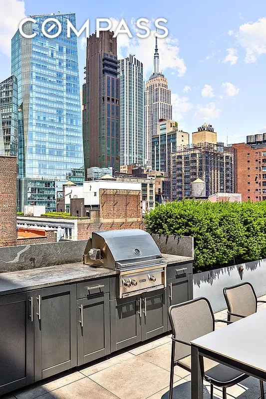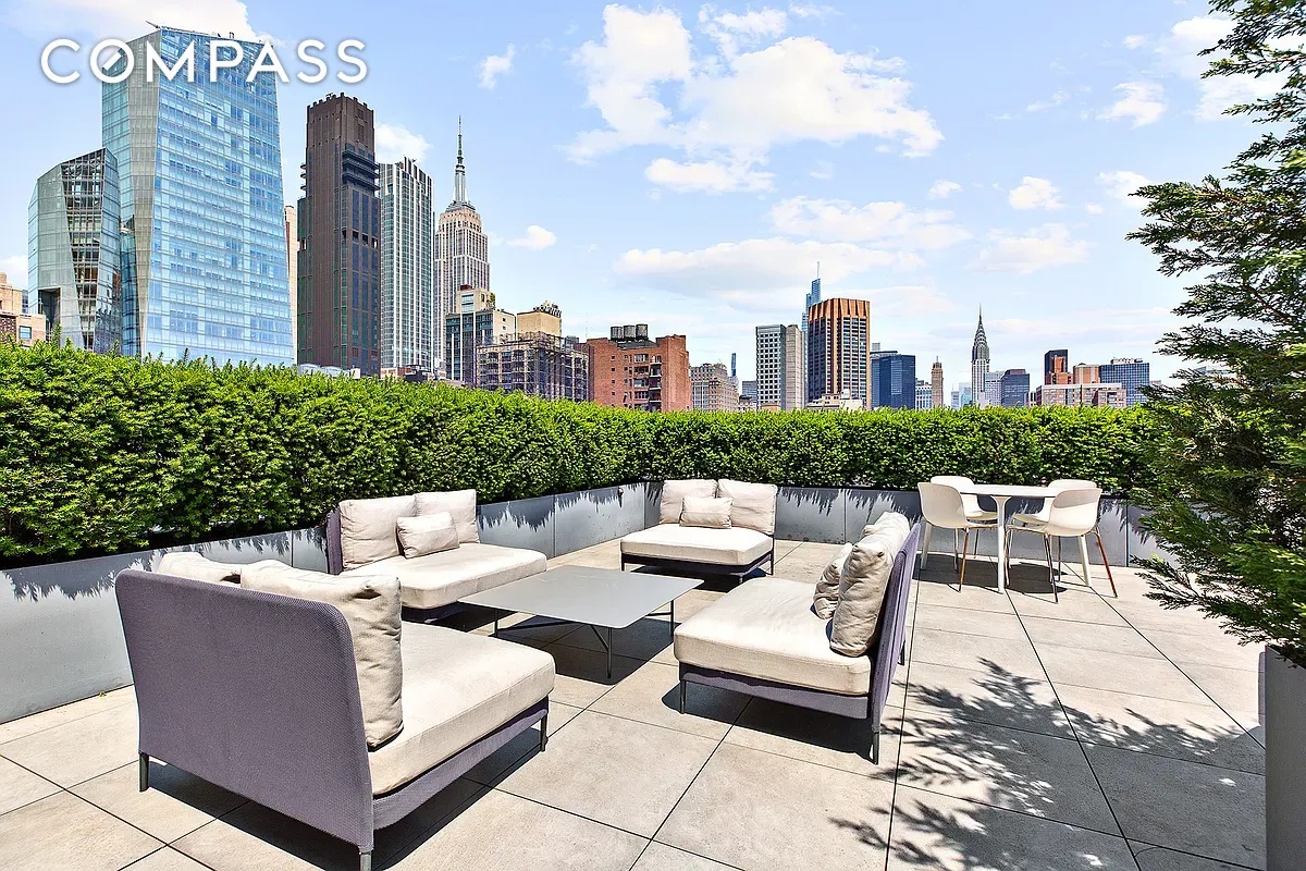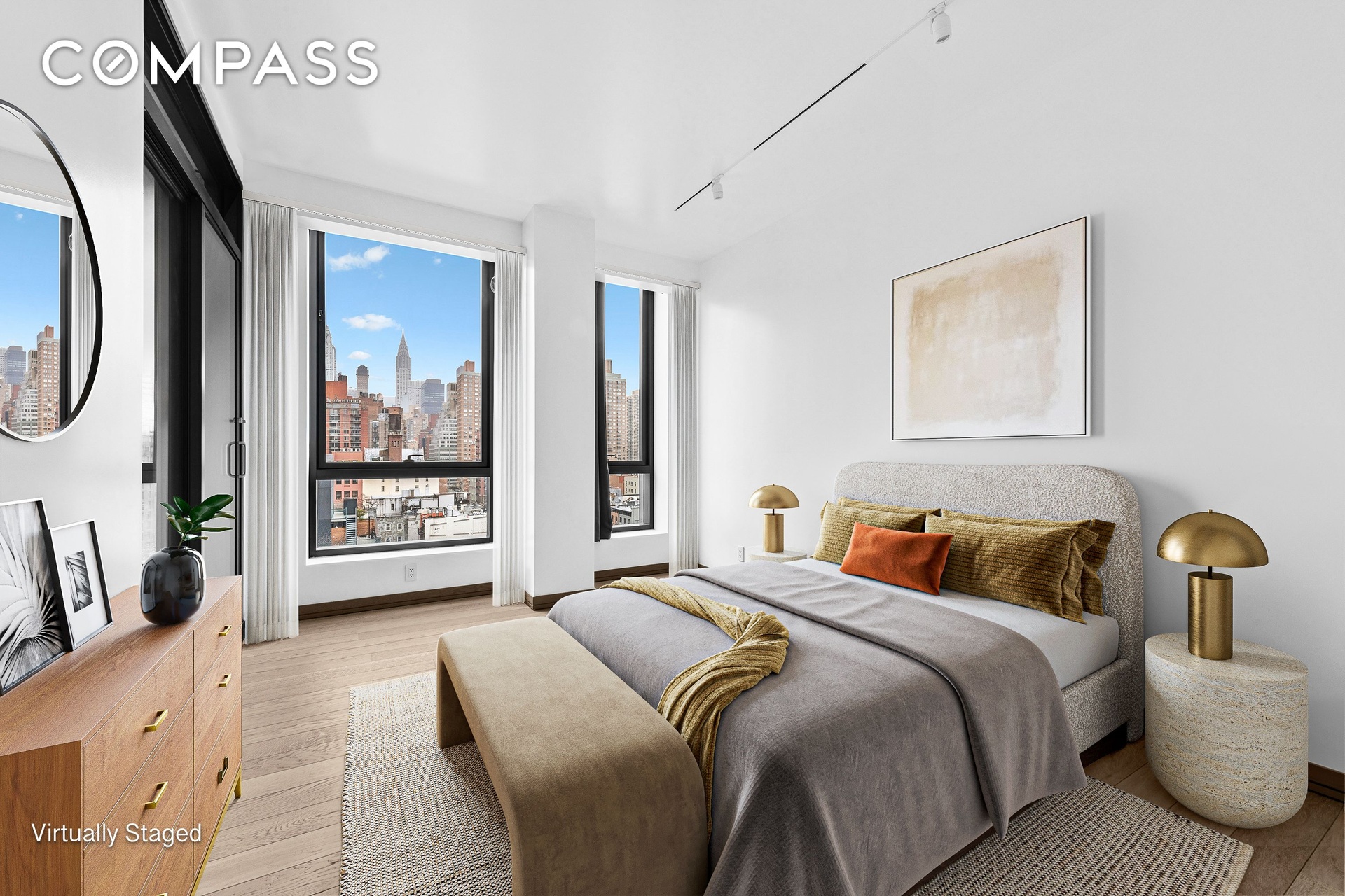 A beautifully proportioned one-bedroom, one-and-a-half-bath residence with soaring 10.5’+ ceilings, oversized north-facing windows, and a private terrace offering open city views with a glimpse of the Chrysler Building.