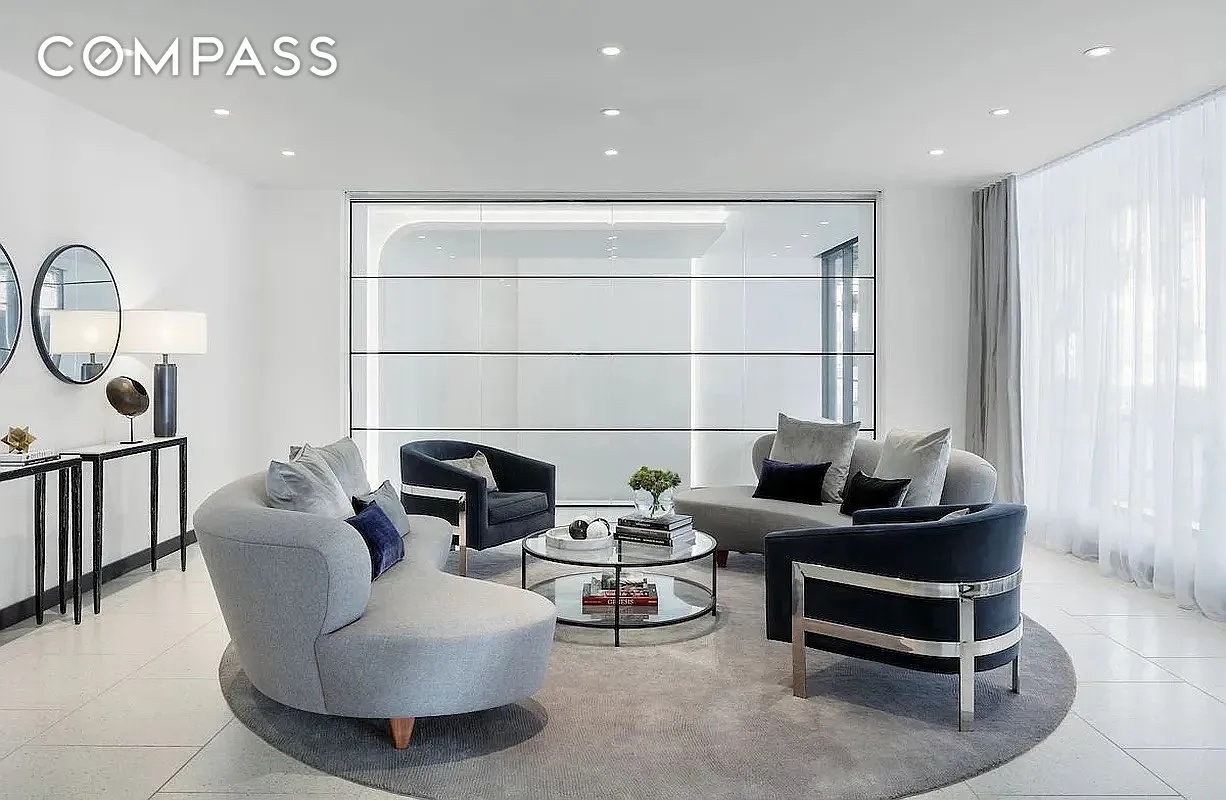 Designed by Workshop/APD, the home features a seamless open layout with a refined material palette of French limestone, silver travertine, and fumed grey oak flooring. Thoughtful details throughout include cove lighting, custom storage, solid wood doors, and concealed window pockets wired for motorized shades.