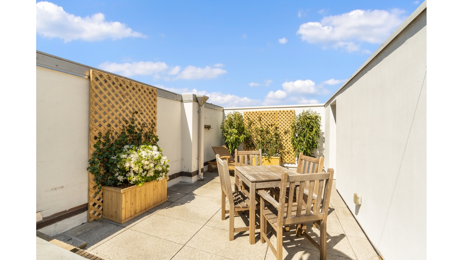 The crown jewel of the residence is the private outdoor space-a completely secluded oasis tucked away from the city's hustle. Rather than competing with the skyline, this "outdoor room" is a private sanctuary surrounded by lush, curated specimen plantings. Outfitted with its own grill, it is the perfect setting for quiet al fresco dining or hosting intimate gatherings in total privacy.