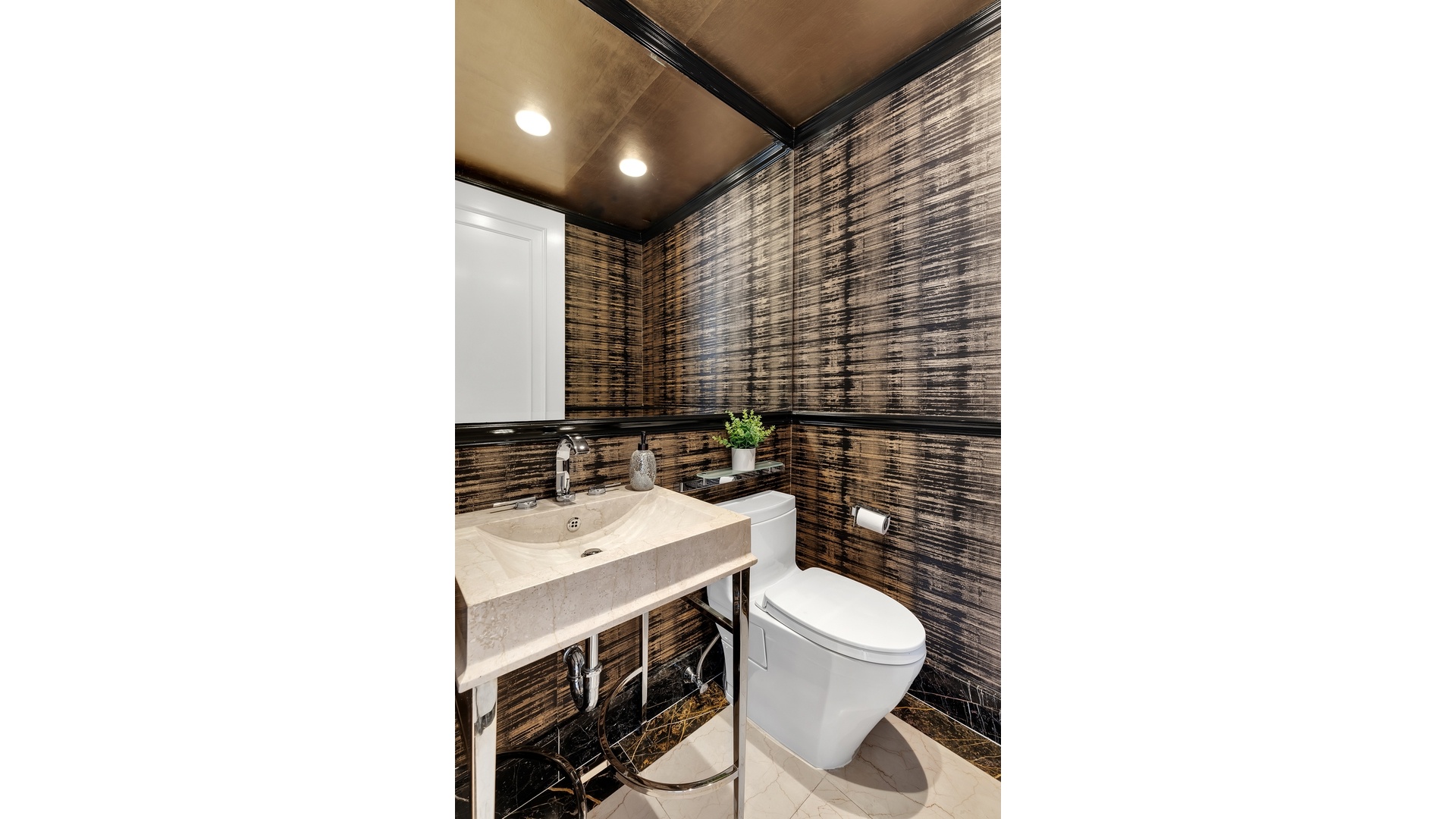 The primary bedroom suite is situated parallel to the Hudson River, with sweeping water views and a custom full-wall built-in television unit for the perfect blend of rest and private entertainment. The en-suite bath is finished with artisan stone, heated surfaces, and spa-level appointments throughout. Each of the two additional bedrooms offers its own generously proportioned en-suite bath with elegant detailing. An integrated in-ceiling sound system, zoned climate control, and custom architectural lighting complete the living experience across the full home.