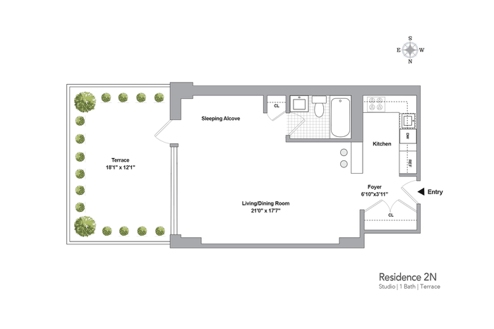 ATTENTION OUTDOOR LOVERS - JUST RENOVATED, SPACIOUS ALCOVE STUDIO w/PRIVATE TERRACE