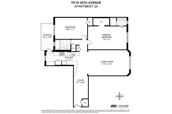 Welcome to Residence 3A at 79-10 34th Avenue, a beautifully proportioned two-bedroom, two-bathroom home in the heart of the Jackson Heights Historic District. Thoughtfully designed with a spacious layout, refined finishes, and a rare private terrace, this residence offers the perfect blend of prewar charm and modern comfort.