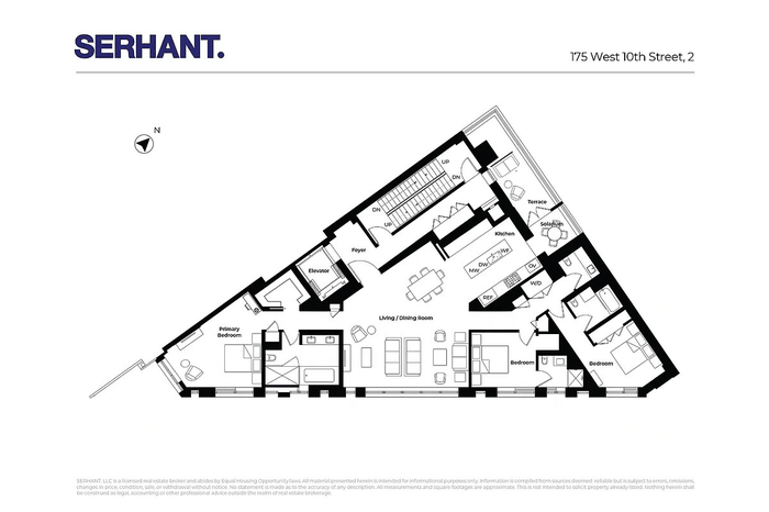 A full-floor residence at 175 West 10th Street, this 3-bedroom, 3.5-bath home spans approximately 2,700 square feet with private outdoor space and a thoughtful, design-driven layout.