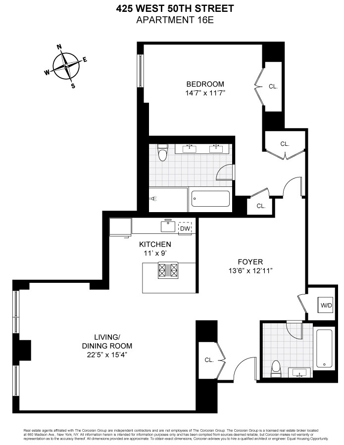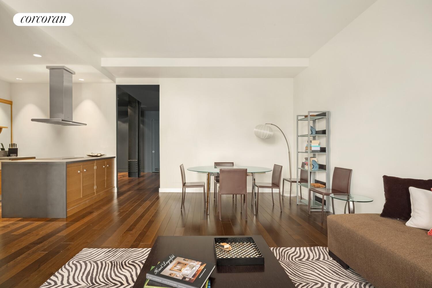 Residence 16E at Stella Tower spans approximately 1, 400 square feet and offers soaring ceilings in a gracious one bedroom layout with two full baths.
