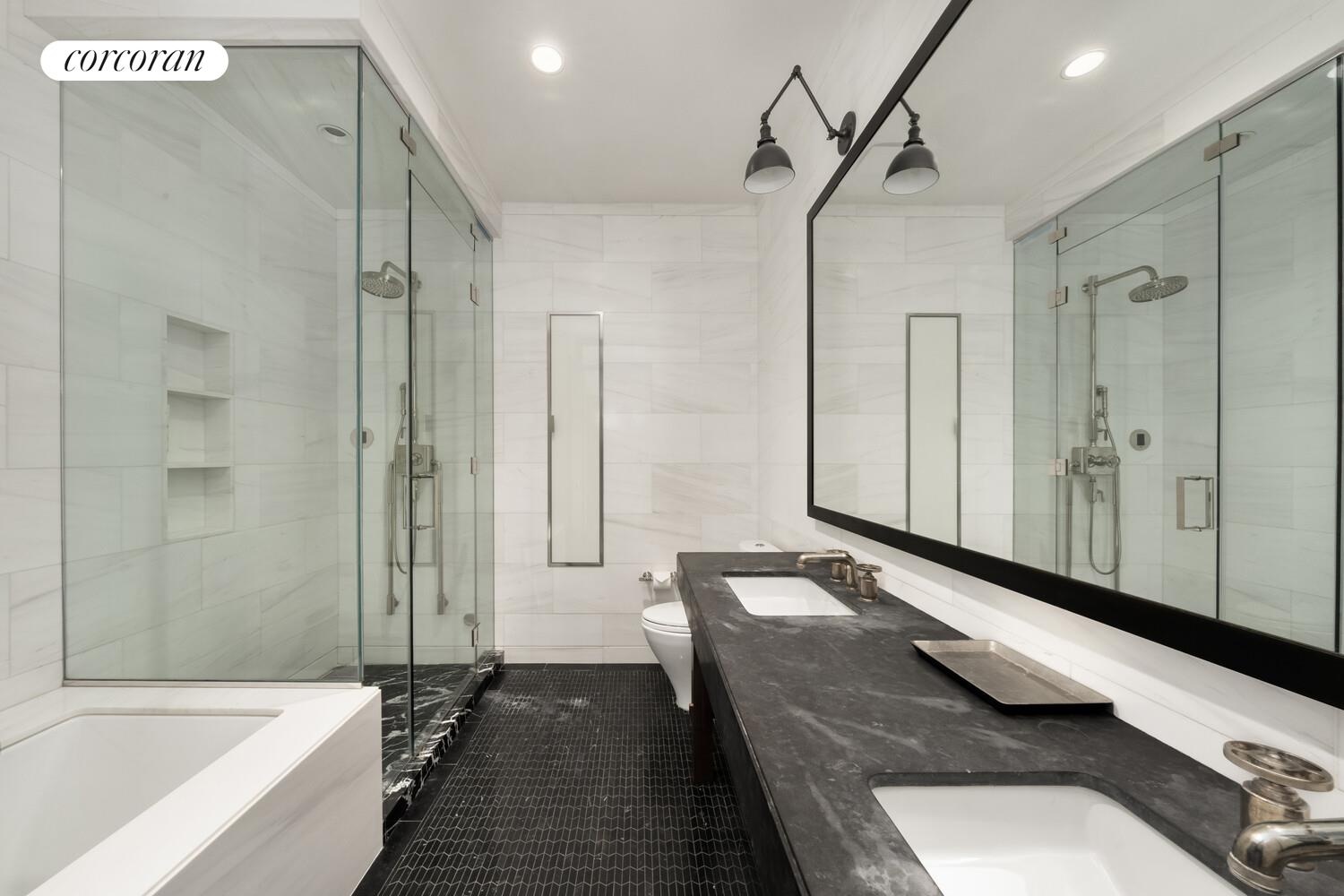 Residence 16E at Stella Tower spans approximately 1,400 square feet and offers soaring ceilings in a gracious one-bedroom layout with two full baths. Western exposures showcase dramatic views of the Manhattan skyline and Hudson River presented through custom oversized tilt-and-turn windows. The open kitchen includes handcrafted, custom Smallbone of Devizes European Oak cabinetry, polished concrete countertops, and Miele appliances. The bedroom features ample closet space and an en-suite bath complete with radiant floor heating, a glass-enclosed steam shower, and a cast iron soaking tub. Each residence has a Bosch washer and dryer as well as a self-contained, zoned HVAC system regulated by a Nest Learning Thermostat. Additional apartment details include custom hand-laid oak flooring, solid wood doors, Nanz hardware, and Waterworks R.W. Atlas fixtures throughout. Stella Tower is one of New York City's finest examples of pre-war architecture. Designed in 1927 by architect Ralph Walker, the father of the modern telephone building and architect of Walker Tower, Stella Tower has been transformed into an elegant residential building on West 50th Street in Hell's Kitchen.