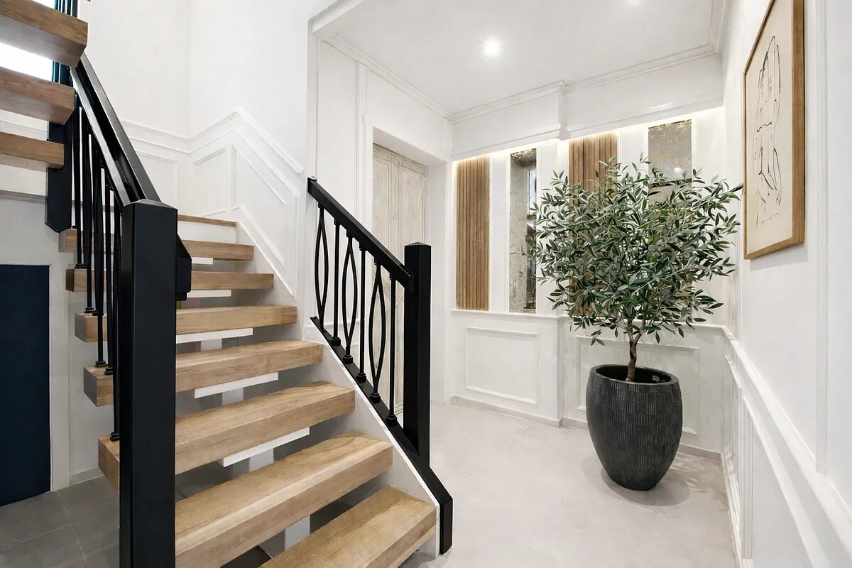 A one-of-one, the penthouse is a spacious three-bedroom, two-bath, and one-half-bathroom duplex offering 2,219 square feet of interiors and an exceptional 789 square feet of outdoor space across the top two levels. The layout composition provides a clear separation between living and private areas, creating a comfortable and well-balanced home.