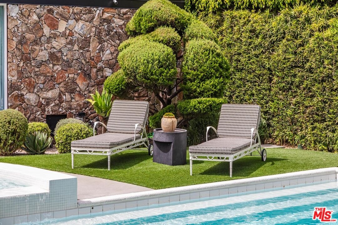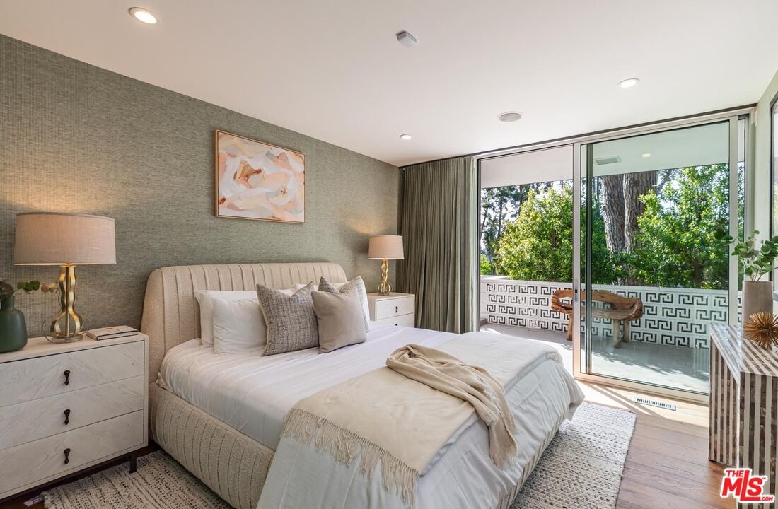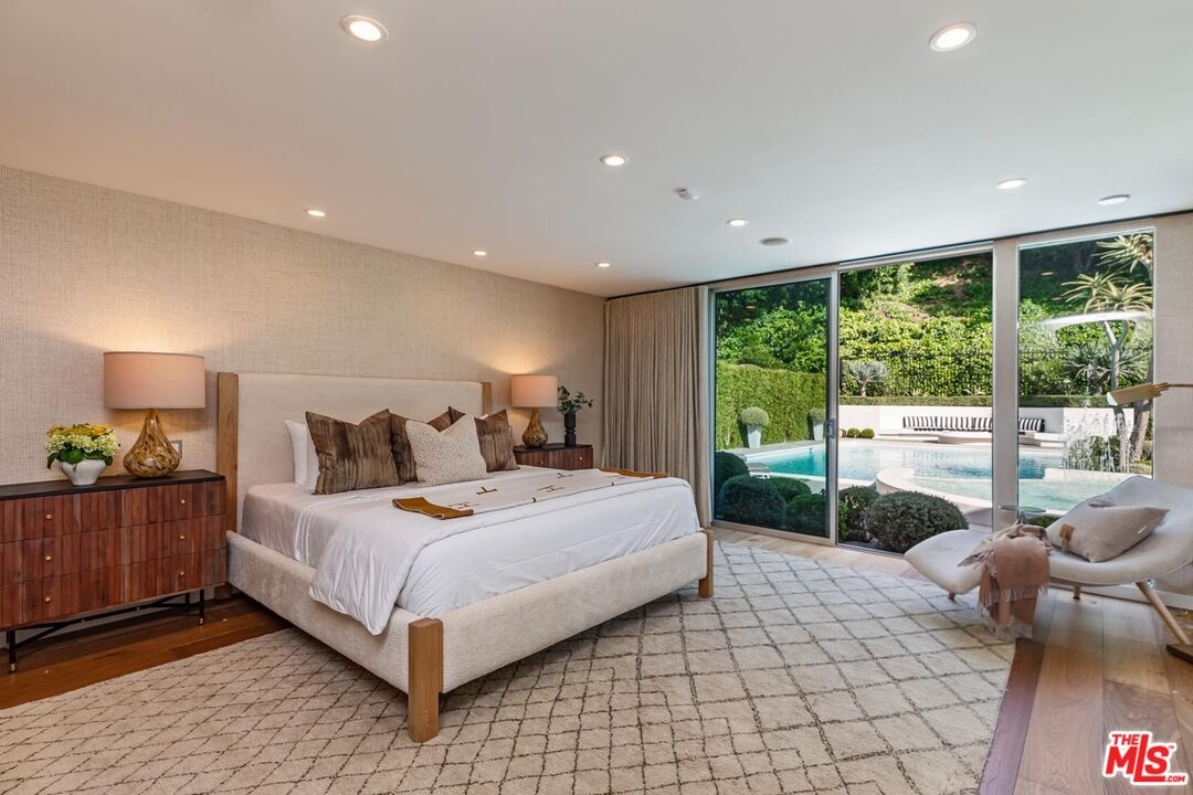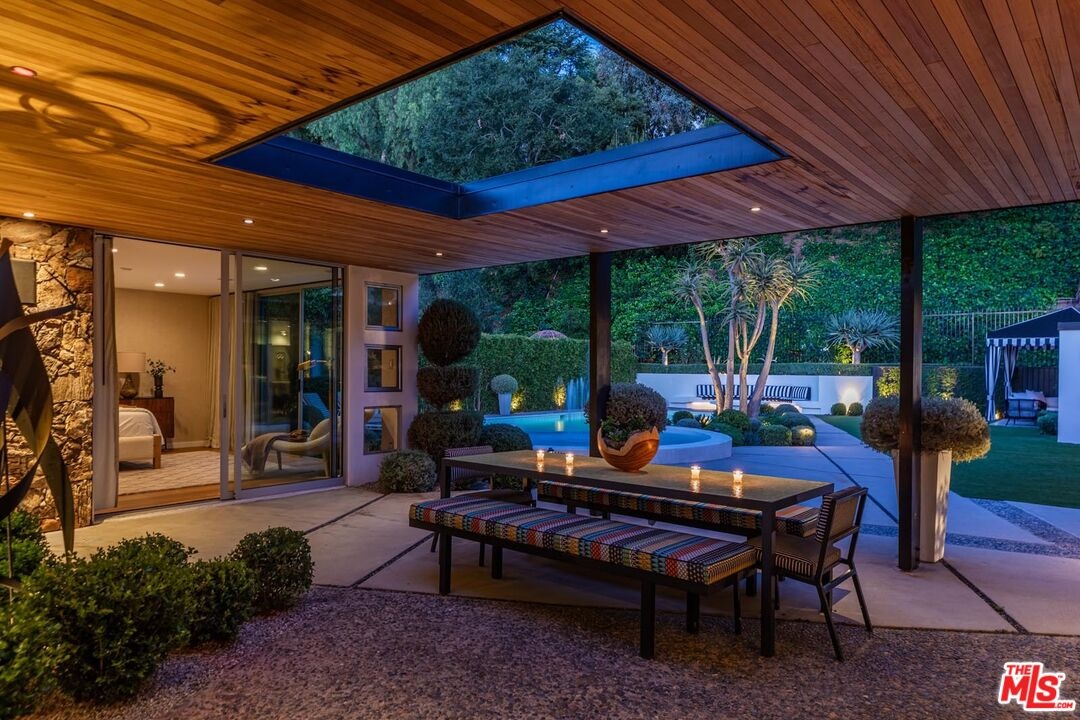 Timeless in Trousdale, this extraordinary 3,890-square-foot residence rests on a sweeping 21,467-square-foot lot, masterfully reimagined to honor its architectural lineage while embracing a refined, modern sensibility. A storied setting for high-profile gatherings from intimate soires to notable charitable events the home carries a legacy of effortless entertaining and understated glamour. Originally designed by architect Marvin Berman, a protege of Richard Neutra, the estate is a study in elevated mid-century design. Clean lines, curated materials, and a seamless indoor-outdoor flow define the experience, with walls of glass framing verdant hillsides and exceptionally private grounds, inviting natural beauty into every moment. The interiors unfold with quiet sophistication, balancing warmth and scale. At the center, the chef's kitchen blends function and style, anchored by a generous island, top-tier appliances, and a charming built-in banquette that nods to the home's heritage. The primary suite offers a true sense of retreat, complete with dual baths and expansive closets, designed for both comfort and ease. Outdoors, a newly renovated pool and sculptural fountain create a serene, resort-like setting, where the sound of water and layered landscaping elevate the ambiance from day to evening. Modern enhancements including a full smart home system, Tesla backup batteries, and an EV charger are thoughtfully integrated, ensuring contemporary convenience without disrupting the home's architectural integrity. Just moments from world-class dining, premier shopping, and Beverly Hills' most iconic destinations, this is Trousdale at its most enduring where architectural pedigree, complete privacy, and elevated design come together in effortless harmony.