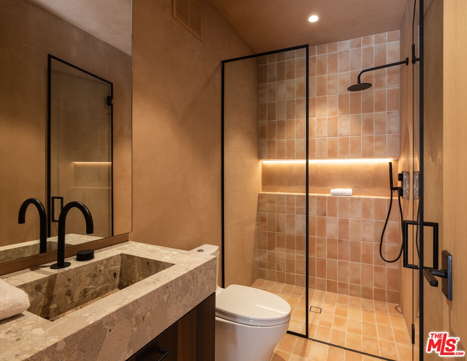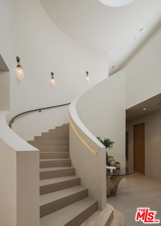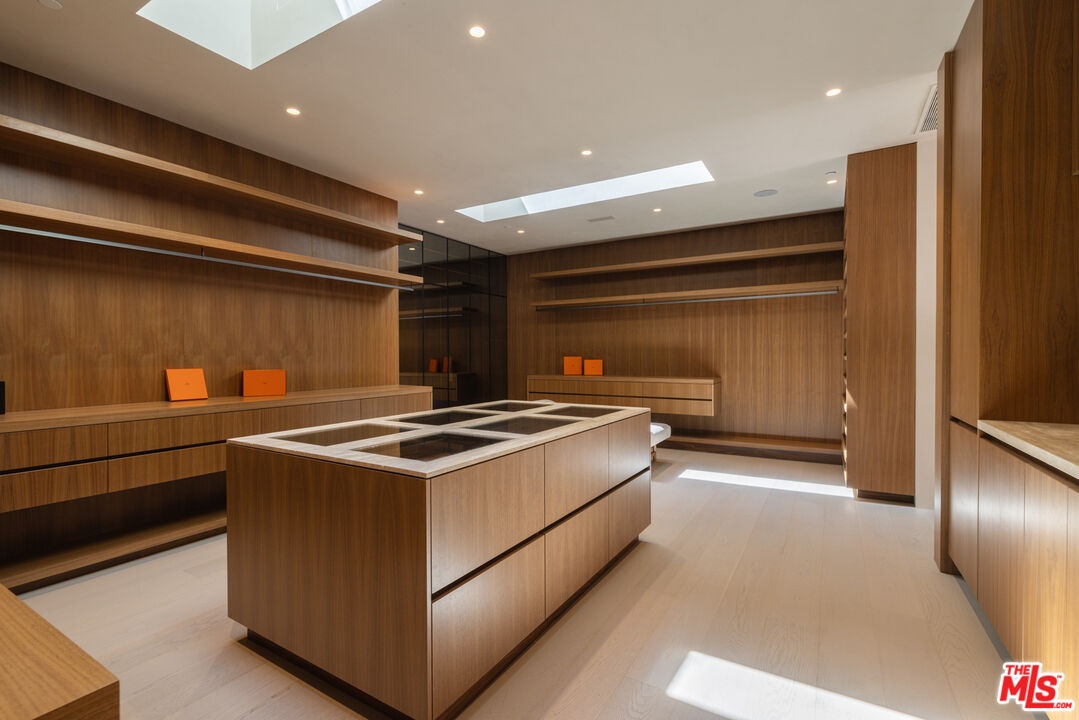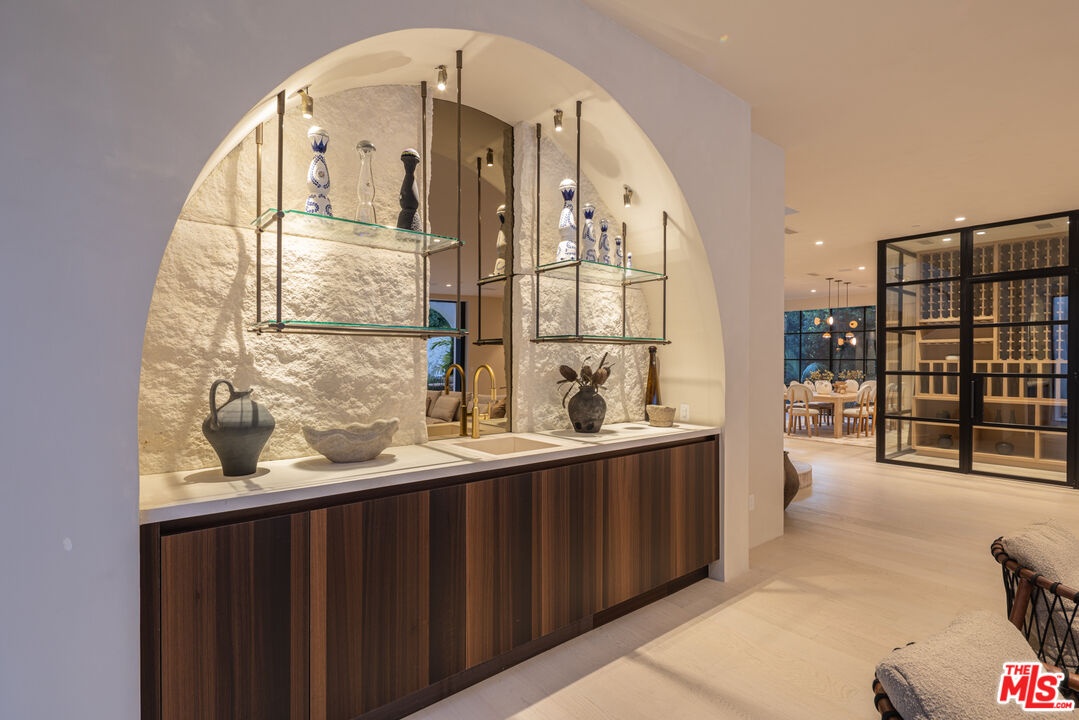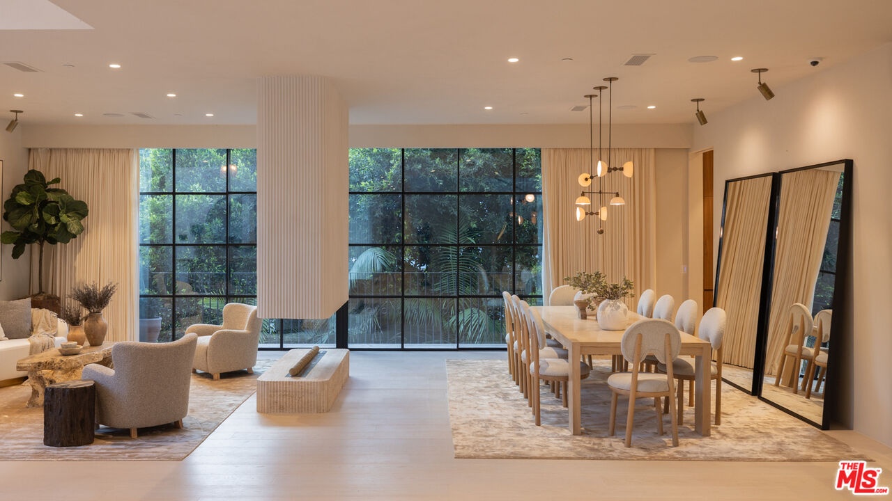 Mykonos meets Bel Air.... resort-living steps from Bel Air Hotel. Brand New Construction ready for entertaining on a grand scale. A refined retreat in the prestigious East Gate of Lower Bel Air. Designed in collaboration with Eran Gispan of Gispan Design, the residence blends Mediterranean serenity with modern architectural refinement. Double-height glass and steel entry doors welcome an abundance of natural light, while expansive automated sliding walls dissolve the boundary between indoors and out, creating a seamless, resort-like lifestyle reminiscent of a private Aegean escape. Organic textures and sun-washed tones define the interiors, featuring custom walnut millwork, handcrafted plaster walls, select-grade hardwood floors, and curated travertine stonework throughout. The chef's kitchen is both sculptural and functional, appointed with integrated Miele and Wolf appliances and designed for effortless entertaining. Lighting by Apparatus and Allied Maker adds a refined, gallery-like ambiance across the home. Five serene bedroom suites, an executive office, and a state-of-the-art theater. Spa-inspired baths showcase bespoke fixtures by Gessi and Graff, bringing a tranquil, retreat-like atmosphere to the primary suite and guest spaces. Outdoors, limestone terraces and balconies overlook lush, layered landscaping anchored by 125-year-old olive trees, evoking the calm of a secluded hillside. A limestone-clad ADU with rooftop deck, resort-style grounds, and multiple entertaining areas create a private sanctuary designed for indoor-outdoor living. Complete with copper gutters, custom steel and aluminum doors and windows, and a three-car garage. A Mykonos-inspired escape in one of Los Angeles' most coveted enclaves. Shown only to prequalified buyers.