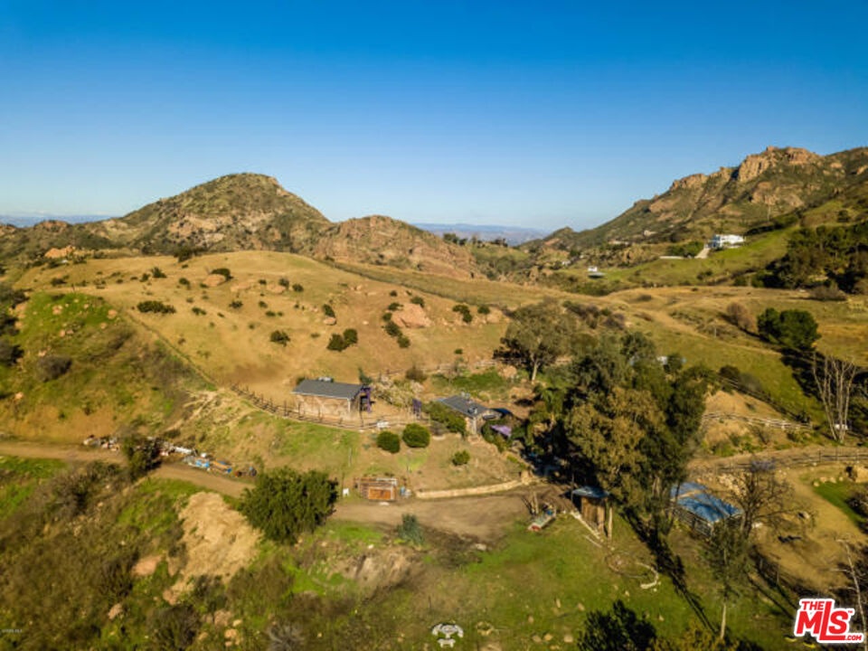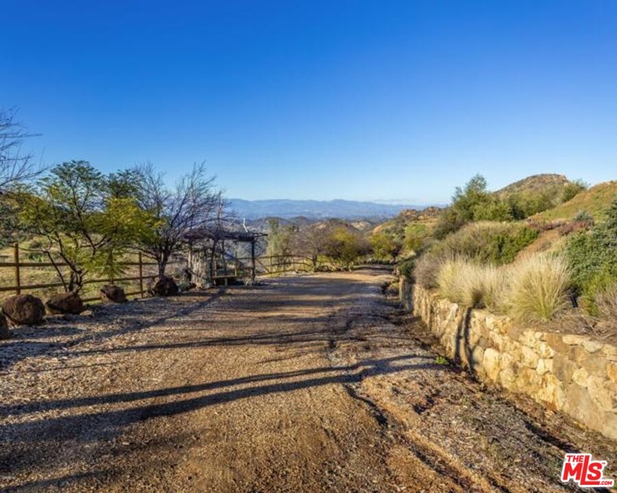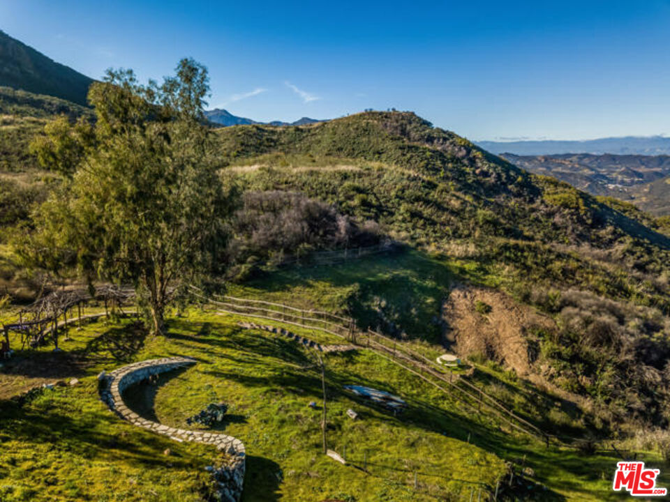 Located in the Malibu Wine Trail area of the Santa Monica Mountains, this gated property spans over 16 acres and offers a rare combination of privacy, scale, and panoramic views, along with convenient access to both Malibu and Westlake Village. At the center of the property is an approximately 2 acre engineered building pad, one of the largest in Malibu, with existing construction drawings and sweeping 360 degree views from the ocean to the Ojai Mountains and city lights below. A site of this scale and quality would be virtually impossible to recreate today, as current regulations no longer allow the movement of this volume of earth to achieve a pad of this size and prominence.The original main residence was lost in the Woolsey Fire. A small guest or bunk house remains, providing a place to stay or use while planning a future build. There are also expired plans for an approximately 11,000 square foot home, and the county has indicated the plans are still on file and may offer a more streamlined path if the same design is pursued. Buyer to verify. The grounds offer a park like setting with mature trees, lush landscaping, and wide roads lined by a dry stacked rock wall. A 50 tree olive orchard and a vineyard with vines brought from Europe add to the character of the property. Fenced areas are already in place for animals. There may be potential for a conditional use permit for a bed and breakfast, event venue, winery, or other uses. Buyer to investigate. A rare Malibu offering with privacy, usable land, and the opportunity to create something exceptional. This is a very special and magical location that must be experienced to appreciate!