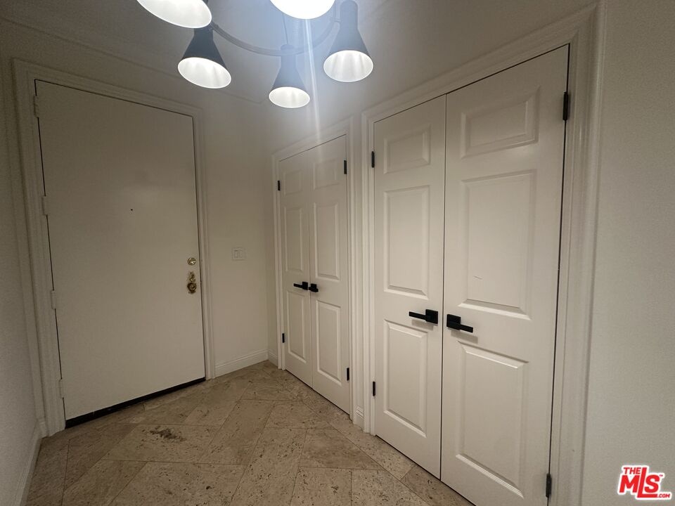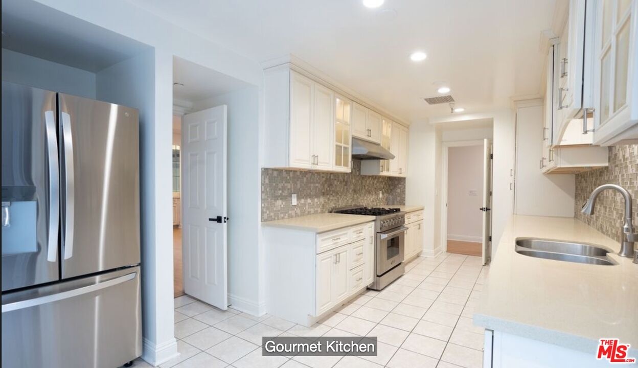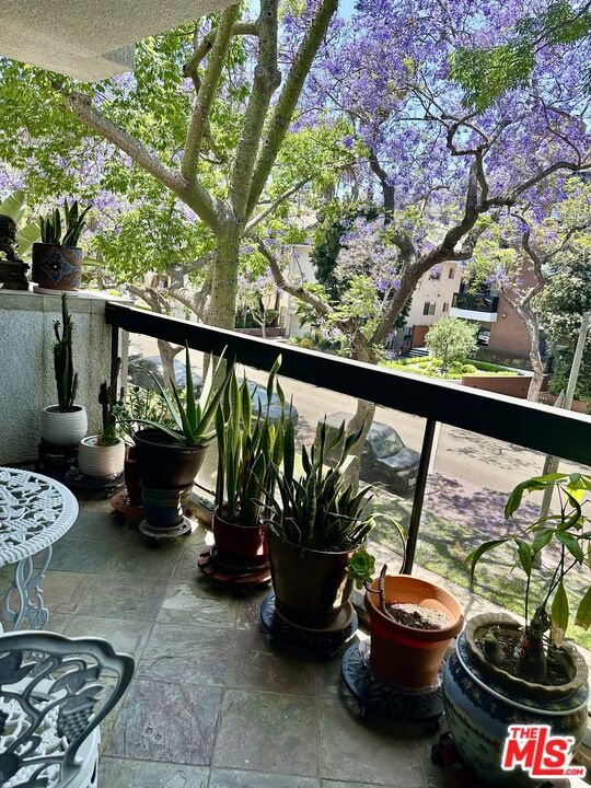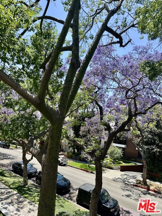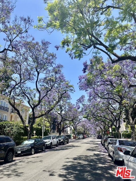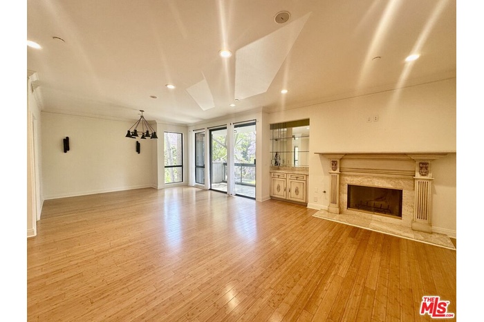 Prime Beverly Hills street. Discover your new home in this bright, elegant front-facing condo. Just steps from the vibrant and artistic Burton Way, enjoy easy access to the Golden Triangle or Beverly Grove, offering premier shopping, dining, and entertainment within walking distance.This nearly 2,100 sq ft residence features soaring 9-foot ceilings, crown molding, and natural bamboo flooring throughout. The renovated kitchen includes quartz countertops, soft-close cabinets, a top-of-the-line Thor gas range, a cozy breakfast nook, and a private balcony off the kitchenperfect for morning coffee.The open-concept great room, complete with a gas fireplace, opens to a second spacious balcony off the living room facing beautiful purple jacaranda trees. The private primary suite is tucked away in the rear, boasting a walk-in closet and a luxurious bathroom finished with travertine and marble, dual vanities, and a separate soaking tub and shower.Additional amenities include three assigned parking spaces, in-unit washer and dryer, ample storage, central air conditioning and heating, plus five-day on-site concierge and security.