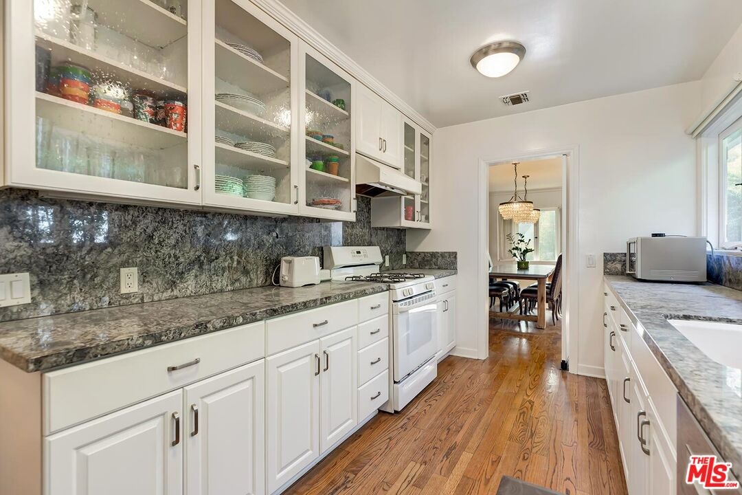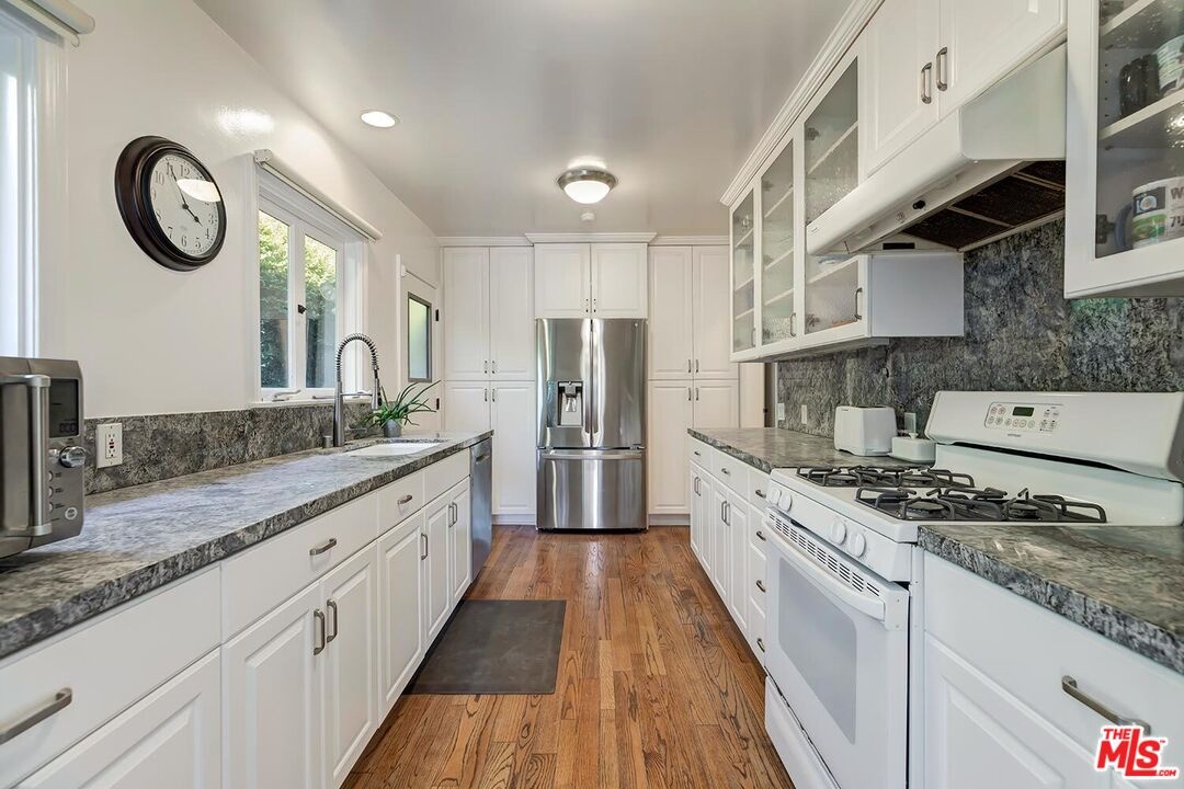 Charming Traditional with great flow in the extremely desirable Westwood Hills neighborhood! Open Living room has a fireplace & large windows looking out to treetops to provide tranquility & great natural light. Spacious formal Dining room, also with treetop views, flows from the living room & leads to an updated kitchen with granite countertops & great storage, including a large walk-in pantry. The great flow continues with a Family room off the living room with built-ins, ideal for a playroom & entertaining, as it has French Doors opening to the gorgeous, private grassy backyard, also making it ideal for California living. There are 3 bedrooms including a gracious primary en-suite with fireplace, walk-in closet, sitting area & French Doors opening to the patio & backyard. The Primary en-suite full bath is updated with double sinks & separate tub & shower. Terraced gardens, large grassy area & patio make the outdoors a fantastic entertaining haven. This cheerful home is filled with character, natural light, beautiful hardwood floors throughout, newer central AC, newer roof, solar, curb appeal & 2-car garage with storage. Desirable Warner Avenue School District.