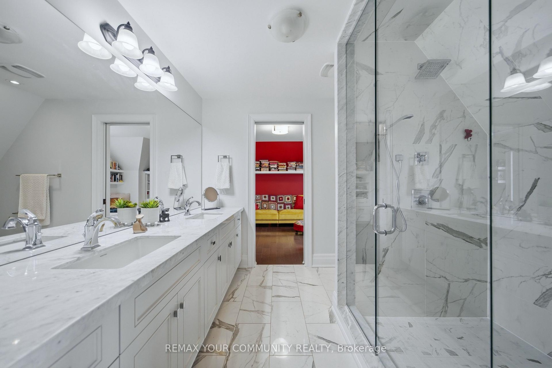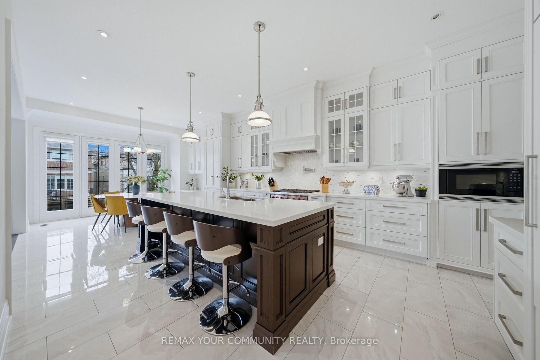Experience elevated living in this exquisitely reimagined detached residence in the prestigious Bathurst & Lawrence enclave of Toronto. This architectural showpiece is a true statement of modern luxury defined by impeccable craftsmanship curated finishes and an uncompromising attention to detail at every turn. Encompassing approximately 4,500 sq. ft. of refined living space the home is adorned with rich marble accents and elegant quarter cut oak flooring creating a warm yet sophisticated ambiance throughout. The chef inspired kitchen is a dramatic focal point anchored by a breathtaking 15 foot marble island and complemented by a full suite of top tier designer appliances perfectly suited for both grand entertaining and everyday indulgence. Expansive principal rooms flow seamlessly offering an ideal blend of comfort and elevated design. The completely renovated lower level is a destination in itself thoughtfully designed for upscale entertaining and extended living. Featuring radiant heated floors a walk out to the backyard a private nanny's suite and rough ins for a second kitchen it presents outstanding potential for a self contained apartment or in law suite without compromising luxury. Perfectly positioned just moments from major highways and public transit this residence offers effortless connectivity while maintaining a sense of exclusivity. Surrounded by top tier amenities and within close proximity to elite institutions such as Upper Canada College The Bishop Strachan School and Havergal College this location is as prestigious as it is convenient. Enjoy world class shopping fine dining and boutique experiences just minutes away at Yorkdale Shopping Centre completing this exceptional offering.