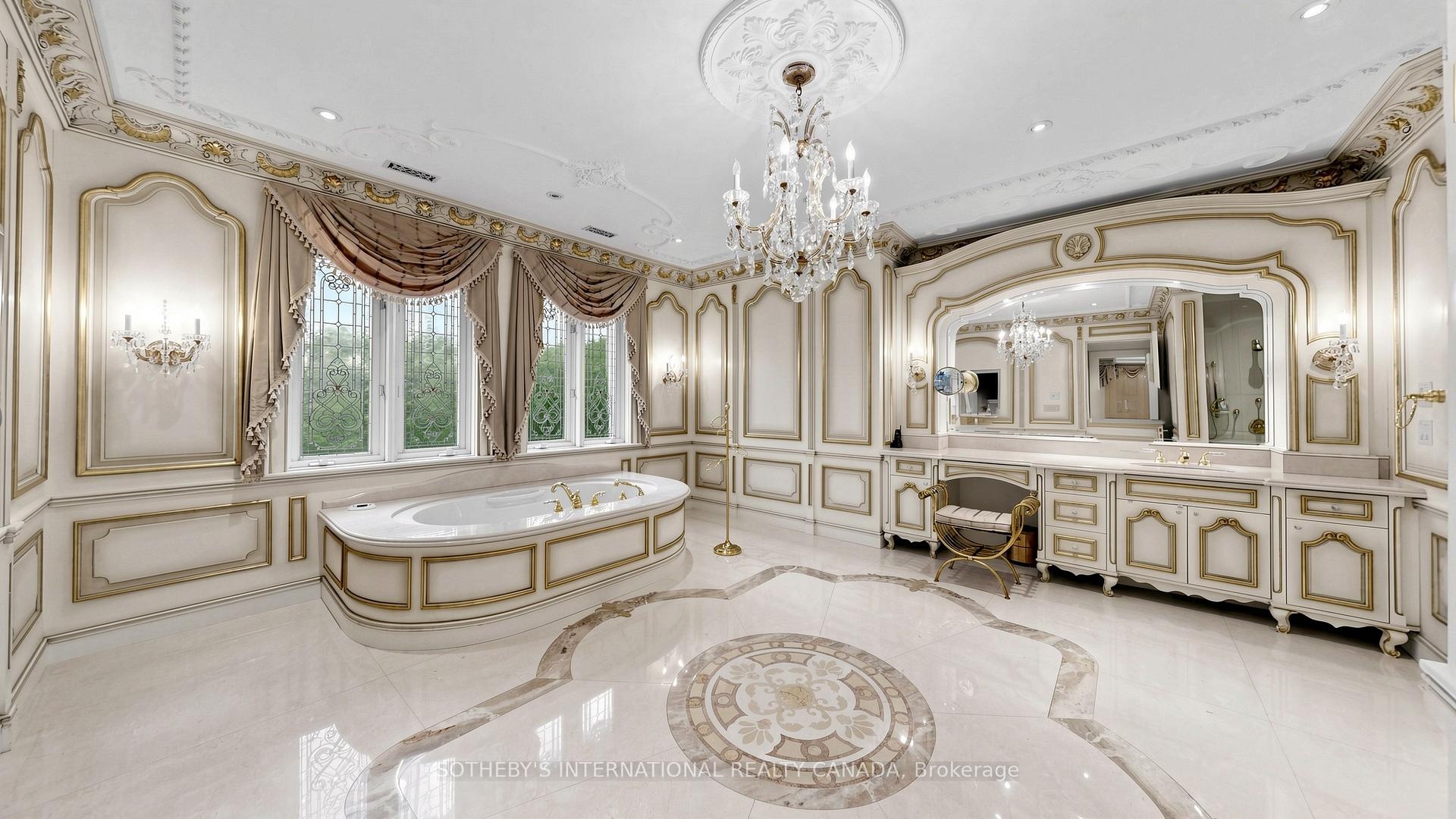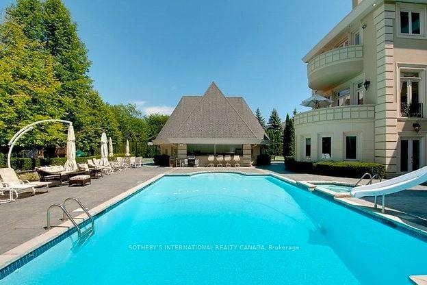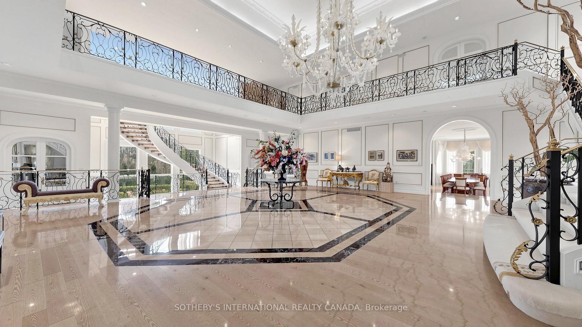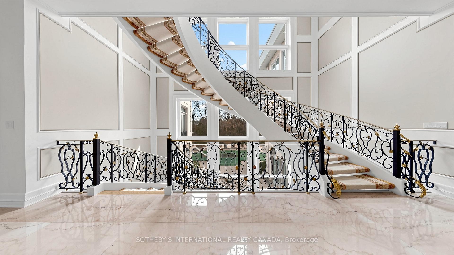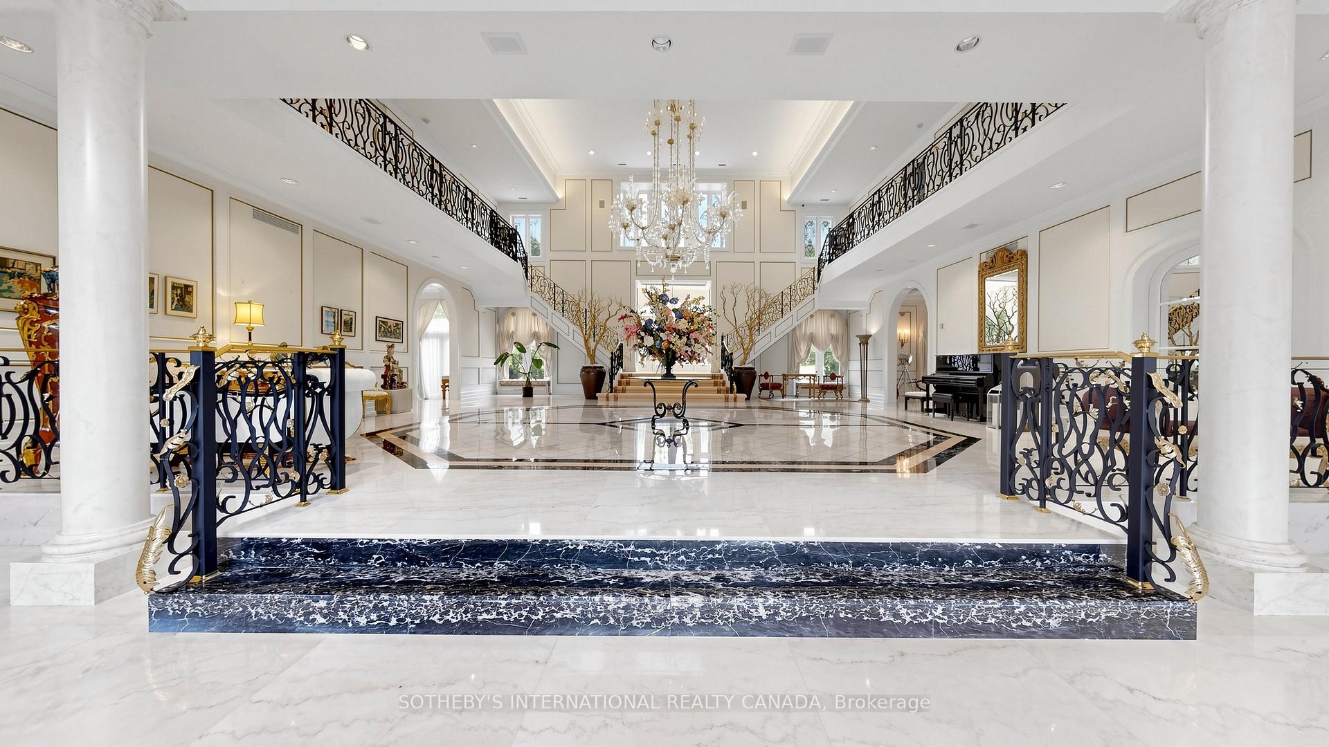 52 Post Rd stands as one of the most distinguished European Neoclassical architectural masterpieces in Bridle Path, Canada's most prestigious residential enclave. Spanning over 25,000 SF, this gated estate is widely regarded as a "Modern Grand Mansion'' of remarkable scale and presence. It seamlessly blends classical symmetry with refined contemporary elegance. Grand, high-arched doorways, intricately patterned marble floors and millwork, sweeping staircases with ornate wrought-iron railings, and monumental architectural proportions establish enduring sophistication and a regal arrival experience. Evoking a Versailles-inspired grandeur, the interiors showcase 14' and 23' soaring ceilings, dramatic stair halls and windows, and dazzling chandeliers that cast a warm, luminous glow throughout. Appx 15,000 SF above grade, incl an unparalleled 300-guest ballroom. Soaring 14' ceiling, 5 +2 generously appointed bedrooms, 13 bathrooms, 3 kitchens. Appx 7,500 SF lower level is thoughtfully designed for comprehensive leisure and entertaining amenities. Lower level features the wellness spa, sauna and hot tub, fitness centre, wine cellar and an extensive billiard room hosting multiple games. A tunnel-connected coach house offers appx 2,500 SF interior, and a 5-car-garage. Sculptural 3-dimensional walls gracefully wrap around a private courtyard, creating a striking focal point. Dramatic 2-storey floor-to-ceiling windows frame serene garden and pool views, cultivating intimate dialogue b/t interior and nature. Resort-inspired backyard featuring an outdoor pool with pool-house, a private tennis court, and a children's playground along expansive lawn and tree-lined tranquil pathway. Set among an extraordinary collection of luxury estates in the Bridle Path, this exceptional location is surrounded by elite public and private schools, renowned Granite Club and Sunnybrook Health Centre. A rare offering defined by prestige, privacy, and elevated lifestyle in the heart of the City.