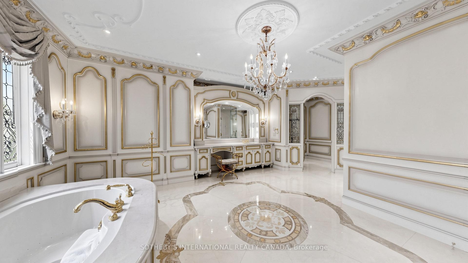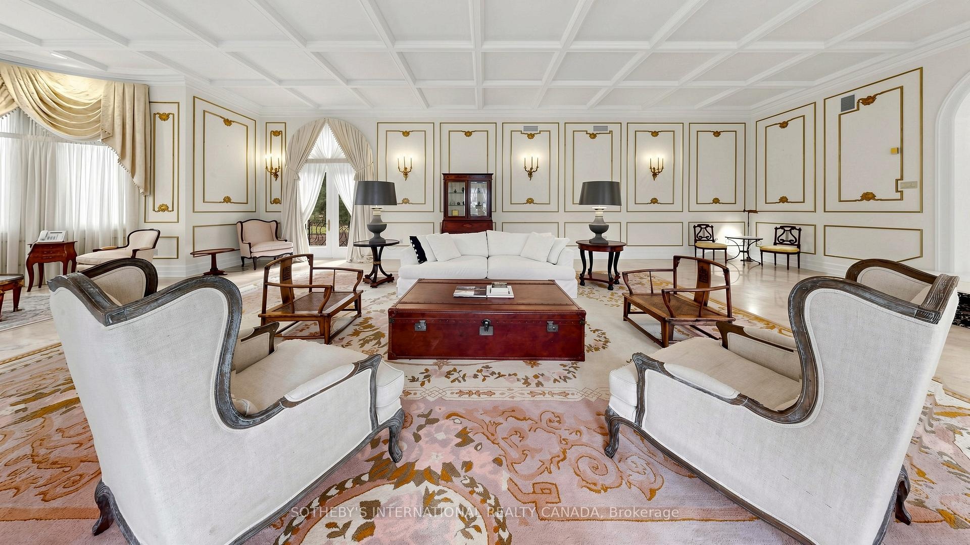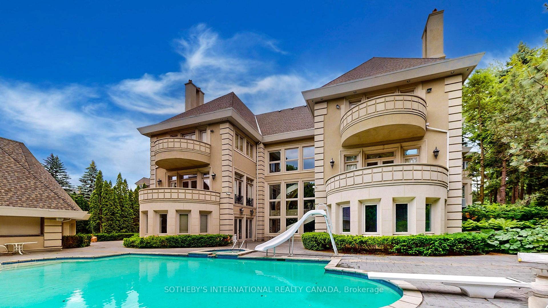 52 Post Rd stands as one of the most distinguished European Neoclassical architectural masterpieces in Bridle Path, Canada's most prestigious residential enclave. Spanning over 25,000 SF, this gated estate is widely regarded as a "Modern Grand Mansion'' of remarkable scale and presence. It seamlessly blends classical symmetry with refined contemporary elegance. Grand, high-arched doorways, intricately patterned marble floors and millwork, sweeping staircases with ornate wrought-iron railings, and monumental architectural proportions establish enduring sophistication and a regal arrival experience. Evoking a Versailles-inspired grandeur, the interiors showcase 14' and 23' soaring ceilings, dramatic stair halls and windows, and dazzling chandeliers that cast a warm, luminous glow throughout. Appx 15,000 SF above grade, incl an unparalleled 300-guest ballroom. Soaring 14' ceiling, 5 +2 generously appointed bedrooms, 13 bathrooms, 3 kitchens. Appx 7,500 SF lower level is thoughtfully designed for comprehensive leisure and entertaining amenities. Lower level features the wellness spa, sauna and hot tub, fitness centre, wine cellar and an extensive billiard room hosting multiple games. A tunnel-connected coach house offers appx 2,500 SF interior, and a 5-car-garage. Sculptural 3-dimensional walls gracefully wrap around a private courtyard, creating a striking focal point. Dramatic 2-storey floor-to-ceiling windows frame serene garden and pool views, cultivating intimate dialogue b/t interior and nature. Resort-inspired backyard featuring an outdoor pool with pool-house, a private tennis court, and a children's playground along expansive lawn and tree-lined tranquil pathway. Set among an extraordinary collection of luxury estates in the Bridle Path, this exceptional location is surrounded by elite public and private schools, renowned Granite Club and Sunnybrook Health Centre. A rare offering defined by prestige, privacy, and elevated lifestyle in the heart of the City.