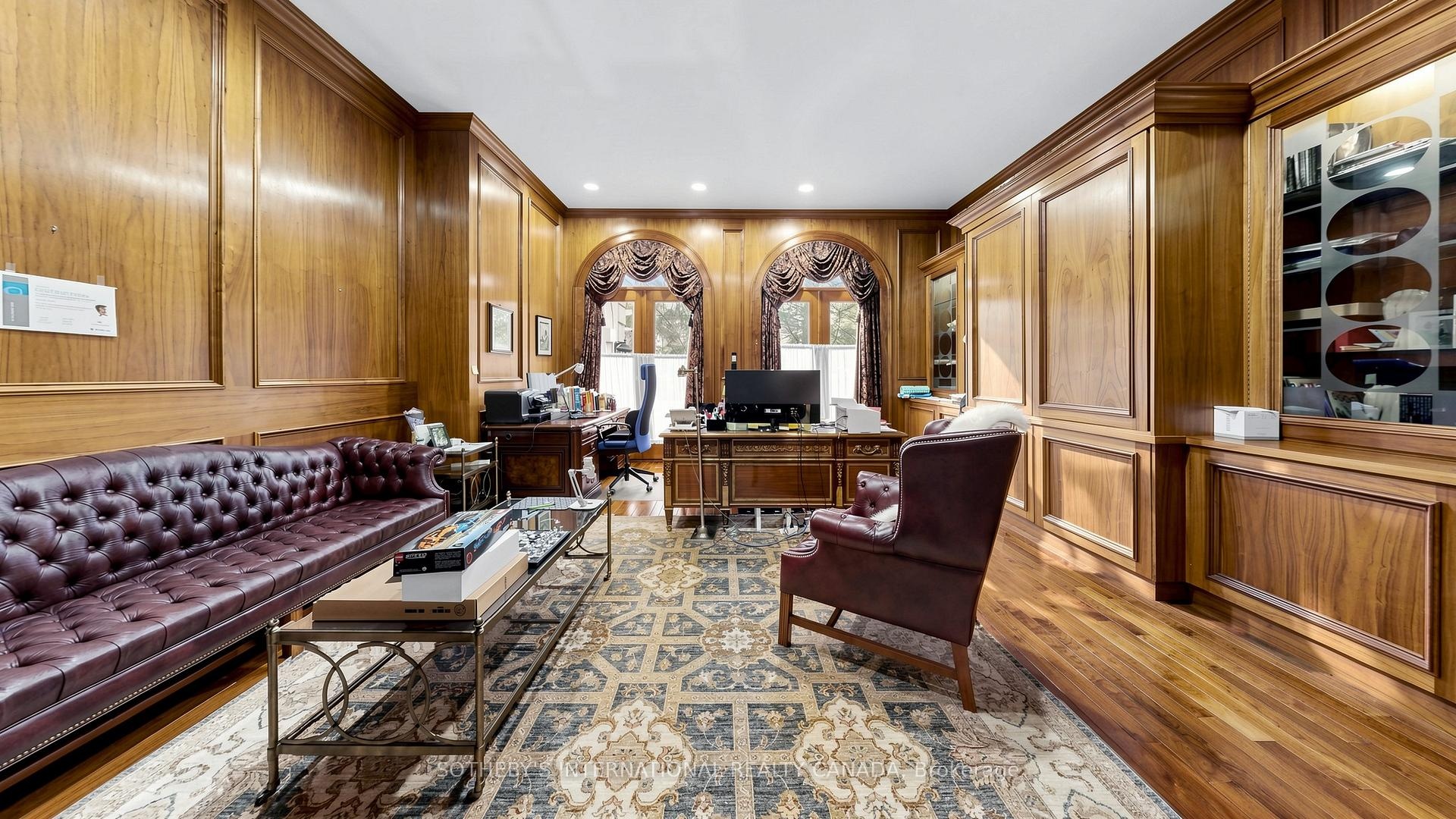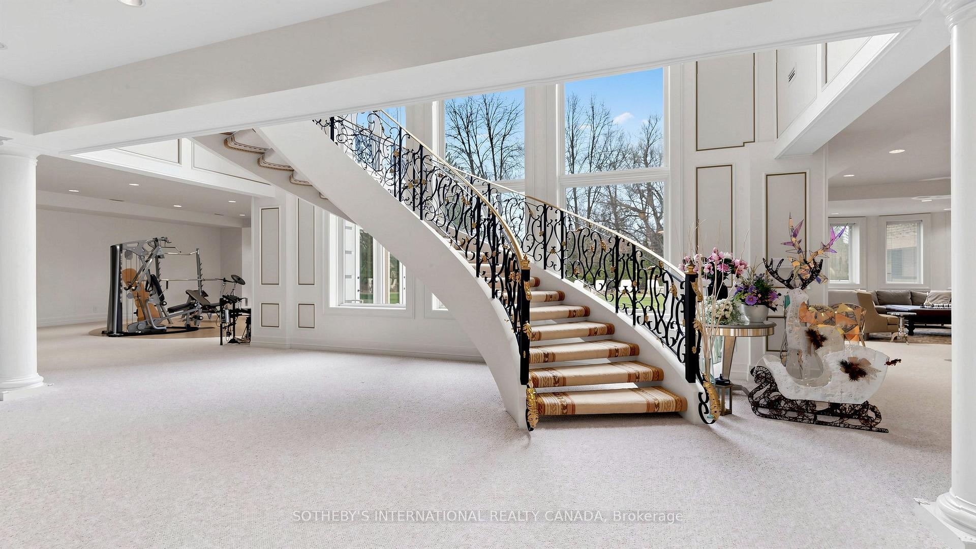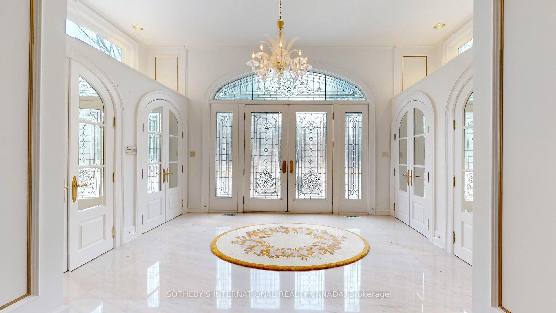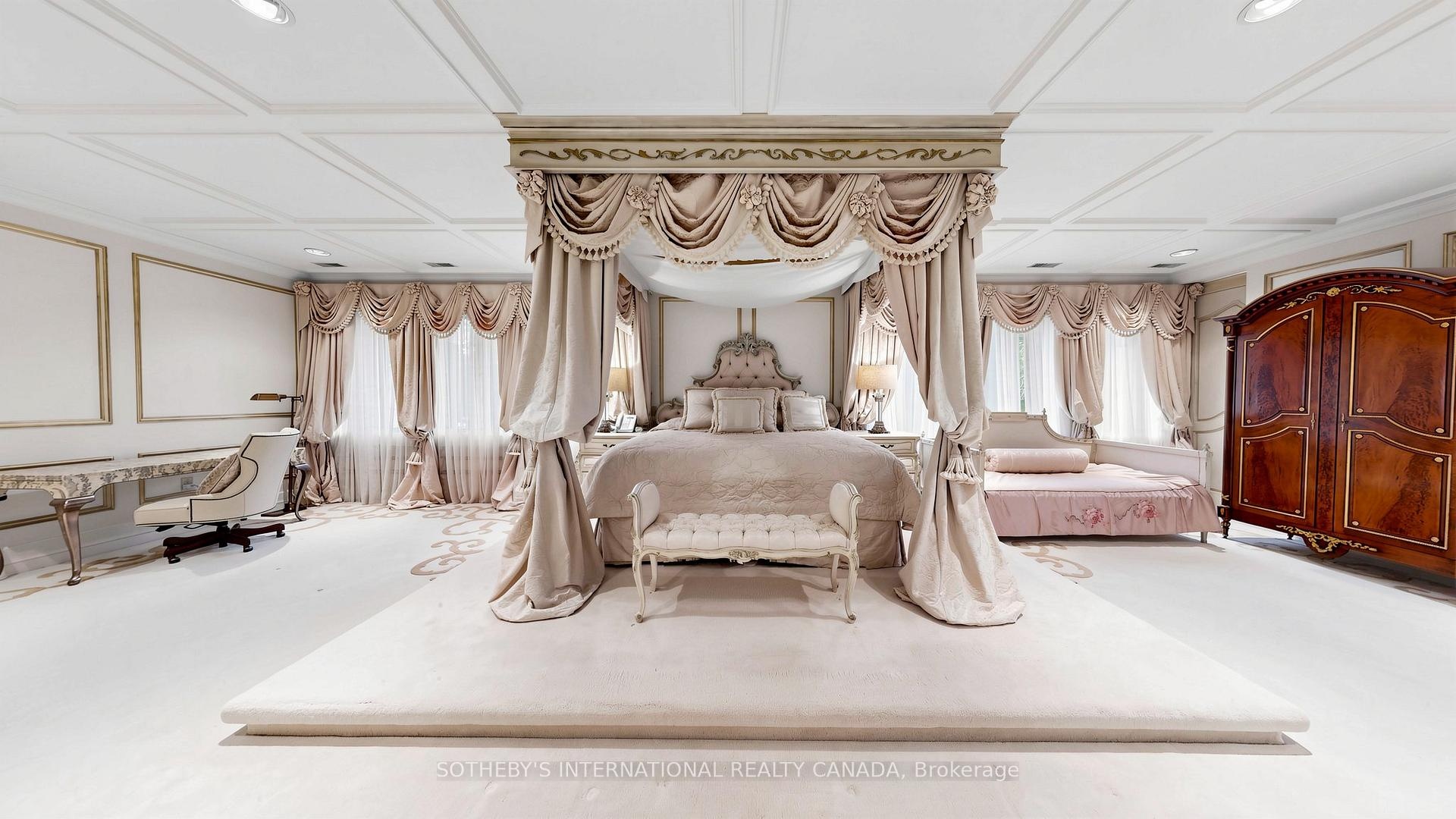 52 Post Rd stands as one of the most distinguished European Neoclassical architectural masterpieces in Bridle Path, Canada's most prestigious residential enclave. Spanning over 25,000 SF, this gated estate is widely regarded as a "Modern Grand Mansion'' of remarkable scale and presence. It seamlessly blends classical symmetry with refined contemporary elegance. Grand, high-arched doorways, intricately patterned marble floors and millwork, sweeping staircases with ornate wrought-iron railings, and monumental architectural proportions establish enduring sophistication and a regal arrival experience. Evoking a Versailles-inspired grandeur, the interiors showcase 14' and 23' soaring ceilings, dramatic stair halls and windows, and dazzling chandeliers that cast a warm, luminous glow throughout. Appx 15,000 SF above grade, incl an unparalleled 300-guest ballroom. Soaring 14' ceiling, 5 +2 generously appointed bedrooms, 13 bathrooms, 3 kitchens. Appx 7,500 SF lower level is thoughtfully designed for comprehensive leisure and entertaining amenities. Lower level features the wellness spa, sauna and hot tub, fitness centre, wine cellar and an extensive billiard room hosting multiple games. A tunnel-connected coach house offers appx 2,500 SF interior, and a 5-car-garage. Sculptural 3-dimensional walls gracefully wrap around a private courtyard, creating a striking focal point. Dramatic 2-storey floor-to-ceiling windows frame serene garden and pool views, cultivating intimate dialogue b/t interior and nature. Resort-inspired backyard featuring an outdoor pool with pool-house, a private tennis court, and a children's playground along expansive lawn and tree-lined tranquil pathway. Set among an extraordinary collection of luxury estates in the Bridle Path, this exceptional location is surrounded by elite public and private schools, renowned Granite Club and Sunnybrook Health Centre. A rare offering defined by prestige, privacy, and elevated lifestyle in the heart of the City.
