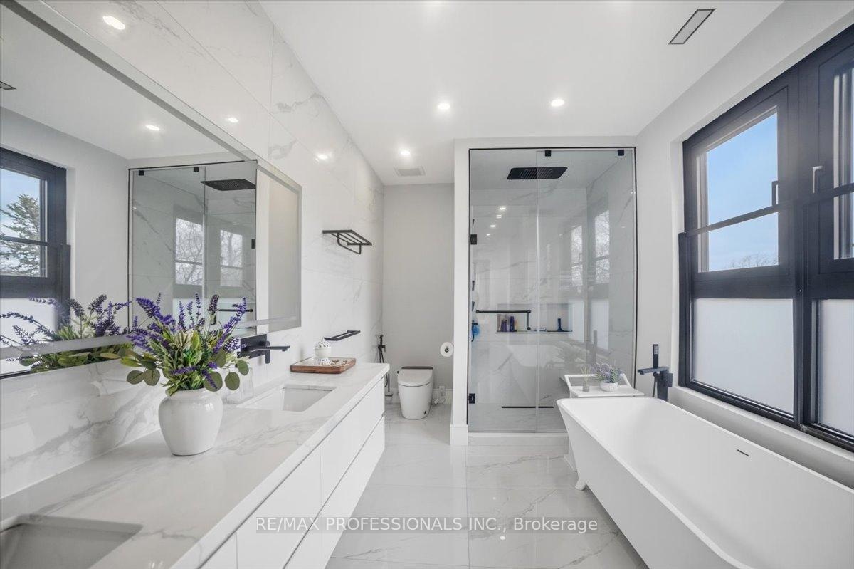 Sophistication and elegance shine throughout this new custom built spacious and modern luxury home in Clarkson. 3660 SF above grade plus 2240 SF below grade. Many features with quality finishes : triple pane windows, smart glass windows, motorized curtains, smart toilets, glass railings, plot lights throughout, quartz counters, Thermador appliances, 6 burner gas stove, pantry, passcode door entry, 2nd floor furnace room, ensuites in all bedrooms, 2nd floor laundry. Prime bedroom has large private terrace overlooking park , large windows. 2 laundry rooms. 2 door access to garage from inside. Basement has a kitchen, family room, laundry Room, 3 Bedrooms, large windows, separate entrance to basement, walk up to yard from a private patio, extra zen garden patio , wine cooler. Covered Patio 16X26 feet with pot lights. Stone Driveway. Mature trees in yard. 10 foot ceilings on main level, 9 foot ceilings on 2nd floor and basement. 2 A/C units. Backs onto a park.