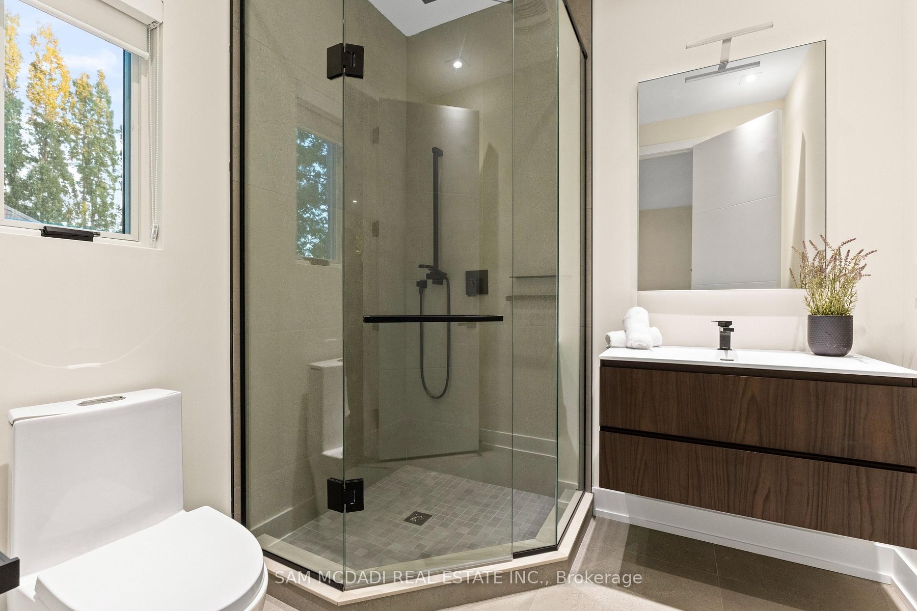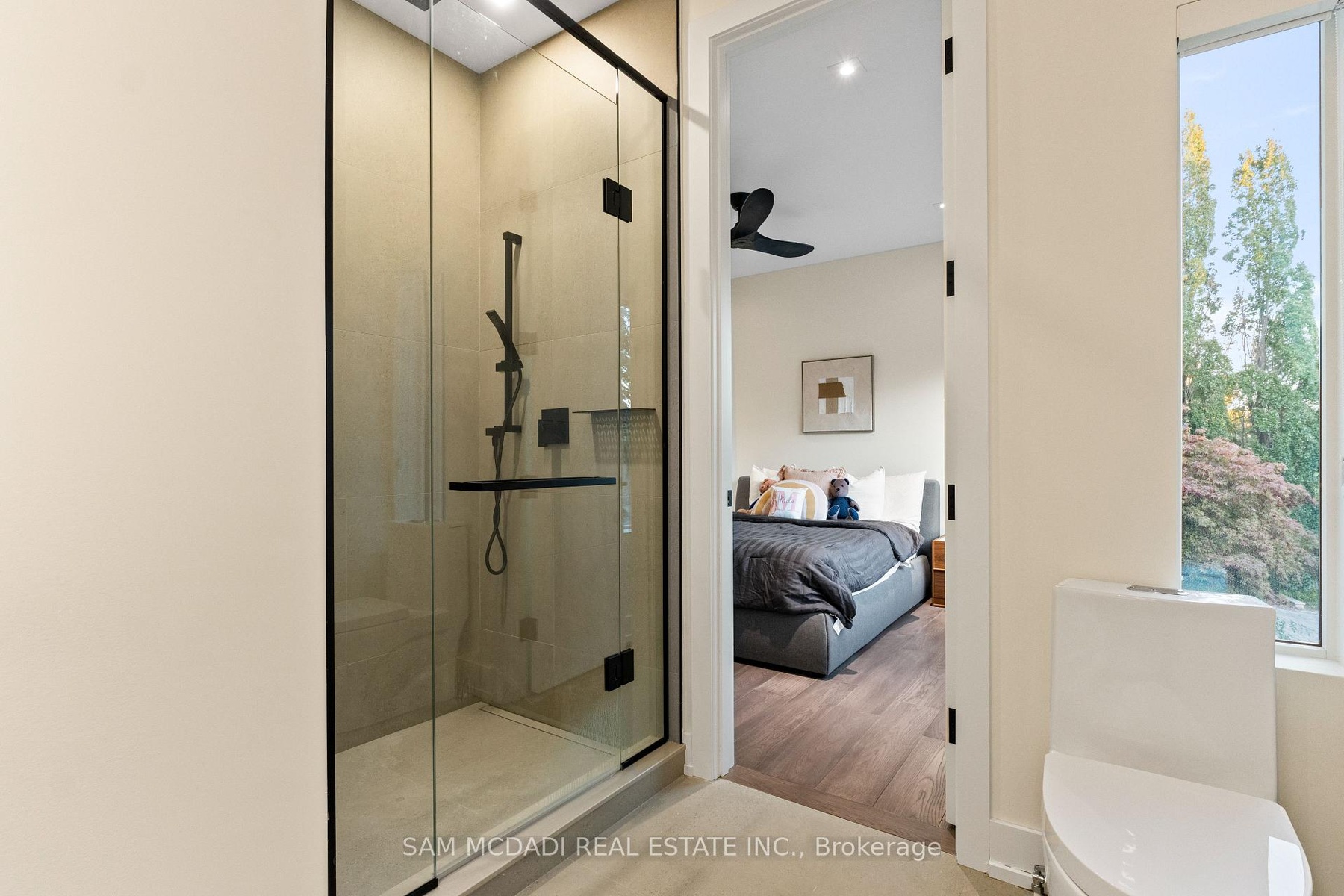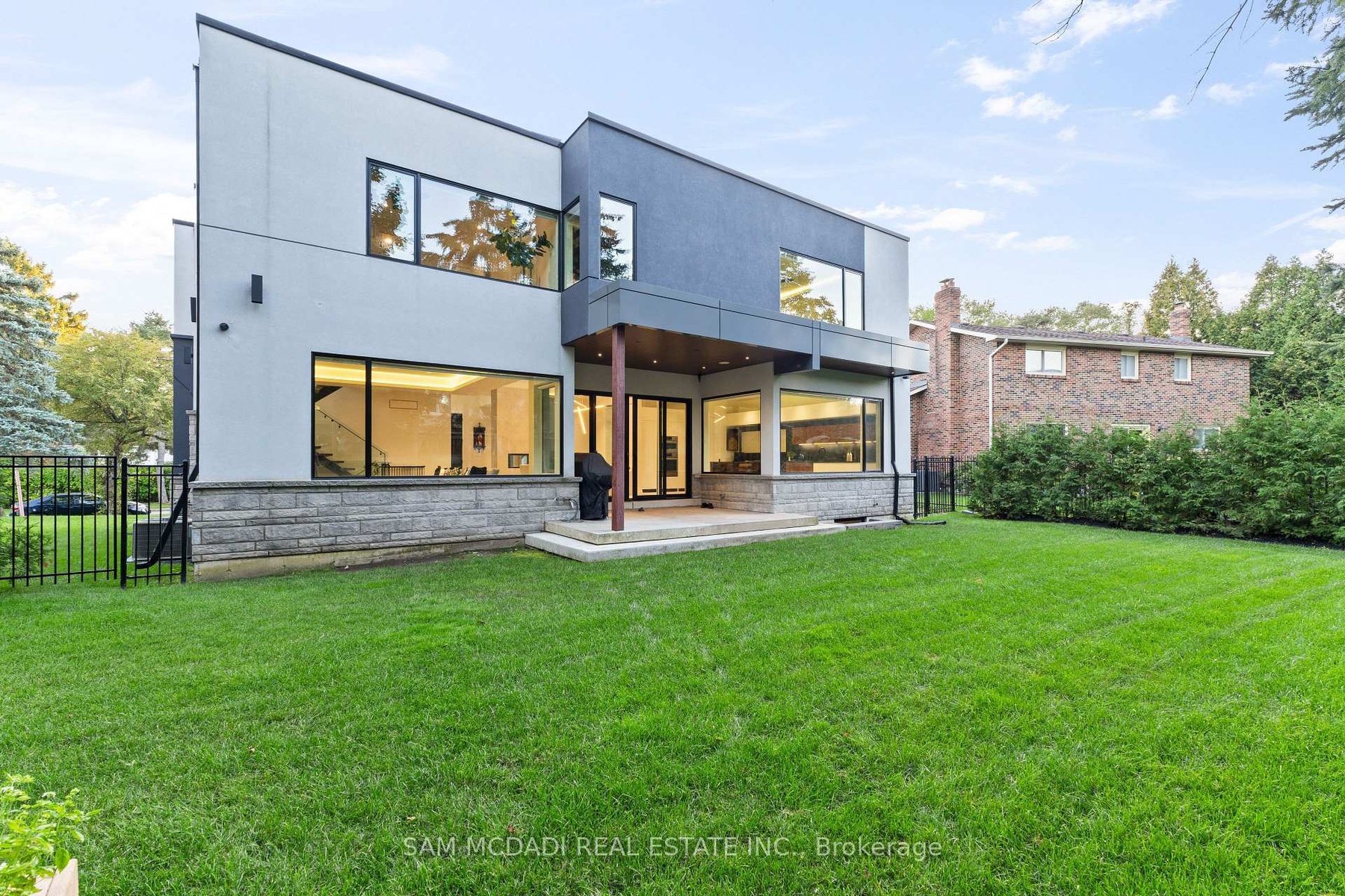 Welcome to 2075 Shawanaga Trail, tucked within the prestigious Sheridan enclave. This elegant residence offers over 6,000 SF of finished living space, thoughtfully designed with 5 bedrooms and 6 bathrooms. A dramatic double-height foyer sets the tone, leading into light-filled interiors where oversized windows showcase the homes architectural elegance. Tray ceilings with recessed and cove lighting create a soft ambient glow, while a two-way gas fireplace anchors the open living and dining areas. A glass-enclosed wine display adds a sculptural statement, perfect for the discerning collector. The chef's kitchen features quartz countertops, integrated appliances, custom cabinetry and walk-in pantry. It flows seamlessly into the main gathering spaces with views of the private backyard. A covered patio invites year-round entertaining, while a main floor office offers quiet workspace. Above, the primary suite is a private retreat with dual walk-in closets and a spa-like ensuite with freestanding tub and glass shower. Three additional bedrooms feature walk-in closets and private or semi-ensuite baths. A second-floor laundry room adds convenience. The finished lower level boasts 9-foot ceilings, a full wet bar, expansive recreation room, guest suite with ensuite, and a flexible room ideal for media or fitness. Outdoors, the professionally landscaped backyard is framed by mature trees, offering privacy, tranquility, and space to customize. Additional highlights include engineered hardwood, built-in Sonos audio, newer roof and windows (2022), and ample parking. Located near Mississauga and Credit Valley Golf Clubs, University of Toronto Mississauga, and highly acclaimed schools. Just minutes to the QEW, 403, Port Credit Village, and scenic waterfront trails.
