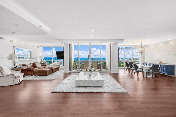 Enjoy sweeping Miami Beach views spanning the blue Atlantic, lush golf course greens, and dramatic nighttime city lights.