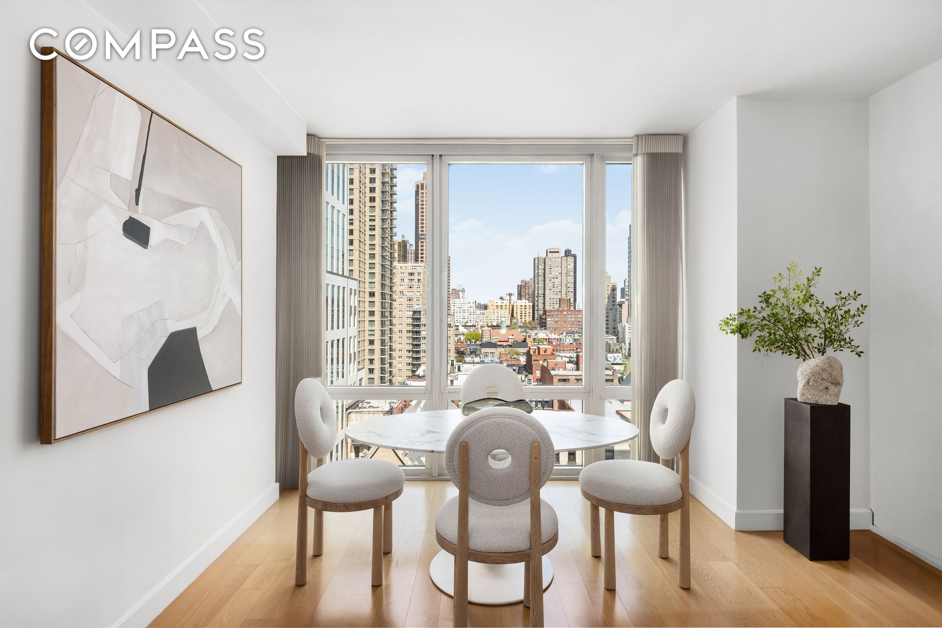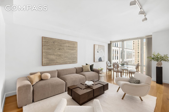 Light-filled and generously proportioned, this three-bedroom, three-bath residence at the The Arcadia offers a well-balanced layout and open northern exposures. A gracious entry foyer leads into a bright living and dining area, thoughtfully enhanced with a custom built-in media console.