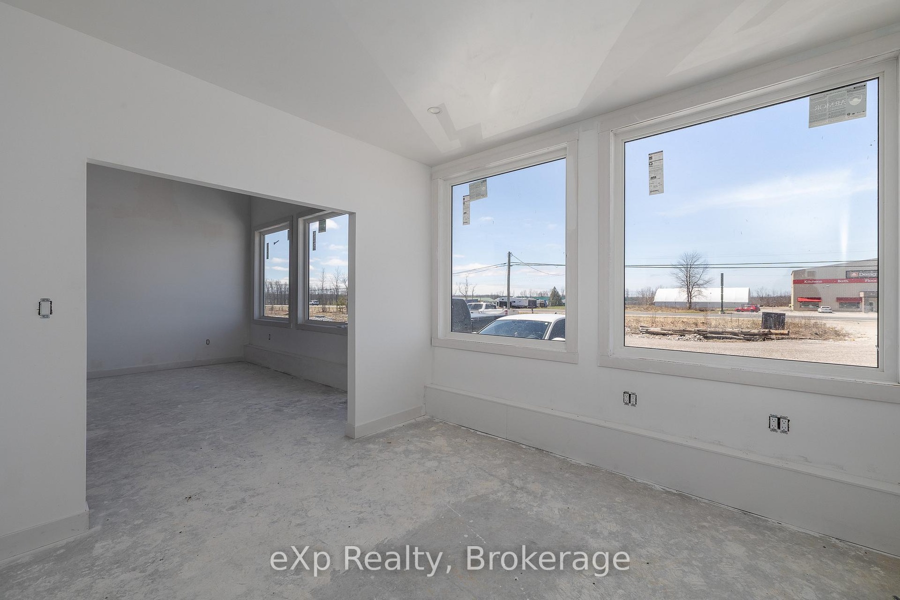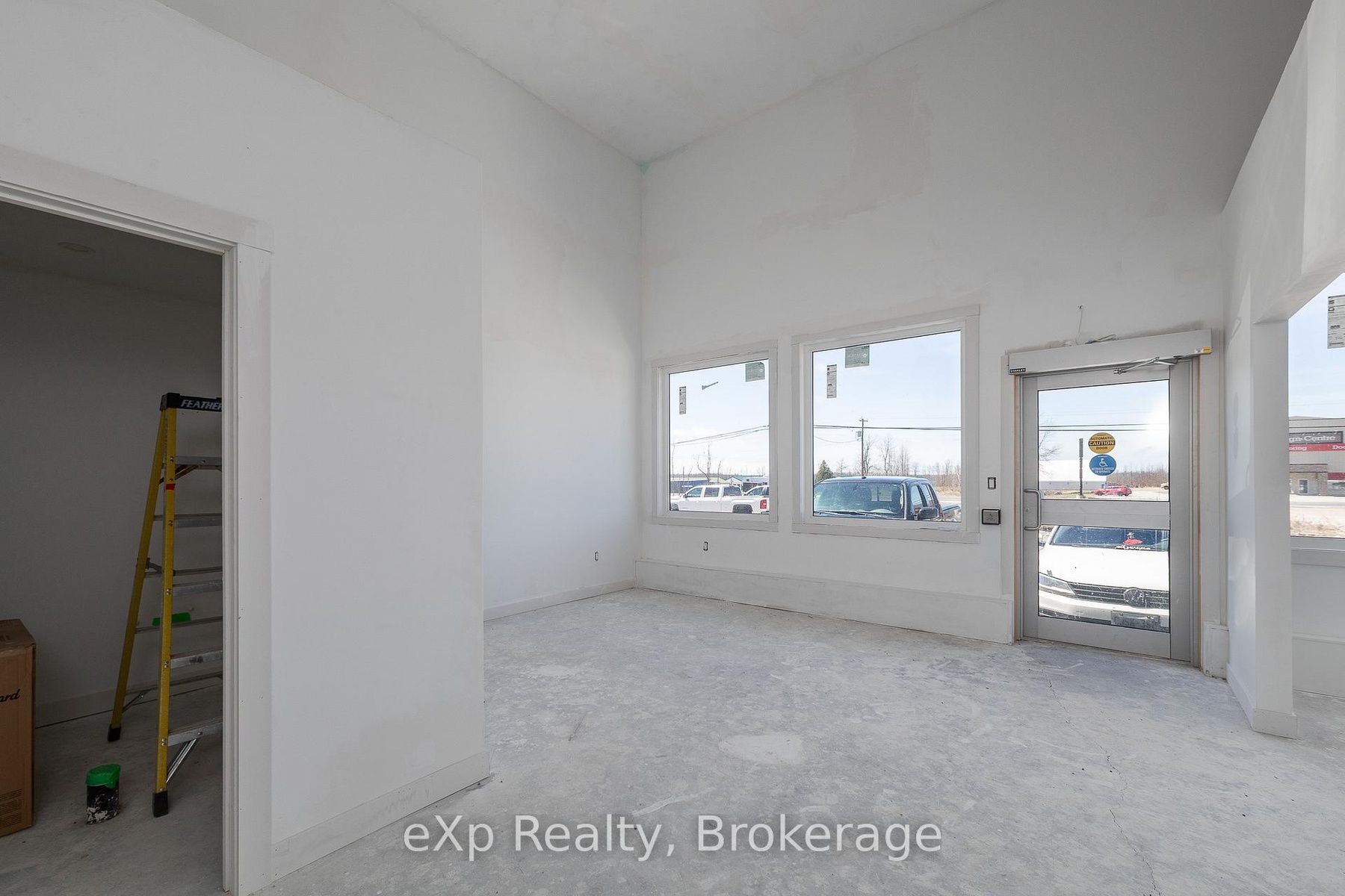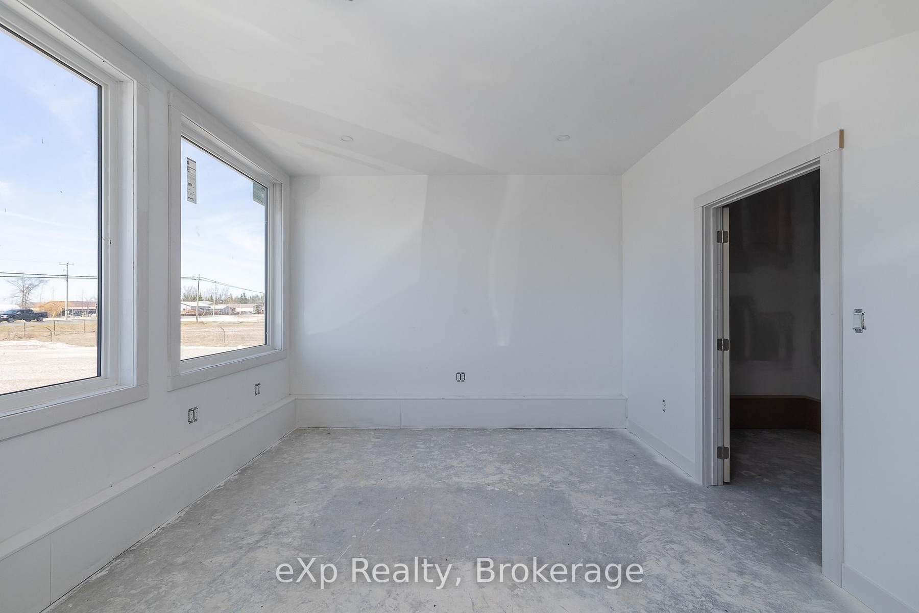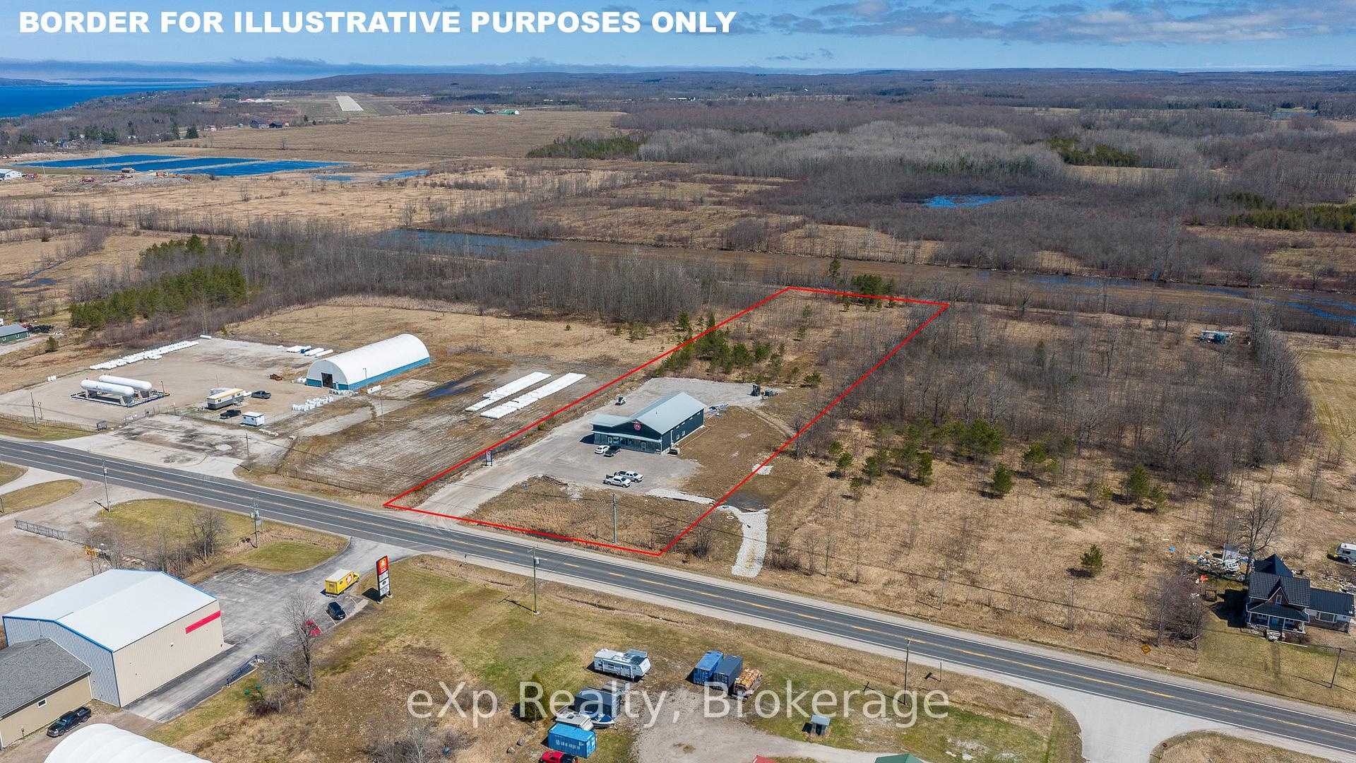 Versatile 3,600 sq ft commercial building on over 5 acres in a high-visibility, high-traffic location along Highway 6 just south of Wiarton, offering excellent exposure and flexibility for a range of uses. The entire property is zoned C4. The building features three separate units, including two bright front units (556.54 sq ft each) ideal for retail or office space, contractors and both equipped with large windows, 17 ft ceilings, 100 amp service, in-floor radiant heat, ductless cooling, and 2-piece bath rough-ins. The expansive rear unit spans approximately 2,400 sq ft and is well-suited for industrial or service-based operations, complete with two private 10 x 15 ft offices, a 2-piece bath, a mezzanine for additional storage or workspace, and two 12 x 12 ft overhead doors servicing a 26 ft 4 in bay and a 38 ft 6 in bay. This unit also includes 200 amp electrical service, an electric boiler for in-floor radiant heating, and ductless cooling, with natural gas piped to the side of the building for future hookup if desired. Drilled well and septic. A rare opportunity to own a modern, multi-use commercial property with strong income and operational potential in a growing area.