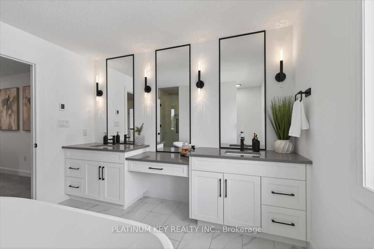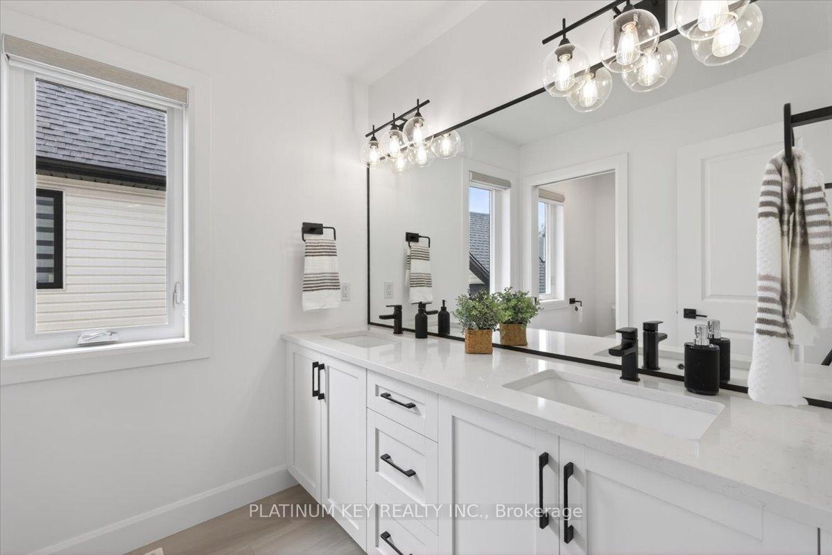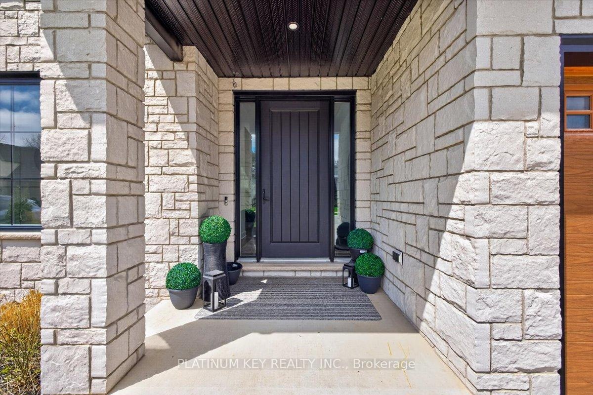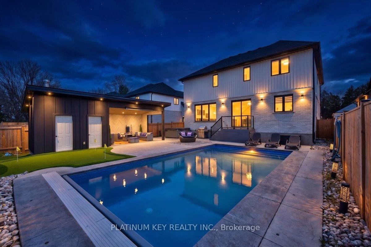 Located in Talbotville Meadows, this stunning 2 storey home offers 4+1 bedrooms, 4.5 bathrooms, a double car garage, and a premium lot backing directly onto Talbotville Optimist Heritage Park. The property features an in-ground heated saltwater pool and a pool cabana, ideal for indoor and outdoor living. The main floor includes a bright front office, formal dining room, and a butler's pantry with wet bar, beverage fridge, and walk-in pantry connecting through to the kitchen. The kitchen features a large centre island, quartz countertops, tile backsplash, pot filler, and apron-front sink, along with a spacious eating area and walkout to the backyard. The open-concept living room features a fireplace and is designed for both everyday living and entertaining. A 2-piece powder room and a dedicated laundry room with storage and access to the garage complete the main level. Upstairs, the primary bedroom is set behind double doors and includes a 5-piece ensuite with double vanities, soaker tub, and walk-in shower, along with a large walk-in closet (10'9" x 10'). The second bedroom features its own private 3-piece ensuite, while two additional bedrooms share a 5-piece main bathroom. The fully finished lower level adds a fifth bedroom, 3-piece bathroom, and a large rec room offering flexible use. The backyard is designed for both relaxation and entertaining, with a heated saltwater pool, electronic safety cover, concrete patio, gas BBQ hookup, and a private putting green. The pool cabana is fully serviced with plumbing and electricity and includes a covered seating area with wet bar, change room with bathroom, and a dedicated pump room. Talbotville Meadows is a growing community offering a quieter setting just minutes from St. Thomas and a short drive to London, with convenient access to Highway 401. The neighbourhood is known for its newer homes, access to green space, and proximity to parks like Talbotville Optimist Heritage Park.