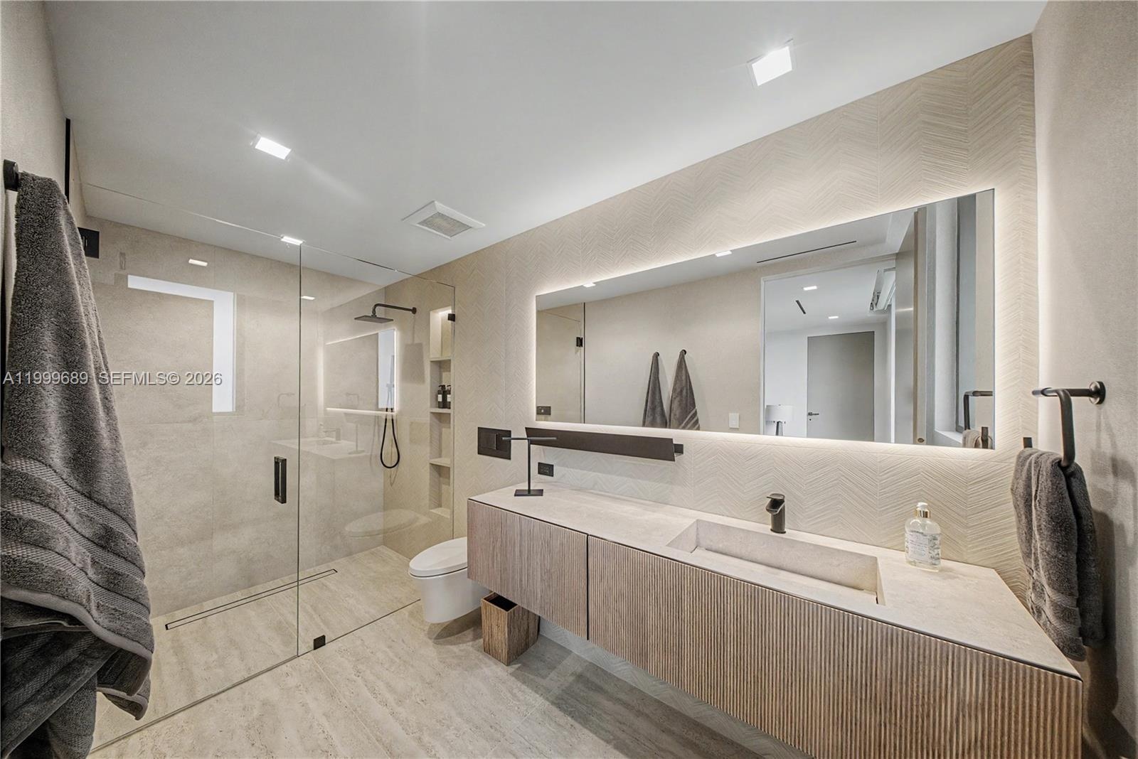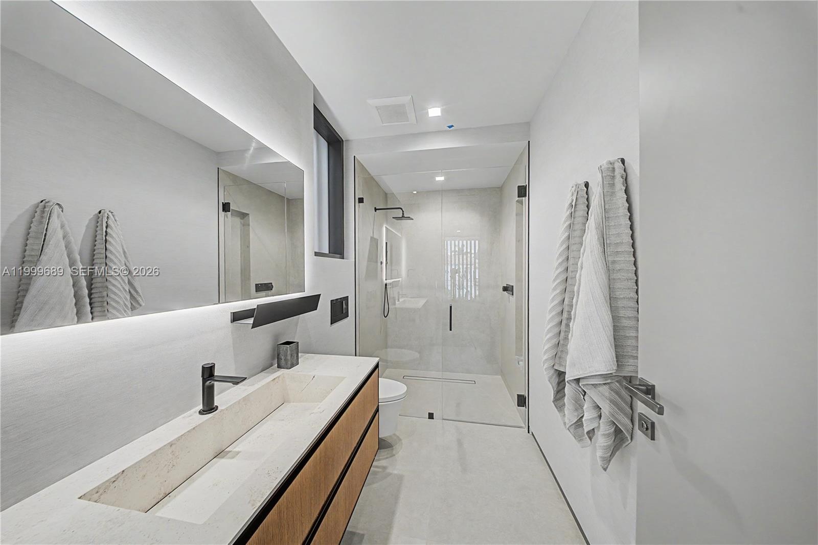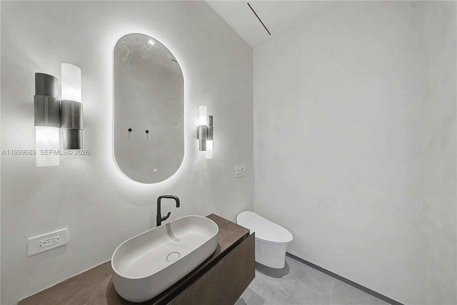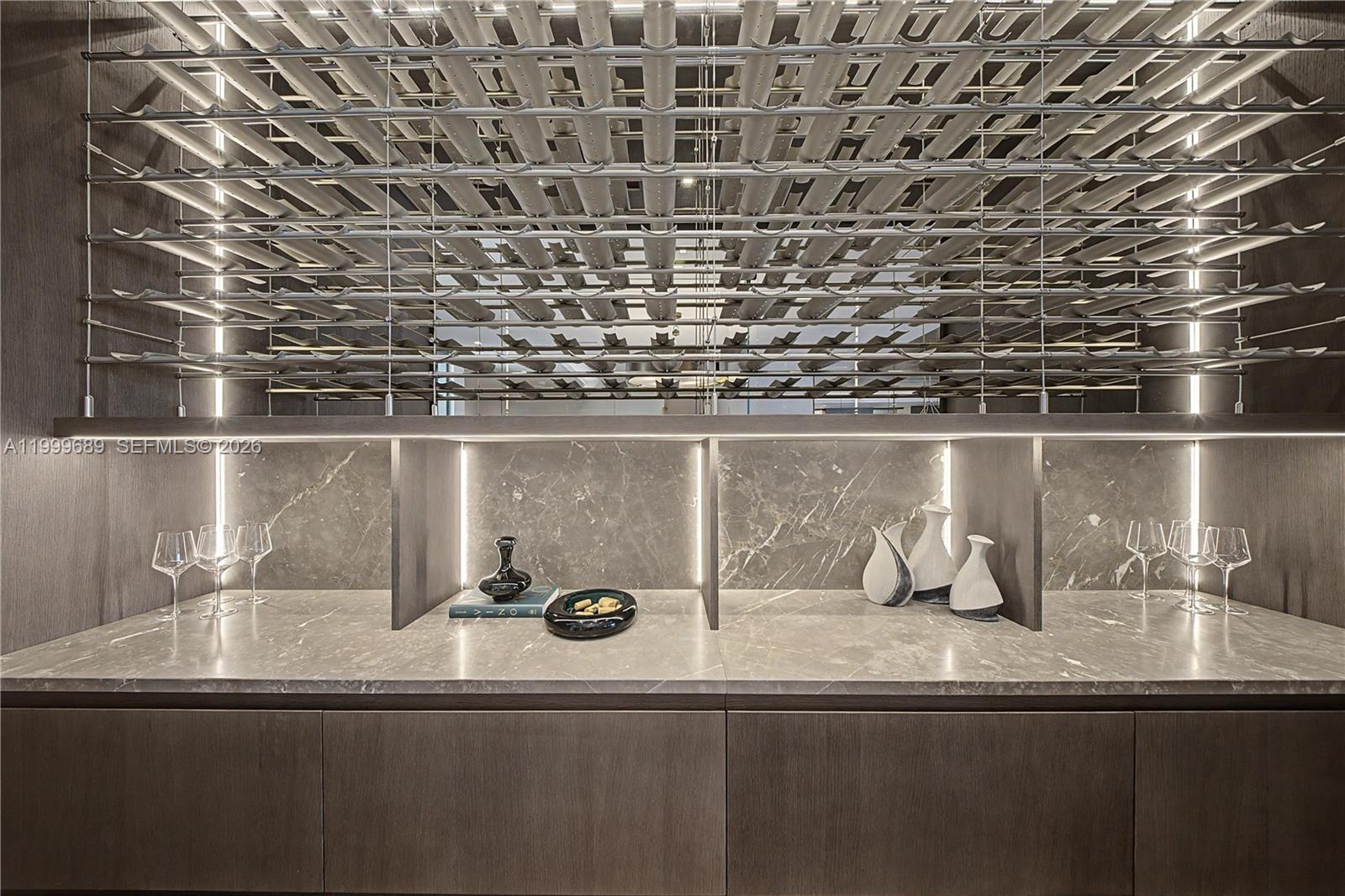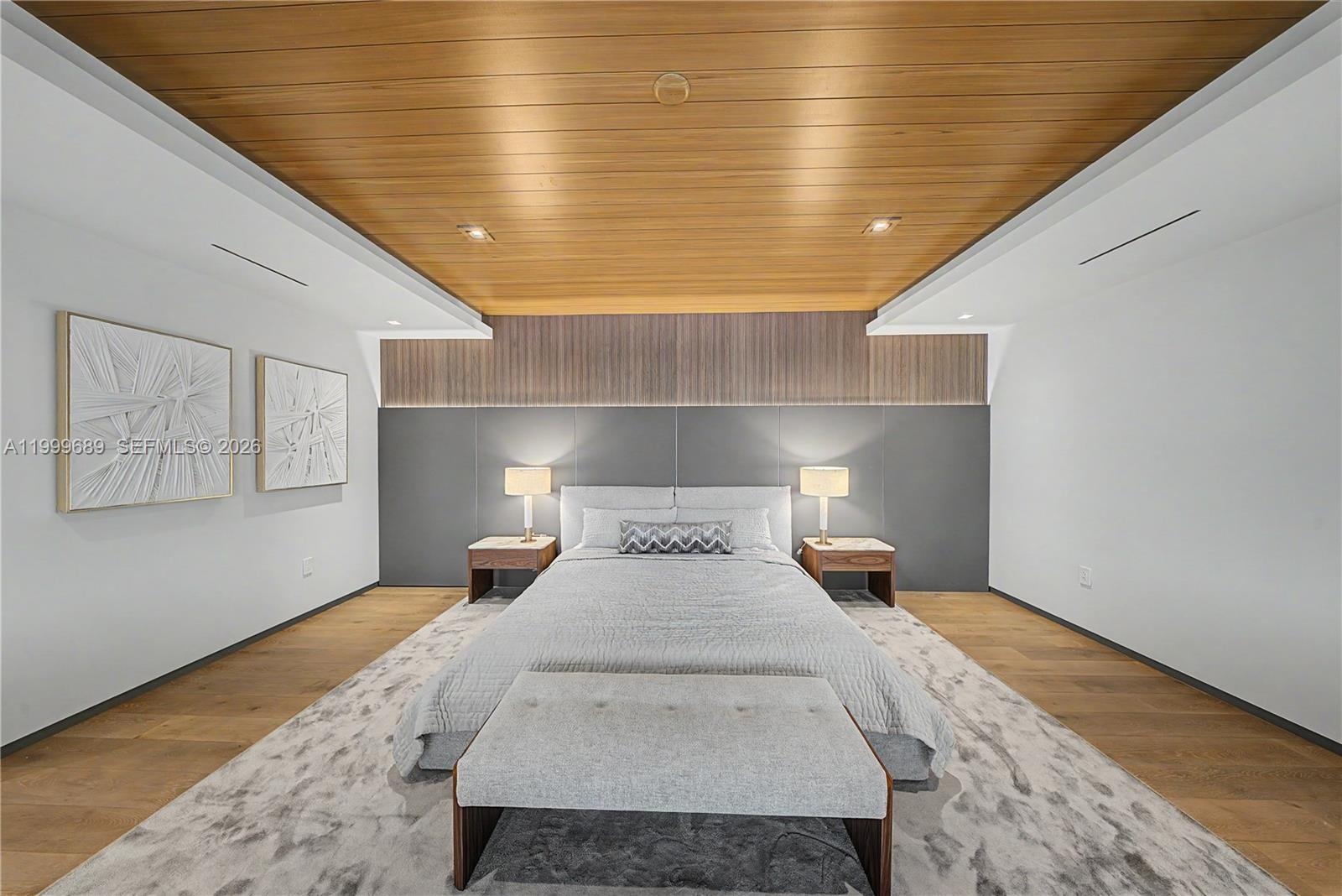 Spanning three levels, the residence features exquisite Italian finishes, walls of glass, and a seamless indoor-outdoor flow. The home includes seven bedrooms, a wellness center and gym, an executive office, and a primary suite positioned to capture sweeping water views, with a spacious his and her bathrooms oriented to the waterfront.