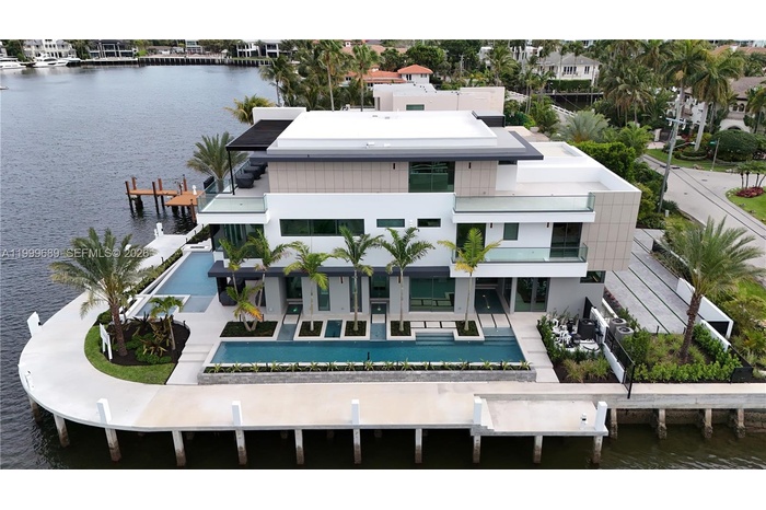 Set on a coveted point lot within the exclusive Harbor Beach enclave, this newly constructed modern estate represents a premium tier of waterfront luxury. Positioned on a rare East Point, the property offers 250 feet of deep-water dockage for large yachts or multiple vessels, with commanding views across Lake Sylvia to the downtown Fort Lauderdale skyline. Expansive water views are experienced from all levels, while the grounds unfold as a private resort setting with multiple pools and outdoor living spaces.