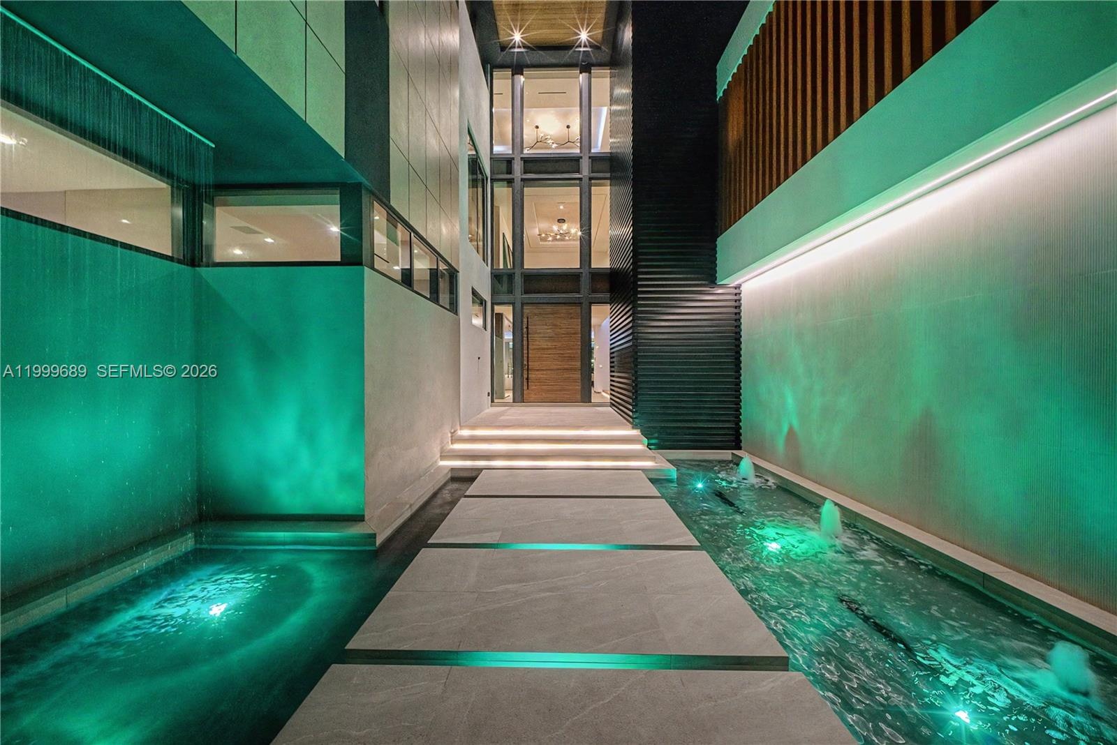 The outdoor setting is a resort-style retreat with multiple pools, a hot and cold plunge, sauna, and steam showers, along with a summer kitchen, bar, dining areas, waterfalls, and fire features. Located within gated Harbor Beach, residents enjoy close proximity to the beach, marina, private surf club, Las Olas, and Fort Lauderdale’s premier dining and coastal lifestyle.