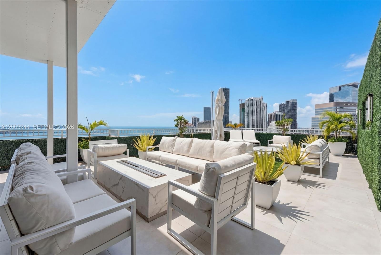 Unique, modern multi-level penthouse in the highly desirable Courvoisier Courts on Brickell Key. This rarely available waterfront residence showcases breathtaking, unobstructed views of Biscayne Bay and the Miami skyline, offering a true home in the sky experience. Fully and meticulously renovated with a clean, contemporary design, the residence features expansive living and dining areas framed by natural light and seamless flow. The first level offers two well-appointed guest bedrooms connected by a spacious Jack & Jill bathroom. The upper level is dedicated to a private primary retreat, complete with two oversized walk-in closets and elegant his-and-hers bathrooms, creating a refined and tranquil suite. Designed for effortless indoor-outdoor living, the home features two private balconies and an impressive 1,500 SF rooftop terrace, perfect for entertaining or enjoying panoramic water and city views. Residents enjoy a full-service lifestyle with resort-style amenities including a bayfront pool, fitness center, racquetball court, and 24-hour security and concierge. Includes three parking spaces, a rare and highly valuable offering. Set within Brickell Key, a private island community with 44 acres of green space and a scenic 1.5 mile waterfront boardwalk, offering a serene, walkable lifestyle just minutes from Brickell’s dining, shopping, and cultural destinations.