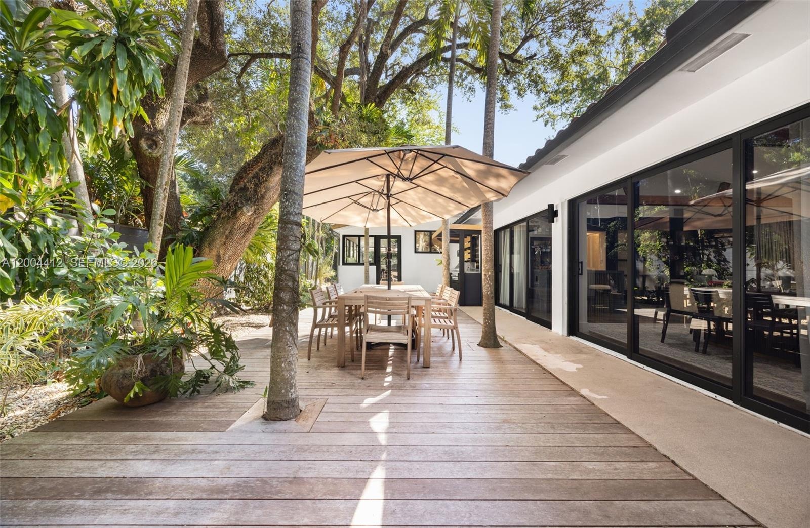 Discover the pinnacle of Tropical Modernism in this South Coconut Grove home, completely reimagined in 2024. Spanning 2,666 SF on a lush 10,500 SF corner lot, this turnkey 3BD/2.5BA residence offers a rare blend of high-end sophistication and the effortless soul of the Grove. The home's innovative design features a newly enclosed breezeway beneath vaulted ceilings, seamlessly uniting the living spaces. The primary suit is a secluded masterpiece, occupying its own private wing for ultimate tranquility. Every inch has been elevated, from the chef's kitchen with Calacatta marble counters and bespoke lighting to spa-caliber bathrooms and expansive windows showcasing the verdant surroundings. The grounds are a private sanctuary designed for the wellness-conscious entertainer. The backyard features a built-in BBQ, a soaring pavilion above a custom fire pit, and a jacuzzi/cold plunge circuit. Complete with a single car garage and secure gated entry, this home is minutes away from the Grove's elite schools and bayfront parks. This property offers significant long-term upside as a luxury asset. The move-in ready home and oversized lot provide the rare opportunity to live comfortably while planning future expansion or development. There is also ample room to add a pool within the current footprint. Experience a lifestyle defined by privacy, design, and Miami elegance.