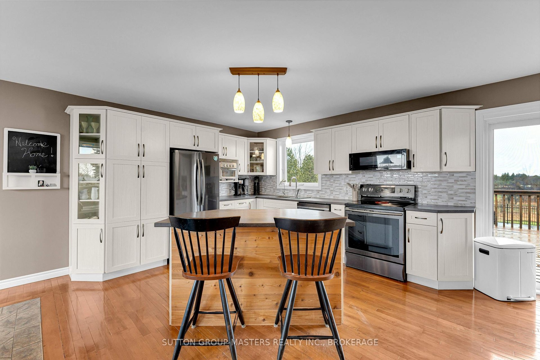 You're not just buying a home-you're stepping into a lifestyle few properties can offer. Set on 18+ acres backing directly onto beautiful Odessa Lake, just 10 minutes from Kingston, this one-of-a-kind bungalow retreat is perfect for families, hobbyists, or anyone seeking a balance of comfort and outdoor adventure. Featuring a newly updated interior, the main level offers 3 bedrooms, 2 full 3-piece bathrooms with heated floors, and a bright open-concept kitchen ideal for entertaining. The cozy living room creates a warm and inviting atmosphere, while a propane fireplace in the office provides an additional space to relax or work from home. The fully finished, newly updated walk-out basement is perfect for hosting guests, complete with a wet bar, oil stove, spacious guest room, and an additional 2-piece bathroom. Step outside to enjoy a partially fenced pool and hot tub area with a pool shed, ideal for summer gatherings. The property also features two ponds (perfect for winter skating), scenic ATV trails, and direct water access with space for a trailer or bunkie. A standout feature is the 30 x 40 ft heated shop with hydro, featuring 16-foot ceilings and a 14 x 12 overhead door-ideal for vehicles, recreational equipment, or workshop use. The attached 2-car garage and large driveway offer ample parking. High-speed internet is available, and the home is on school bus routes. Recent updates include an updated basement, along with new doors and closet additions throughout the home (2026), living room carpet (2022), kitchen refacing, pool fence and pillars, pool liner, siding, soffits and eaves (2021), heated bathroom floors, and windows (2020). Potential for severance, buyer to verify. Don't miss your chance to own this truly unique property.