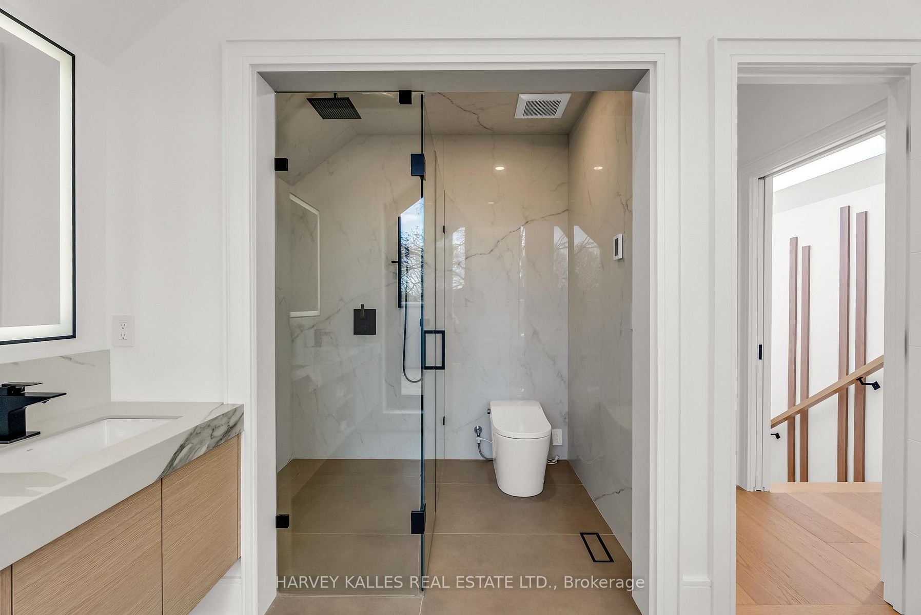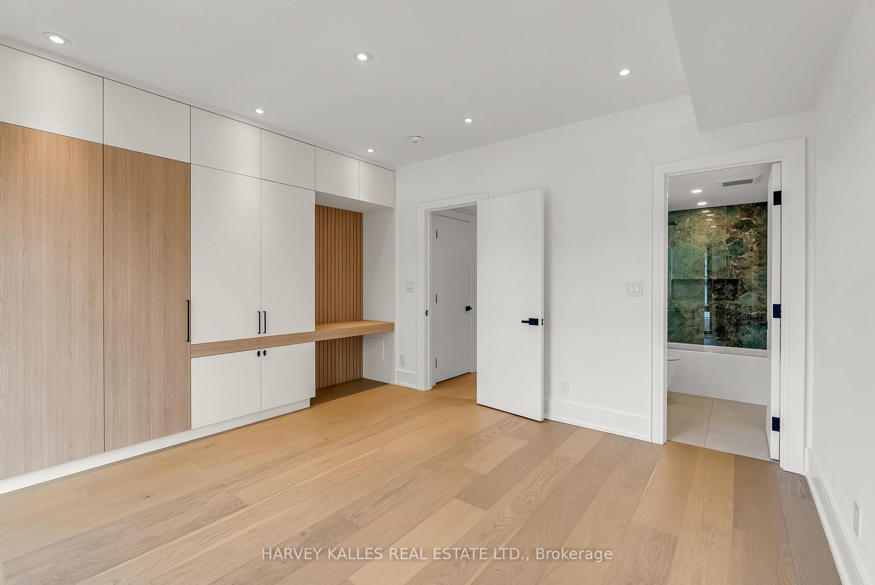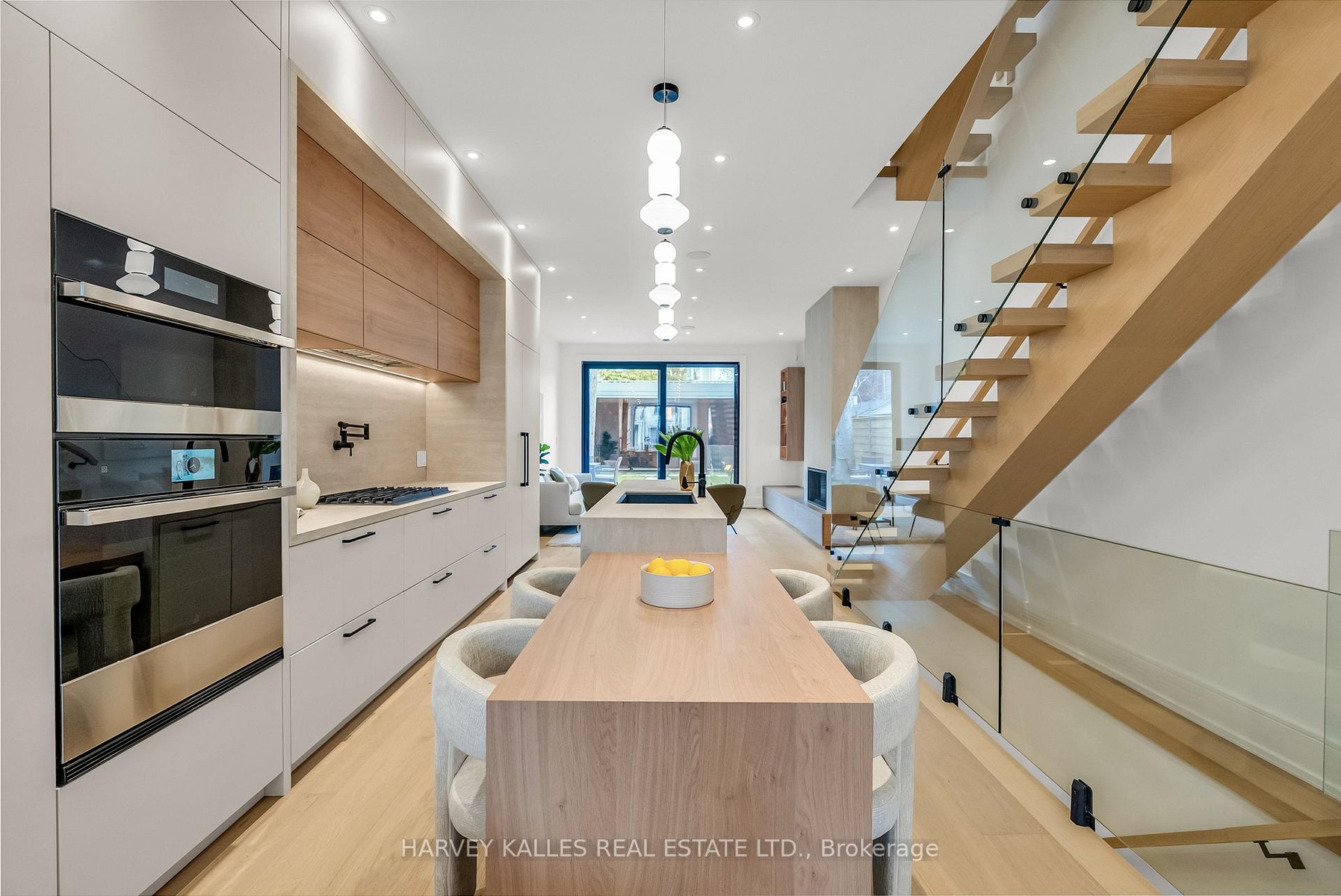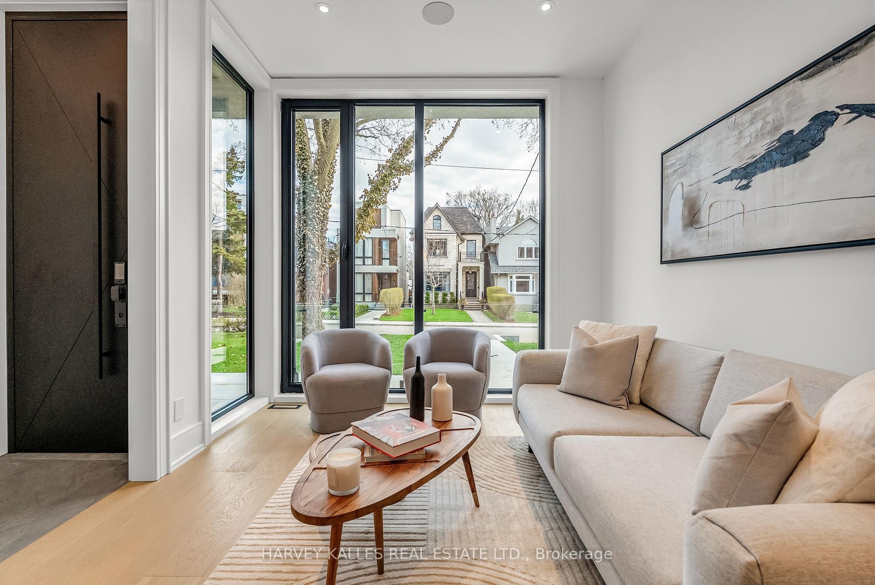 Don't Be Deceived By The Dimensions. This Brand New Custom Residence Delivers Over 2,400 Sq. Ft. Of Thoughtfully Designed Living Space Above Grade, Blending Cutting Edge Technology With Elevated, Turnkey Design. From The Moment You Arrive, The Smart Entry System Featuring Fingerprint And Facial Recognition Sets The Tone For What Is To Come. The Main Level Offers An Elegant Yet Functional Layout, With A Seamless Living And Dining Space That Flows Effortlessly Into A Chef's Kitchen Complete With Custom Cabinetry And Refined Finishes. The Adjoining Family Room Balances Contemporary And Warm, Showcasing Clean Lined Millwork And A Built In Entertainment Unit With Integrated Shelving. Upstairs, The Second Level Features Three Generously Sized Bedrooms With Custom Millwork, Including Built In Wardrobes, Shelves, And Desks, Paired With Beautifully Appointed Bathrooms And A Spacious Second Floor Laundry Room. The Third Floor Is A True Showpiece, Featuring A Stunning Primary Retreat With Vaulted Ceilings, Exposed Beams, A Walkout To A Private Deck, An Oversized Walk In Closet, And A Spa Inspired Ensuite. An Additional Expansive Terrace Offers The Perfect Setting For Morning Coffee Or Quiet Evenings. The Lower Level Impresses With Soaring Ceilings, A Massive Recreation Space, And A Walkout To The Backyard, Complete With A Secondary Laundry Area, Nanny Or In Law Suite, And A Sleek Kitchenette With Beverage Fridge And Cooktop. Throughout, Every Bathroom Is Outfitted With Smart Toilets Featuring Integrated Bidet Functionality. At The Rear, A Custom Designed Pergola Transforms Into A Two Car Garage With A Retractable Tilting Roof, Offering Secure Parking Or A Unique Outdoor Entertaining Space. Ideally Located In The Coveted John Wanless District In Prestigious Lawrence Park, With Walkability To Top Tier Shops, Dining, And Fitness Studios, This Is A Rare Opportunity To Own A Home That Blends Innovation, Design, And Lifestyle.