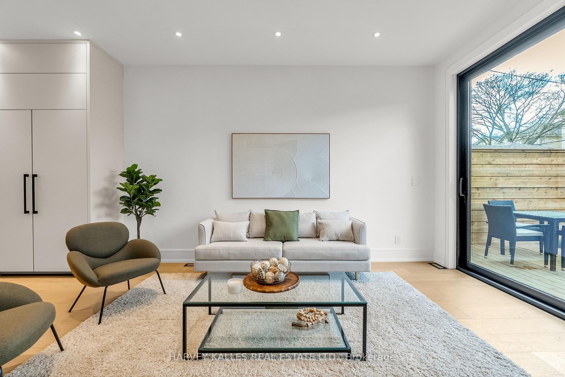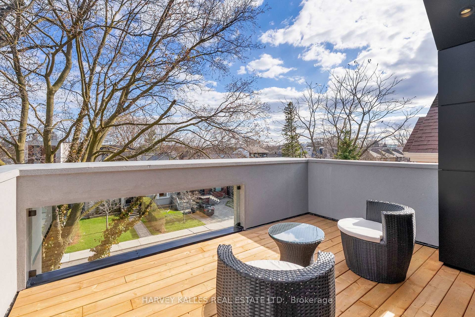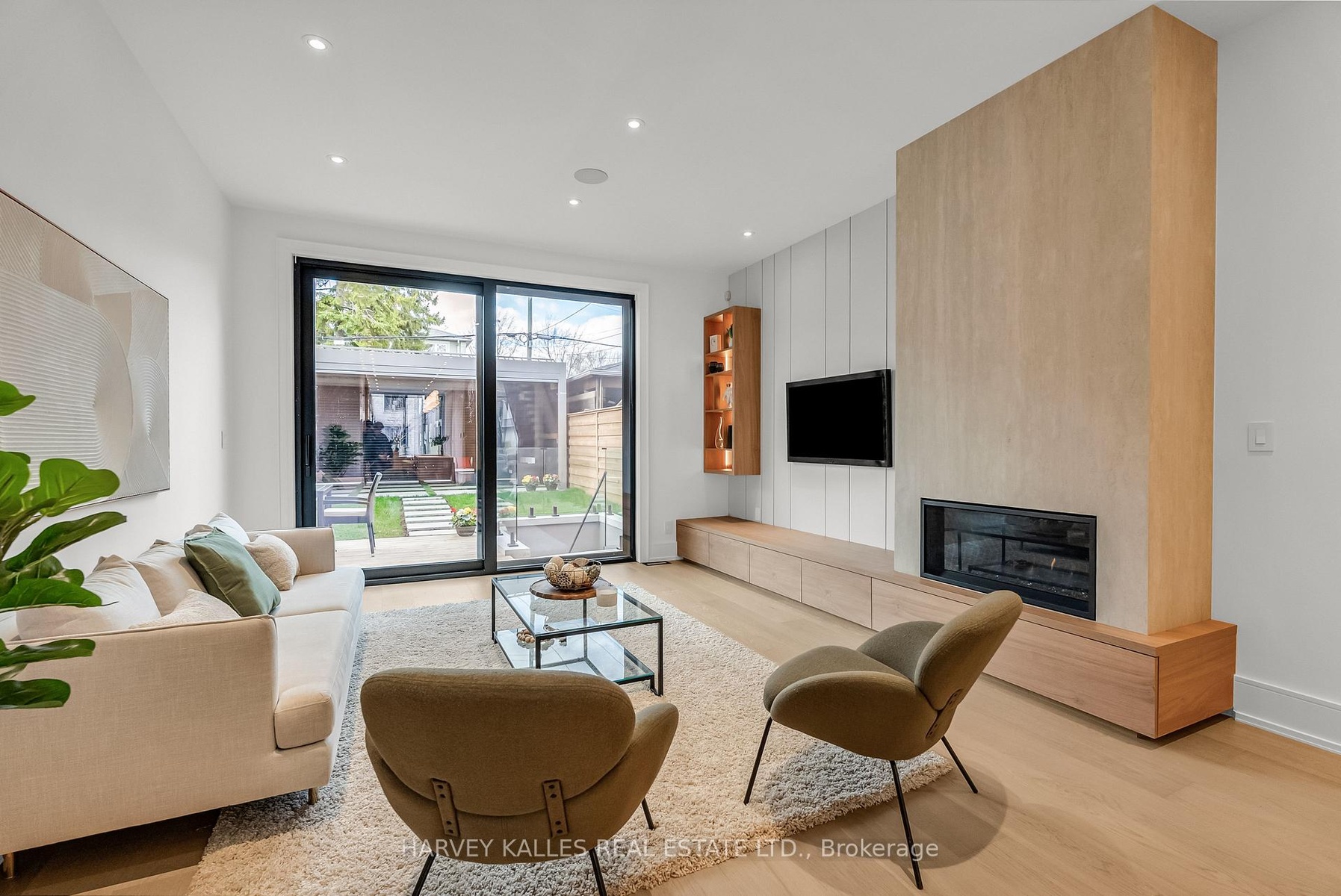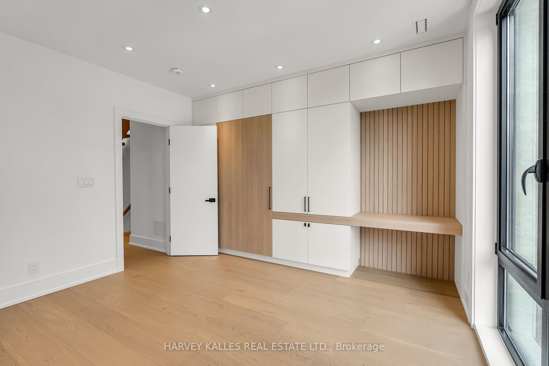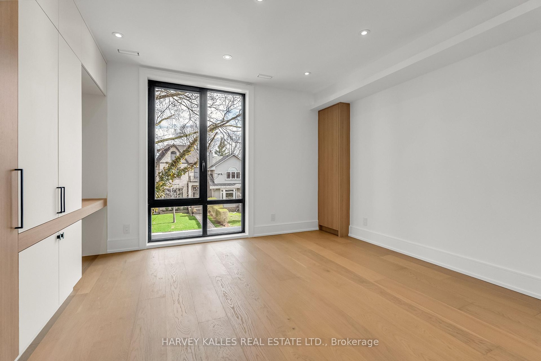Don't Be Deceived By The Dimensions. This Brand New Custom Residence Delivers Over 2,400 Sq. Ft. Of Thoughtfully Designed Living Space Above Grade, Blending Cutting Edge Technology With Elevated, Turnkey Design. From The Moment You Arrive, The Smart Entry System Featuring Fingerprint And Facial Recognition Sets The Tone For What Is To Come. The Main Level Offers An Elegant Yet Functional Layout, With A Seamless Living And Dining Space That Flows Effortlessly Into A Chef's Kitchen Complete With Custom Cabinetry And Refined Finishes. The Adjoining Family Room Balances Contemporary And Warm, Showcasing Clean Lined Millwork And A Built In Entertainment Unit With Integrated Shelving. Upstairs, The Second Level Features Three Generously Sized Bedrooms With Custom Millwork, Including Built In Wardrobes, Shelves, And Desks, Paired With Beautifully Appointed Bathrooms And A Spacious Second Floor Laundry Room. The Third Floor Is A True Showpiece, Featuring A Stunning Primary Retreat With Vaulted Ceilings, Exposed Beams, A Walkout To A Private Deck, An Oversized Walk In Closet, And A Spa Inspired Ensuite. An Additional Expansive Terrace Offers The Perfect Setting For Morning Coffee Or Quiet Evenings. The Lower Level Impresses With Soaring Ceilings, A Massive Recreation Space, And A Walkout To The Backyard, Complete With A Secondary Laundry Area, Nanny Or In Law Suite, And A Sleek Kitchenette With Beverage Fridge And Cooktop. Throughout, Every Bathroom Is Outfitted With Smart Toilets Featuring Integrated Bidet Functionality. At The Rear, A Custom Designed Pergola Transforms Into A Two Car Garage With A Retractable Tilting Roof, Offering Secure Parking Or A Unique Outdoor Entertaining Space. Ideally Located In The Coveted John Wanless District In Prestigious Lawrence Park, With Walkability To Top Tier Shops, Dining, And Fitness Studios, This Is A Rare Opportunity To Own A Home That Blends Innovation, Design, And Lifestyle.