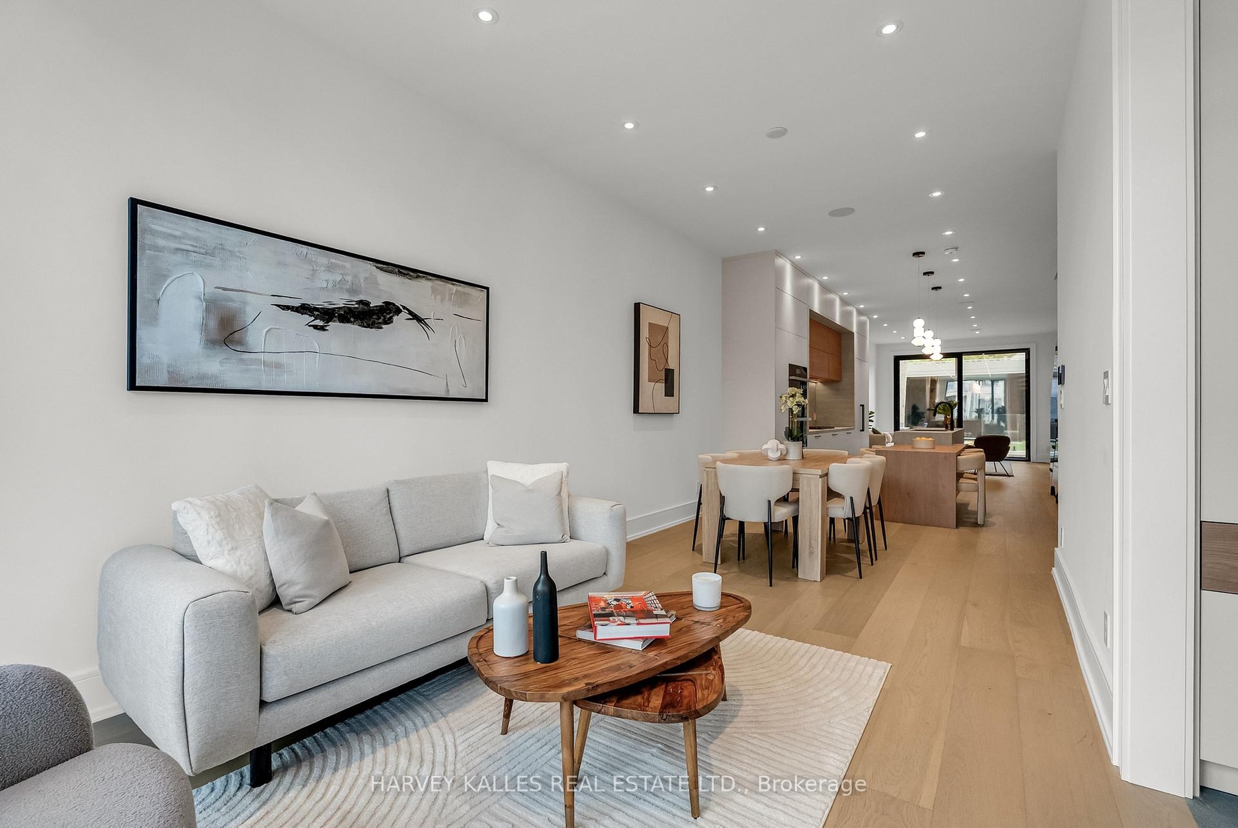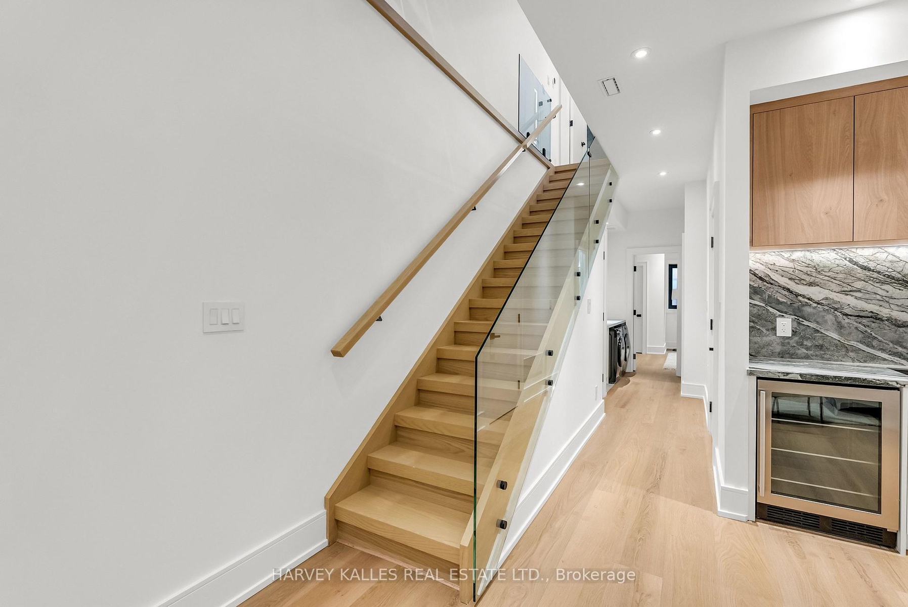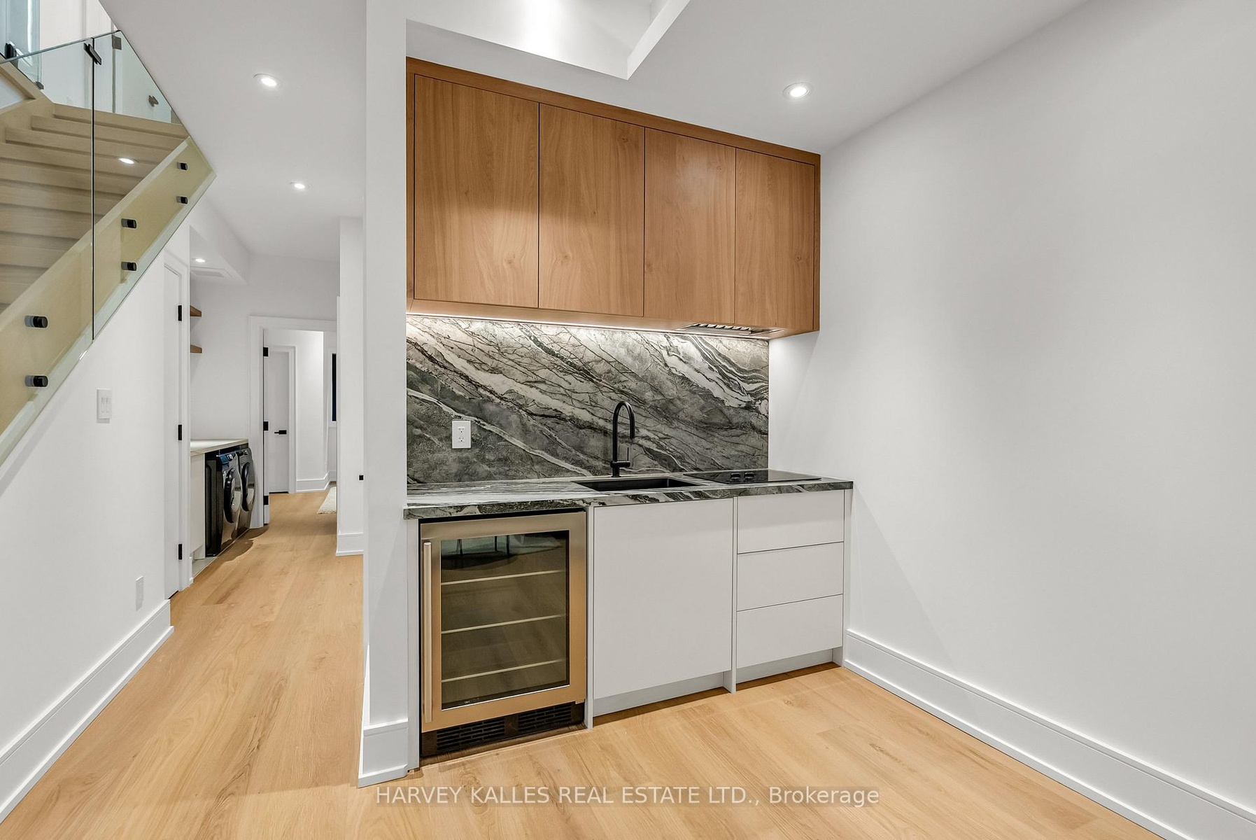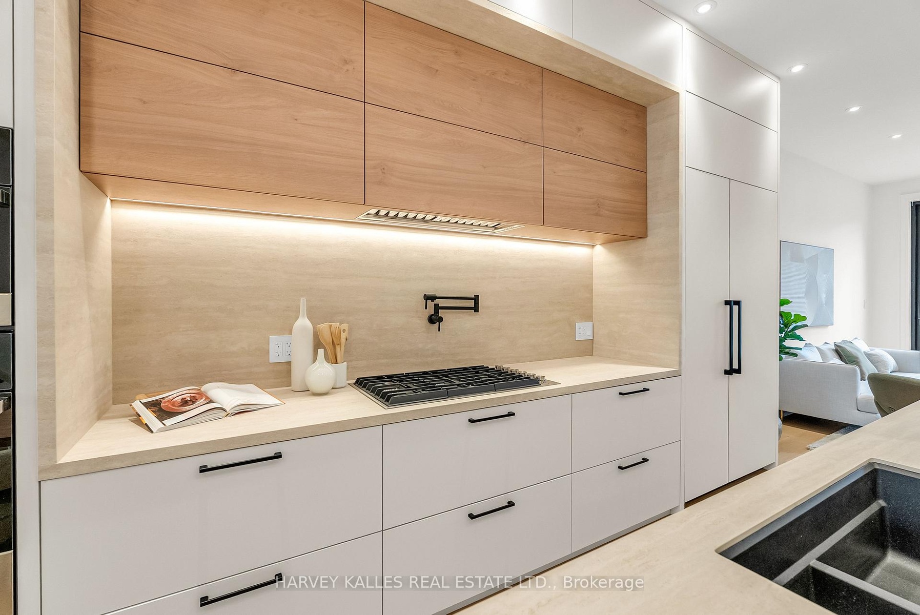 Don't Be Deceived By The Dimensions. This Brand New Custom Residence Delivers Over 2,400 Sq. Ft. Of Thoughtfully Designed Living Space Above Grade, Blending Cutting Edge Technology With Elevated, Turnkey Design. From The Moment You Arrive, The Smart Entry System Featuring Fingerprint And Facial Recognition Sets The Tone For What Is To Come. The Main Level Offers An Elegant Yet Functional Layout, With A Seamless Living And Dining Space That Flows Effortlessly Into A Chef's Kitchen Complete With Custom Cabinetry And Refined Finishes. The Adjoining Family Room Balances Contemporary And Warm, Showcasing Clean Lined Millwork And A Built In Entertainment Unit With Integrated Shelving. Upstairs, The Second Level Features Three Generously Sized Bedrooms With Custom Millwork, Including Built In Wardrobes, Shelves, And Desks, Paired With Beautifully Appointed Bathrooms And A Spacious Second Floor Laundry Room. The Third Floor Is A True Showpiece, Featuring A Stunning Primary Retreat With Vaulted Ceilings, Exposed Beams, A Walkout To A Private Deck, An Oversized Walk In Closet, And A Spa Inspired Ensuite. An Additional Expansive Terrace Offers The Perfect Setting For Morning Coffee Or Quiet Evenings. The Lower Level Impresses With Soaring Ceilings, A Massive Recreation Space, And A Walkout To The Backyard, Complete With A Secondary Laundry Area, Nanny Or In Law Suite, And A Sleek Kitchenette With Beverage Fridge And Cooktop. Throughout, Every Bathroom Is Outfitted With Smart Toilets Featuring Integrated Bidet Functionality. At The Rear, A Custom Designed Pergola Transforms Into A Two Car Garage With A Retractable Tilting Roof, Offering Secure Parking Or A Unique Outdoor Entertaining Space. Ideally Located In The Coveted John Wanless District In Prestigious Lawrence Park, With Walkability To Top Tier Shops, Dining, And Fitness Studios, This Is A Rare Opportunity To Own A Home That Blends Innovation, Design, And Lifestyle.