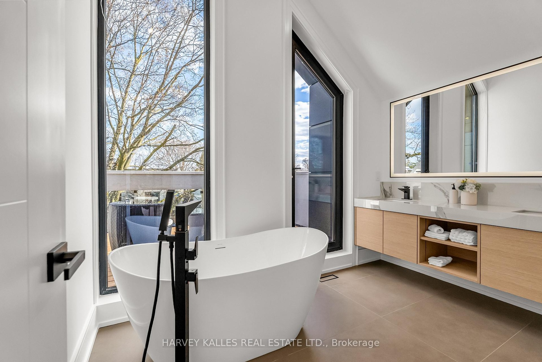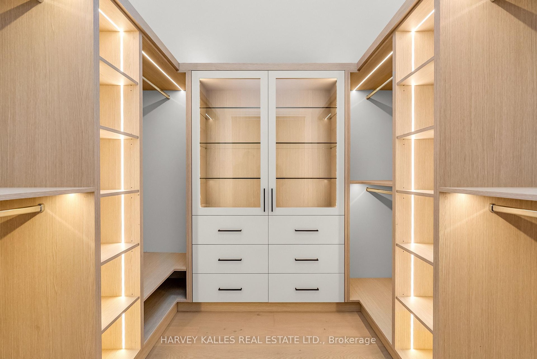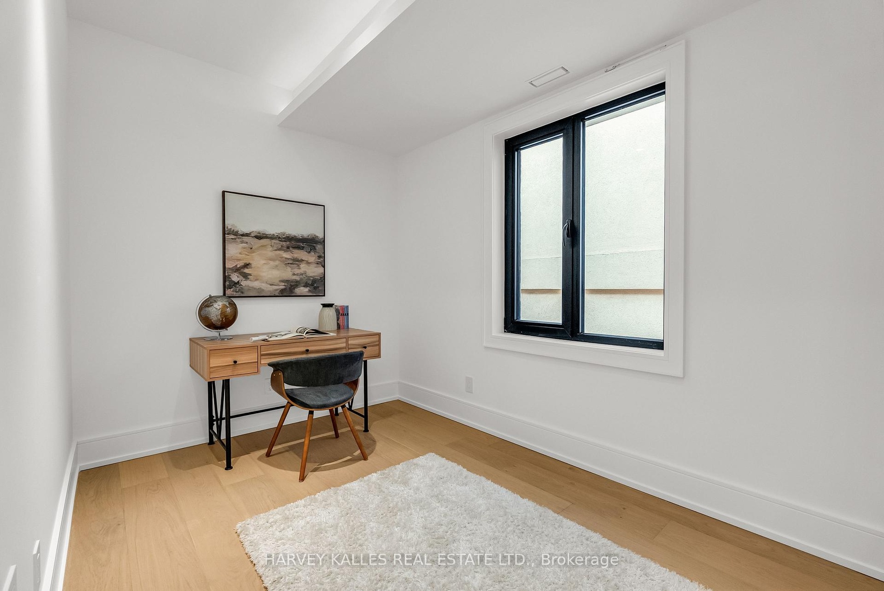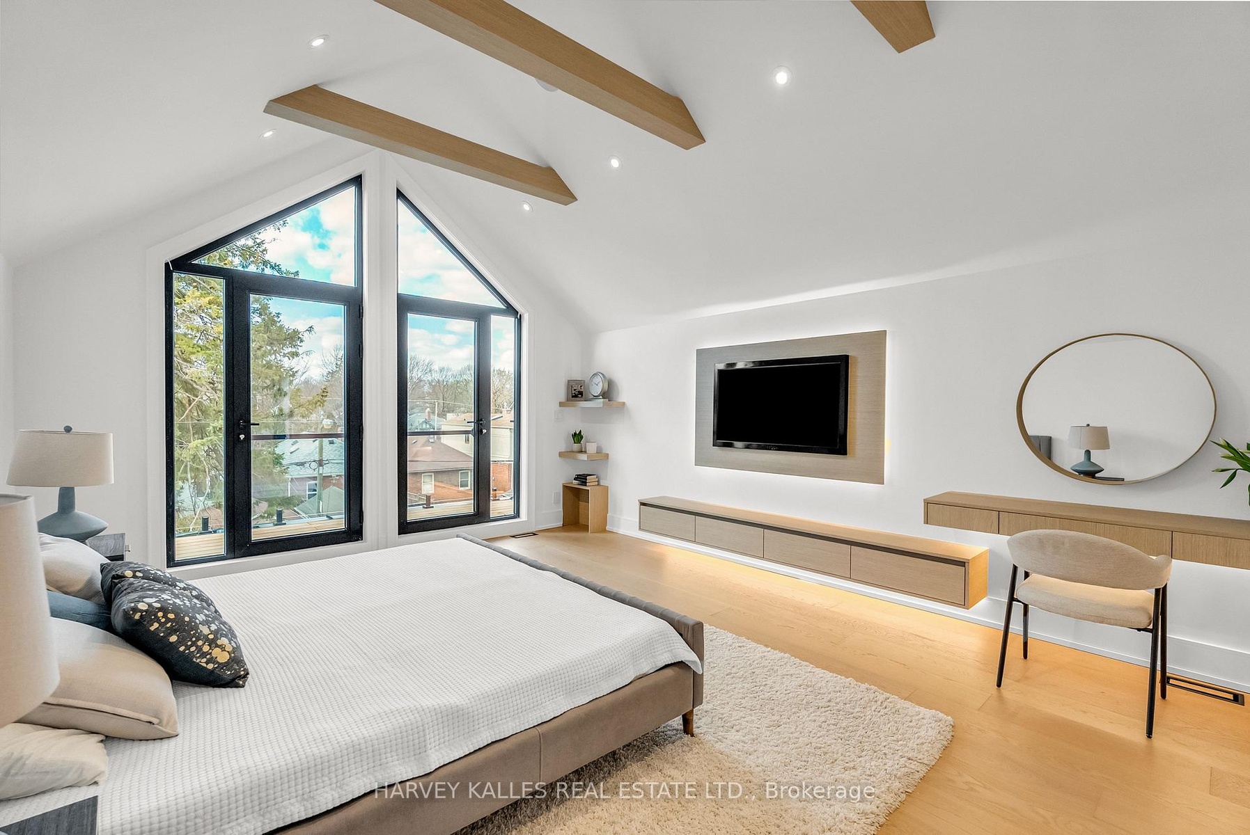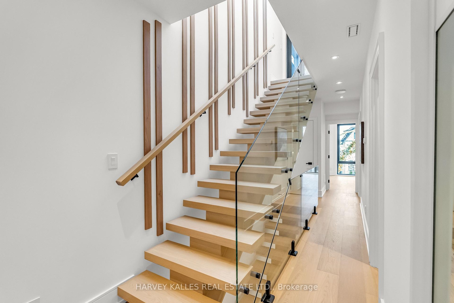 Don't Be Deceived By The Dimensions. This Brand New Custom Residence Delivers Over 2,400 Sq. Ft. Of Thoughtfully Designed Living Space Above Grade, Blending Cutting Edge Technology With Elevated, Turnkey Design. From The Moment You Arrive, The Smart Entry System Featuring Fingerprint And Facial Recognition Sets The Tone For What Is To Come. The Main Level Offers An Elegant Yet Functional Layout, With A Seamless Living And Dining Space That Flows Effortlessly Into A Chef's Kitchen Complete With Custom Cabinetry And Refined Finishes. The Adjoining Family Room Balances Contemporary And Warm, Showcasing Clean Lined Millwork And A Built In Entertainment Unit With Integrated Shelving. Upstairs, The Second Level Features Three Generously Sized Bedrooms With Custom Millwork, Including Built In Wardrobes, Shelves, And Desks, Paired With Beautifully Appointed Bathrooms And A Spacious Second Floor Laundry Room. The Third Floor Is A True Showpiece, Featuring A Stunning Primary Retreat With Vaulted Ceilings, Exposed Beams, A Walkout To A Private Deck, An Oversized Walk In Closet, And A Spa Inspired Ensuite. An Additional Expansive Terrace Offers The Perfect Setting For Morning Coffee Or Quiet Evenings. The Lower Level Impresses With Soaring Ceilings, A Massive Recreation Space, And A Walkout To The Backyard, Complete With A Secondary Laundry Area, Nanny Or In Law Suite, And A Sleek Kitchenette With Beverage Fridge And Cooktop. Throughout, Every Bathroom Is Outfitted With Smart Toilets Featuring Integrated Bidet Functionality. At The Rear, A Custom Designed Pergola Transforms Into A Two Car Garage With A Retractable Tilting Roof, Offering Secure Parking Or A Unique Outdoor Entertaining Space. Ideally Located In The Coveted John Wanless District In Prestigious Lawrence Park, With Walkability To Top Tier Shops, Dining, And Fitness Studios, This Is A Rare Opportunity To Own A Home That Blends Innovation, Design, And Lifestyle.