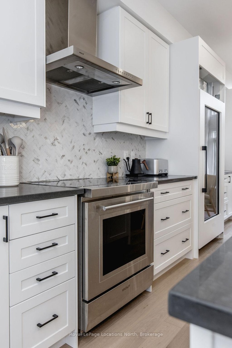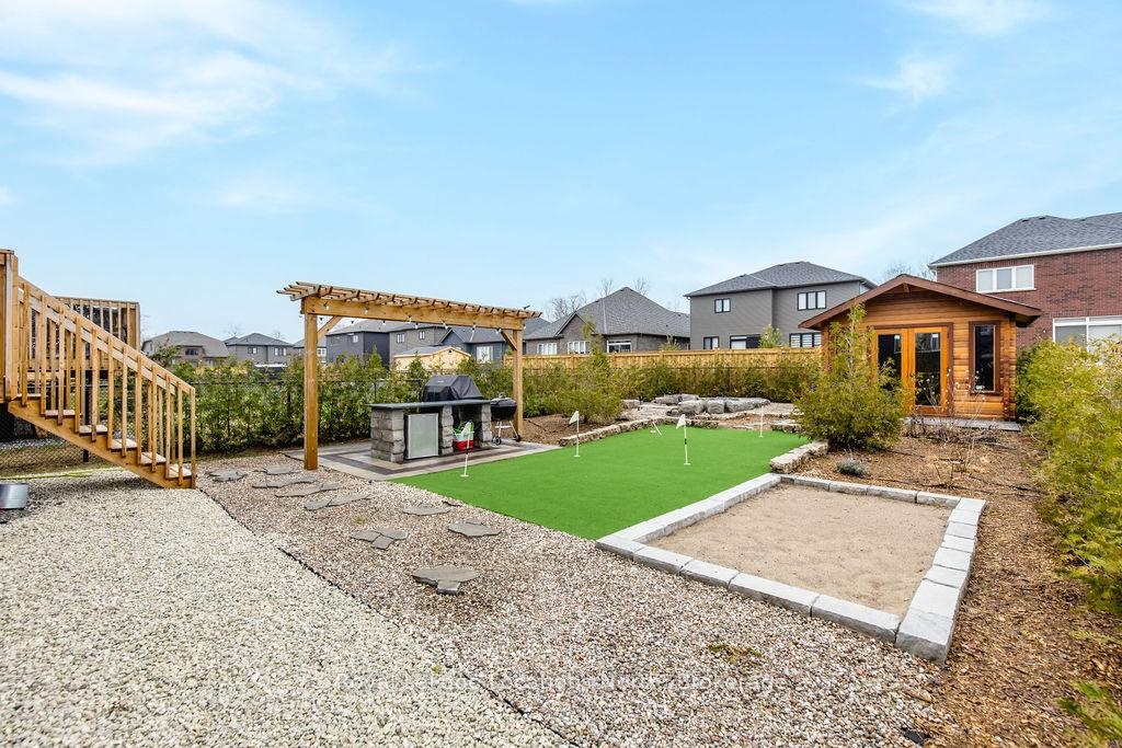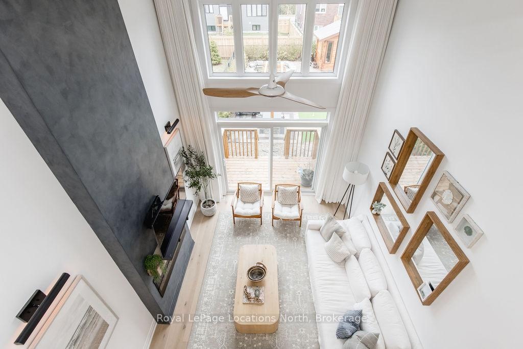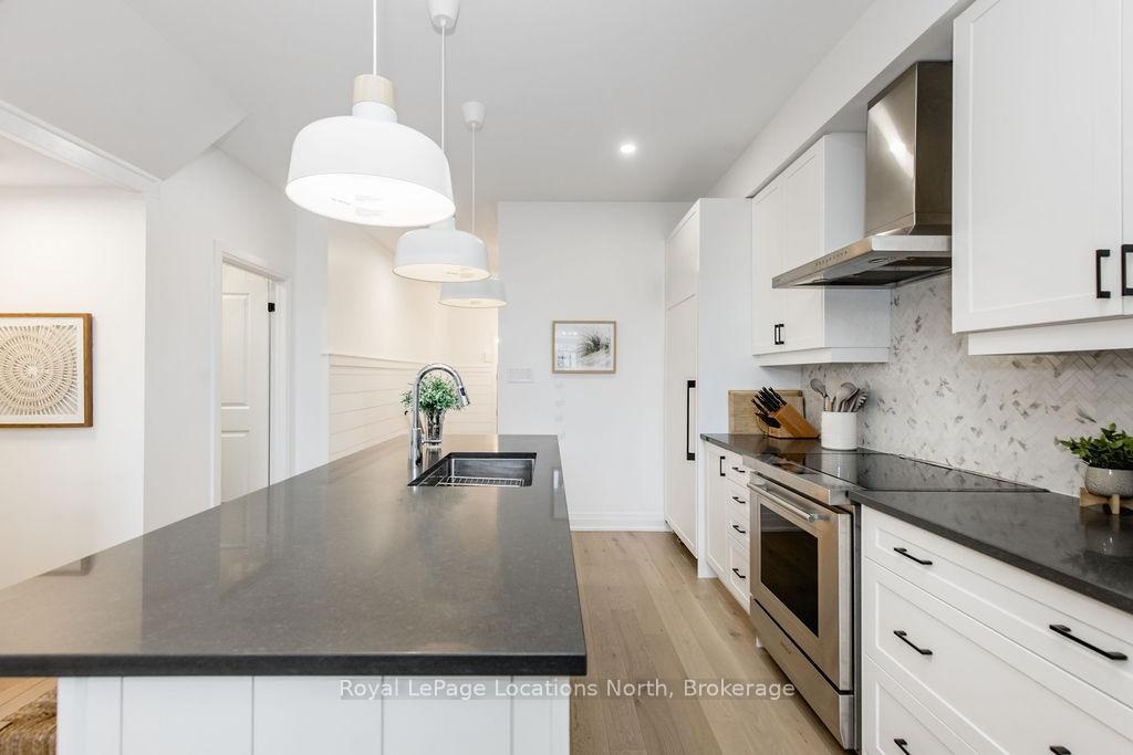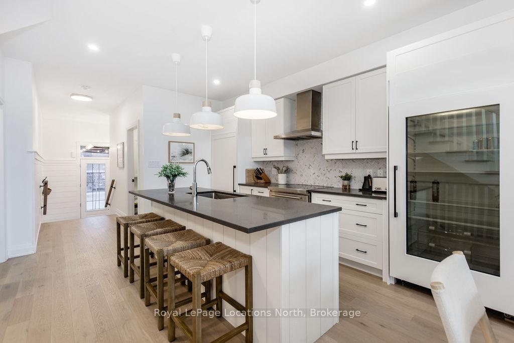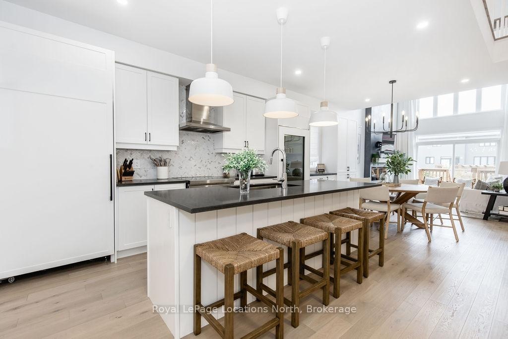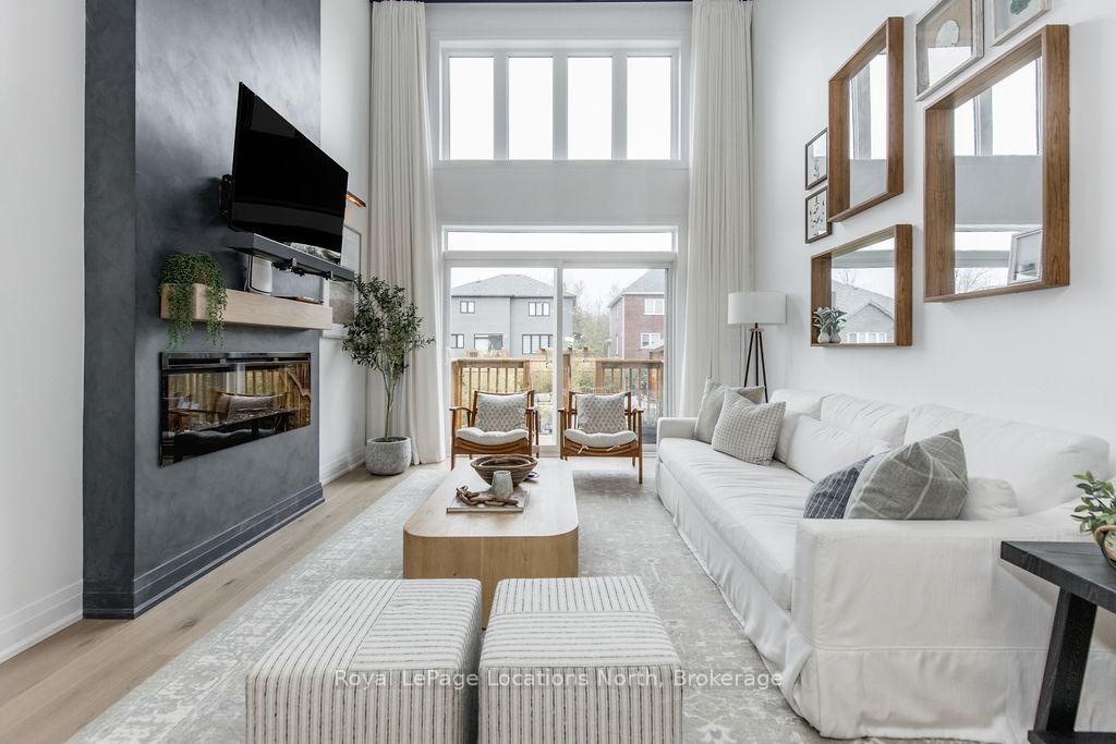 A truly one-of-a-kind designer residence where luxury, craftsmanship, and custom design come together in every detail. Professionally designed and furnished, this home offers a level of finish and cohesion rarely seen, creating a space that feels elevated and sophisticated. Designed with a refined coastal beach house aesthetic, this is a home you will never want to leave.An oversized covered front porch and oversized front entry set the tone, leading into a stunning open-concept kitchen that immediately impresses. Anchored by a large quartz island, the space is complemented by custom cabinetry with pull-out organizers, an extended pantry wall with a dedicated coffee bar, and premium appliances including a Wolf Induction cooktop and Sub-Zero fridge and freezer.The kitchen flows into a breathtaking living room defined by soaring 16ft ceilings, a dramatic floor-to-ceiling limewash fireplace, and expansive sliding doors with remote-controlled curtains that connect indoor and outdoor living. Every element has been carefully designed, from the engineered birch hardwood flooring to the custom millwork, shiplap feature walls, wainscotting, and refined lighting throughout.The main floor offers two bedrooms, including a serene primary suite with a spa-inspired 5-piece ensuite and a fully customized walk-in closet.The second bedroom features a semi-ensuite with a private water closet, ideal for guests or family.Upstairs, a stunning loft space with its own 3PC bath and two additional bedrooms provides flexible living for a home office, lounge, or family retreat.The outdoor setting is equally impressive, with a fully landscaped and fenced yard, concrete patio, custom outdoor kitchen, putting green, and fire pit, designed for both entertaining and relaxation. A well-designed mudroom with inside access to the garage and main floor laundry. The finished 2-car garage is impressive, featuring epoxy floors and immaculate custom wall organizers, all set on a beautifully landscaped lot.