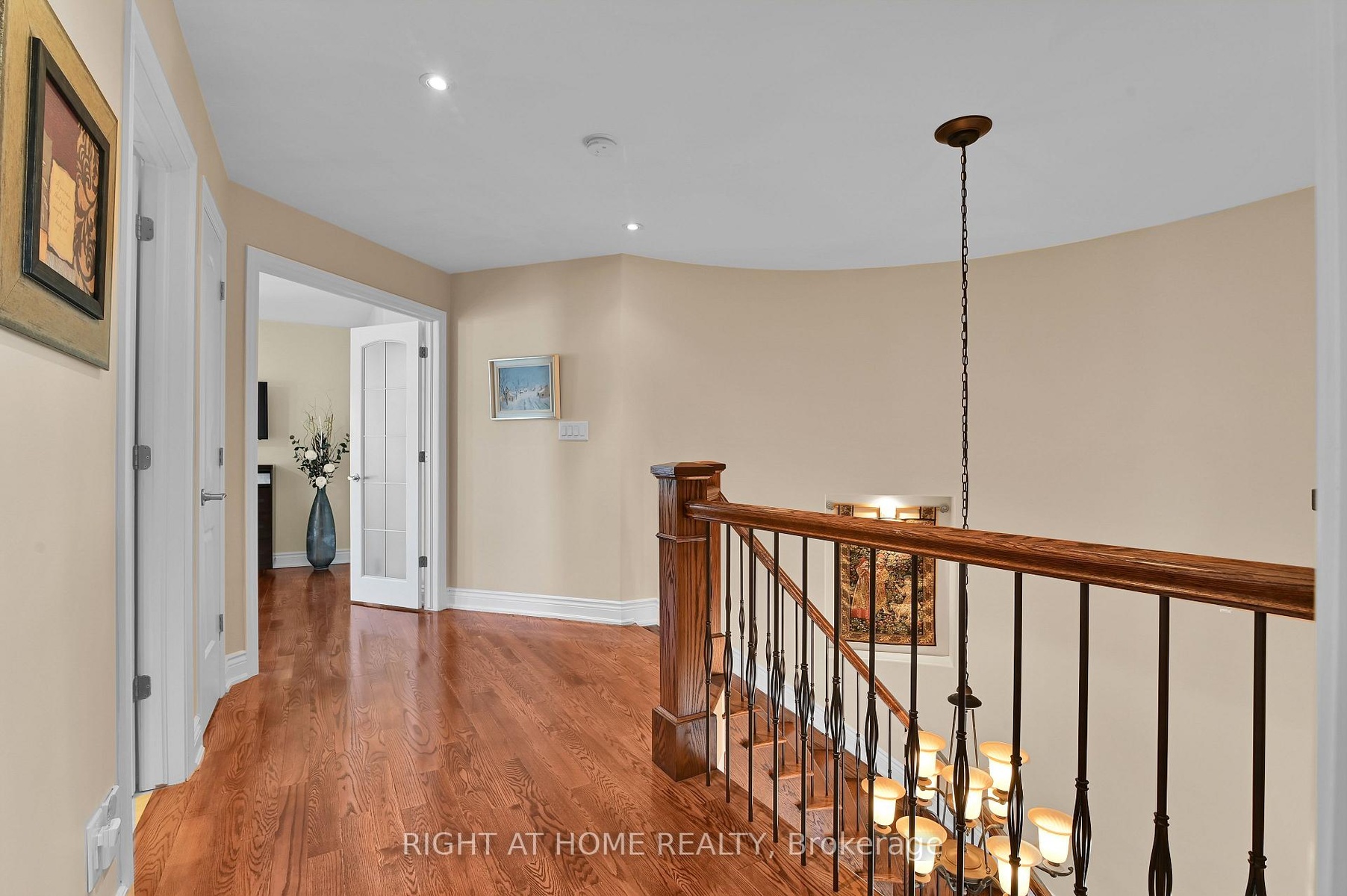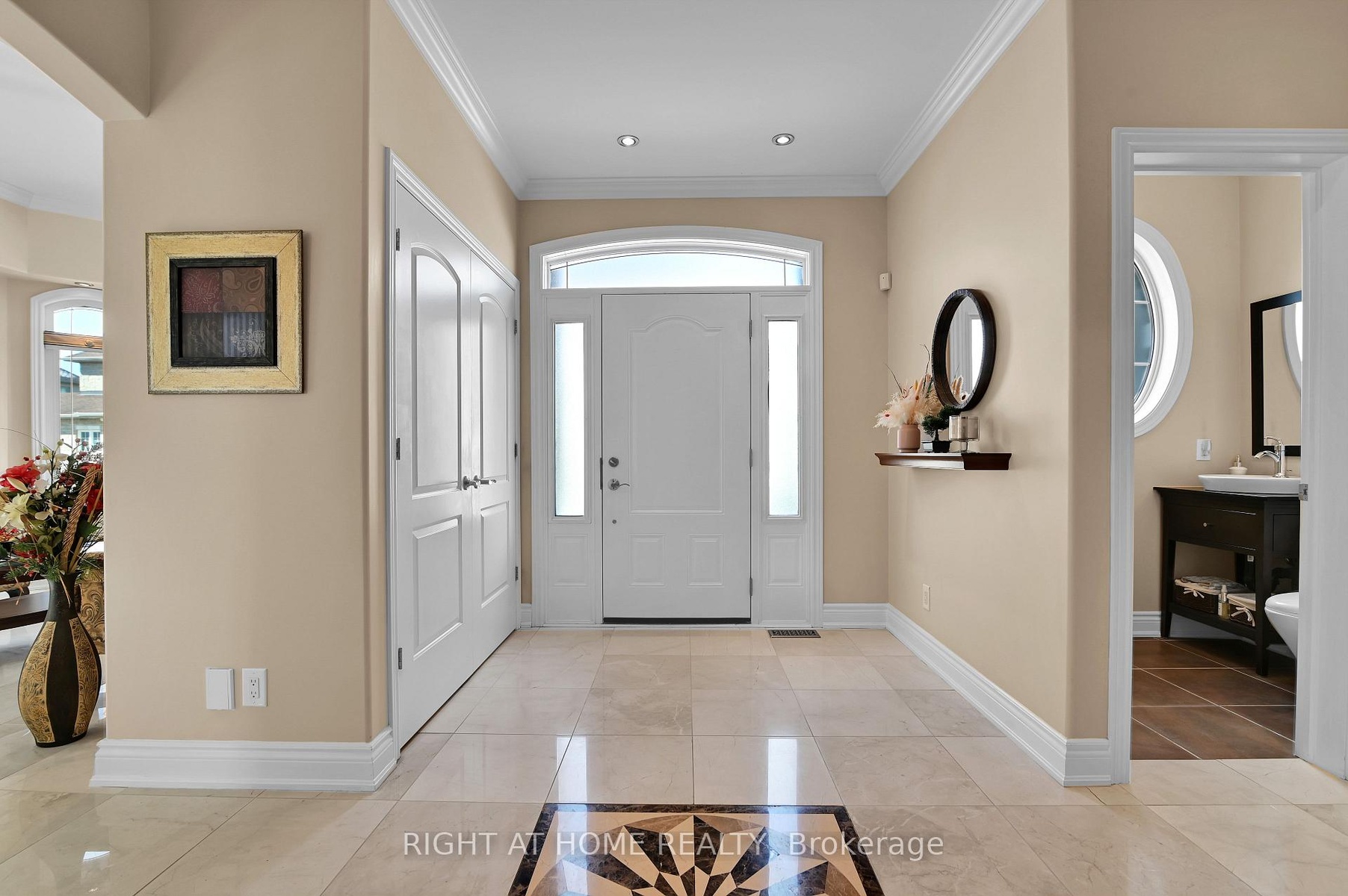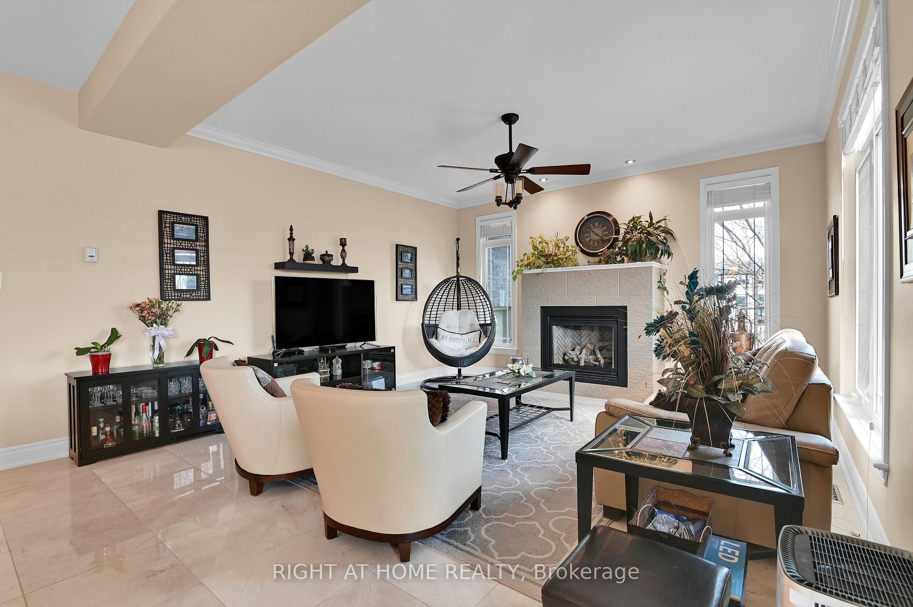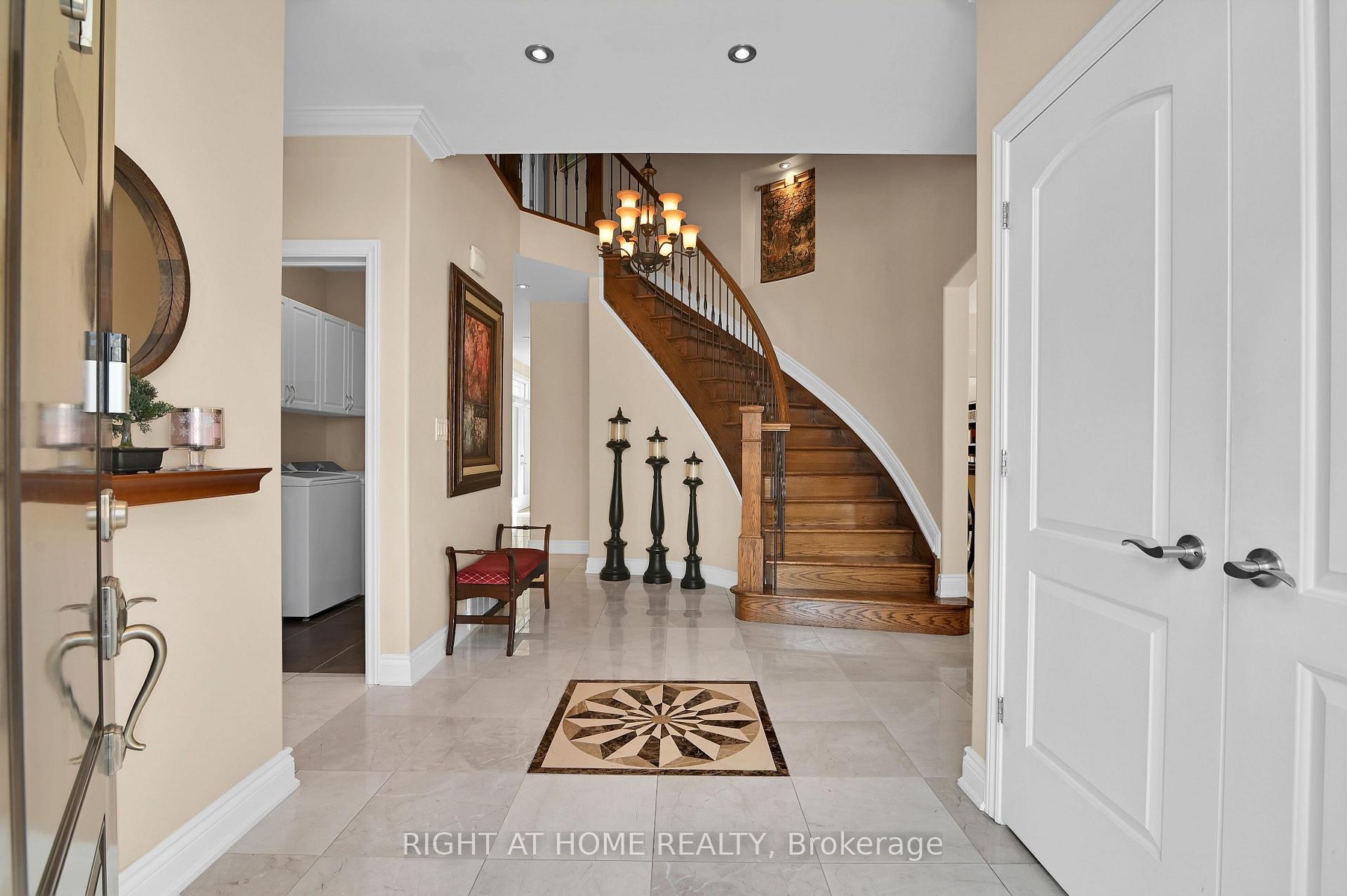 Tucked away in a peaceful enclave, this custom-built stone house delivers sophisticated design, premium finishes, and an enviable lifestyle. It sits on a beautifully landscaped corner lot surrounded by vibrant flower beds and is perfect for summer entertaining, morning coffee/evening relaxation under the stars. Step into the grand foyer featuring custom inlaid marble medallion floor in a dramatic compass design, a curved oak staircase with hardwood stairs and ornate wrought-iron railings, and soaring ceilings bathed in natural light. The main level flows effortlessly into generously proportioned principal rooms. The gourmet kitchen is a chef's dream with rich dark cherry wood cabinetry, sleek black granite countertops, a large central island with breakfast bar and top-tiered stainless steel appliances. It opens seamlessly to the family room anchored by a striking stone fireplace and warm hardwood floors. Adjacent, the formal living and dining areas impress with arched windows dressed in custom blinds, multiple chandeliers, crown moulding, and neutral designer tones that create an inviting yet refined atmosphere. You will love the 11 feet super high ceiling through out and an additional office/bedroom in the corner to meet your various needs. Upstairs are three spacious bedrooms offer oversized windows flooding with light and a serene palette. The master bedroom ensuite features his and her sink, dark wood vanity and a separate toilet with a close door and.Downstairs, the fully finished recreation room is an entertainer's delight-complete with a full-size ping-pong table, comfortable lounge seating, and can be converted to an in-law suite by adding a small kitchenette. This house was designed by the current owner and was built with love and passion: 9-inch poured concrete foundation, solid wood, reinforced roof support just to mention a few. 750$ per year association fee to cover the snow plowing for the private rd. Hot-water tank is rental at 50$ including hst.