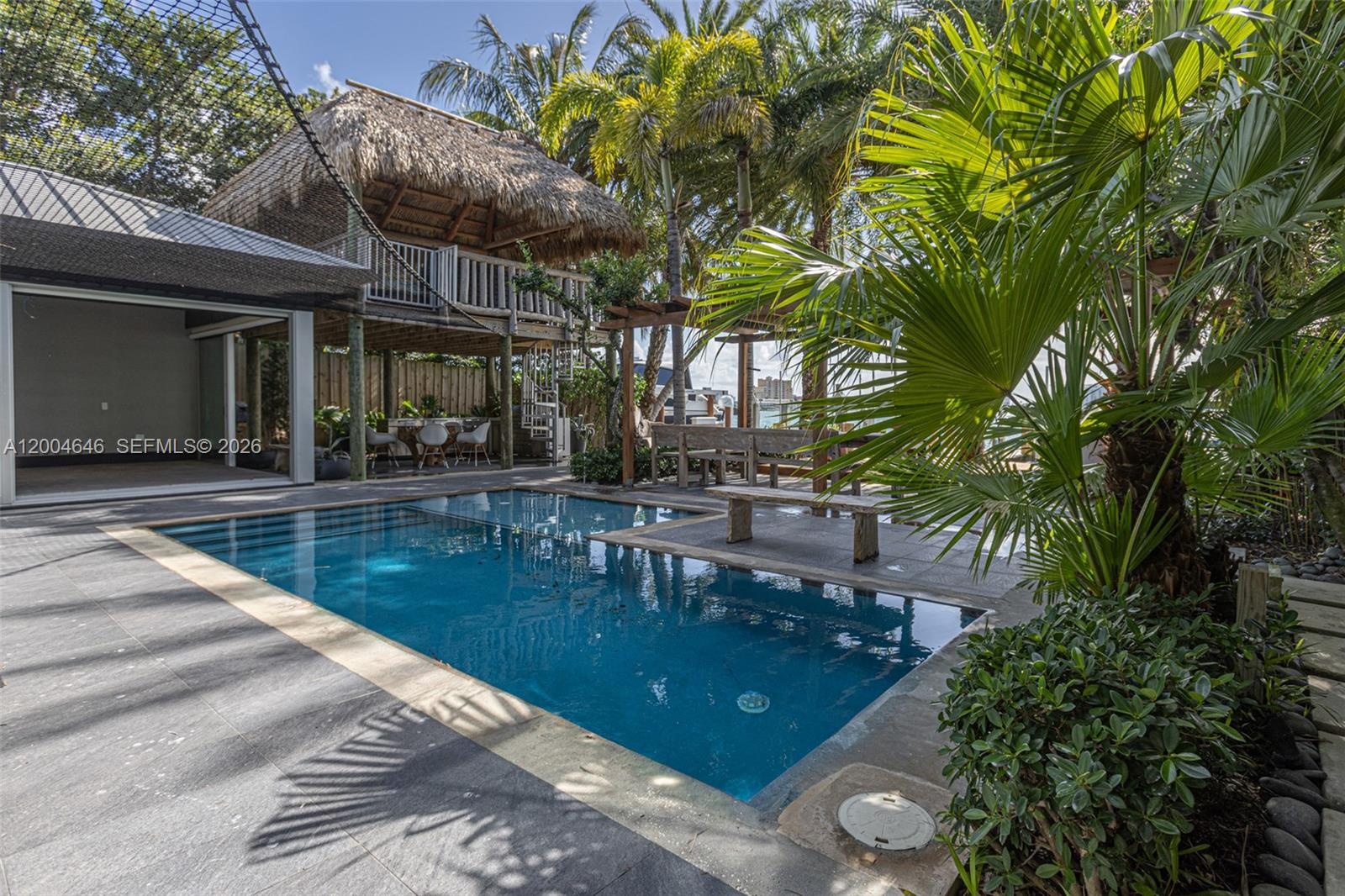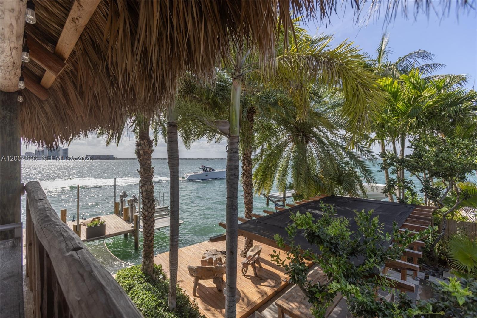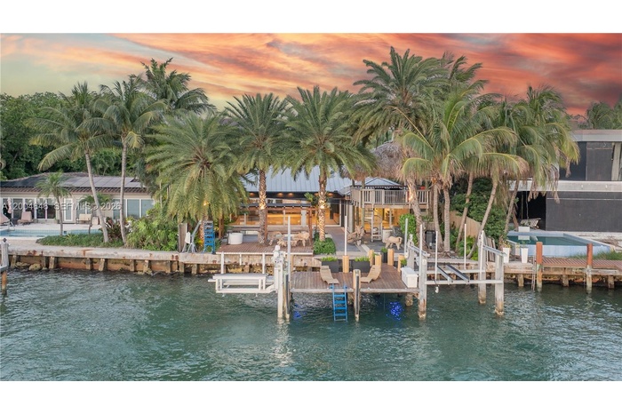 A rare waterfront home with a design you will not find again. Located on a quiet cul-de-sac inside the gated community of Normandy Shores, Set on a 9,000 SF lot with 80 FT of direct bay frontage, this property offers privacy, space, and open water views, access to golf, tennis, basketball courts, and parks. Set on the island’s Terrace and shared with only a few homes, it captures wide open bay views and stunning sunsets. Built in 2015, the home offers approx. 3,442 SF with 4 bedrooms and 4 bathrooms. The layout flows through open living and dining areas into a modern kitchen designed for both function and entertaining. From the moment you arrive, the home creates a calm feel. A bamboo garden welcomes you, leading to a striking 30 ft interior waterfall that sets the tone throughout. The outdoor space is built to enjoy. Lush landscaping surrounds a pool, outdoor kitchen, and multiple terraces. Relax in the outdoor soaking tub, host gatherings under the two story tiki hut, or enjoy quiet evenings by the water. The private dock allows you to take in the bay at sunset. The property also includes boat and jet ski lifts, a davit, and plans for a future two car garage. A true opportunity for someone looking for a different kind of waterfront living experience.