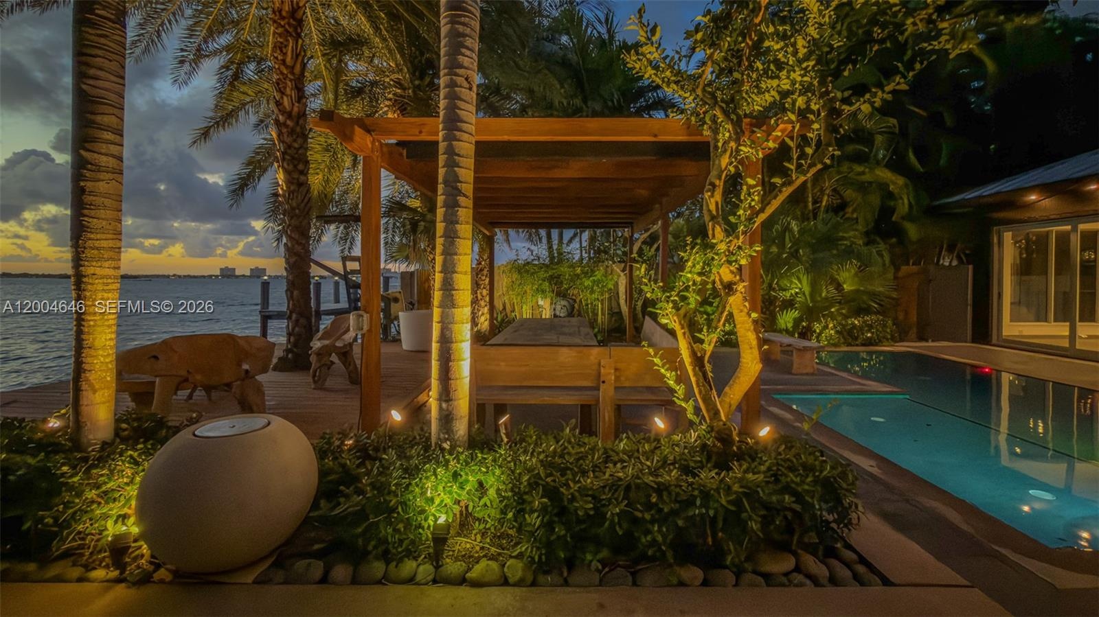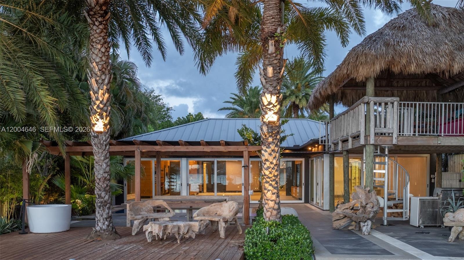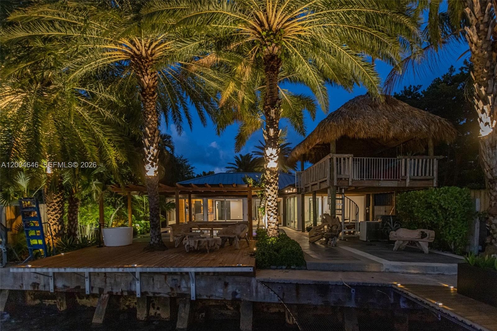 A rare waterfront home with a design you will not find again. Located on a quiet cul-de-sac inside the gated community of Normandy Shores, Set on a 9,000 SF lot with 80 FT of direct bay frontage, this property offers privacy, space, and open water views, access to golf, tennis, basketball courts, and parks. Set on the island’s Terrace and shared with only a few homes, it captures wide open bay views and stunning sunsets. Built in 2015, the home offers approx. 3,442 SF with 4 bedrooms and 4 bathrooms. The layout flows through open living and dining areas into a modern kitchen designed for both function and entertaining. From the moment you arrive, the home creates a calm feel. A bamboo garden welcomes you, leading to a striking 30 ft interior waterfall that sets the tone throughout. The outdoor space is built to enjoy. Lush landscaping surrounds a pool, outdoor kitchen, and multiple terraces. Relax in the outdoor soaking tub, host gatherings under the two story tiki hut, or enjoy quiet evenings by the water. The private dock allows you to take in the bay at sunset. The property also includes boat and jet ski lifts, a davit, and plans for a future two car garage. A true opportunity for someone looking for a different kind of waterfront living experience.