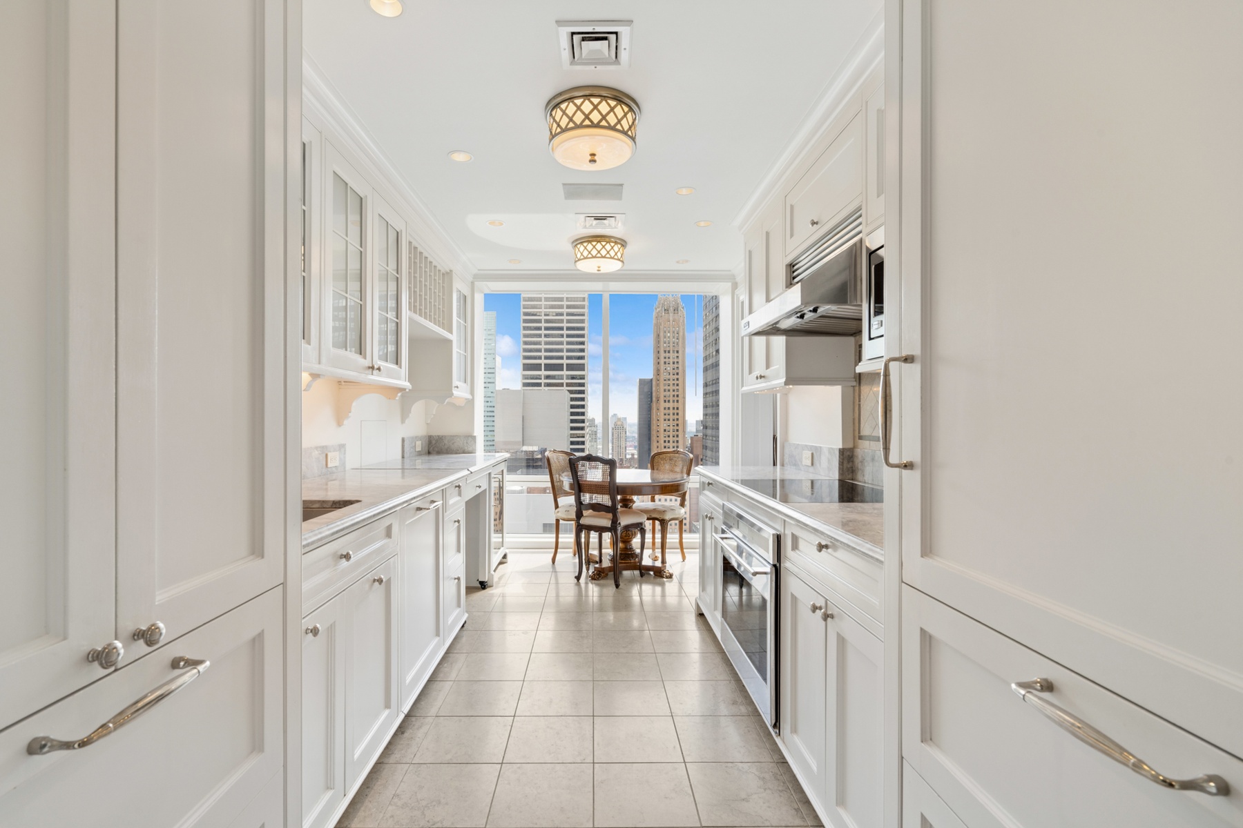 Available Furnished or Unfurnished. Featuring show-stopping views, SOUTH of the Empire State Building and Saint Patrick's Cathedral, and EAST of the EAST RIVER, the elegant apartment welcomes you home. As you enter the lovely gallery of this extraordinary residence, beautiful walnut wood floors lead you to the formal dining room which opens into a graceful living room well-appointed with elegant coaches and furnishings. This exquisite room surrounded by floor-to-ceiling windows invites majestic views to become the setting for your bespoke lifestyle. The charming renovated eat-in kitchen is complete with top-of-the-line appliances and custom cabinetry. The master bedroom with impeccably renovated marble bath en suite is graced by a faux fireplace perfectly placed to create a serene environment as a respite after a busy day in the most exciting city in the world. The second bedroom/library offers beautiful built-ins and a beautiful white marble bath. The many fitted closets and well-designed floor plan contribute to your realizing that your discovering this unique home is your reward for not settling for the ordinary.
