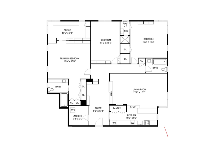 Located on the top floor with no overhead neighbors, the home opens into a welcoming foyer with an adjacent generously proportioned mud-room with Miele Washer/Dryer. The windowed chef's kitchen boasts marble countertops and backsplash, custom walnut cabinetry, and premium appliances including a Viking range, SubZero refrigerator, Bosch dishwasher, GE Monogram wine fridge, and abundant kitchen/pantry storage.
