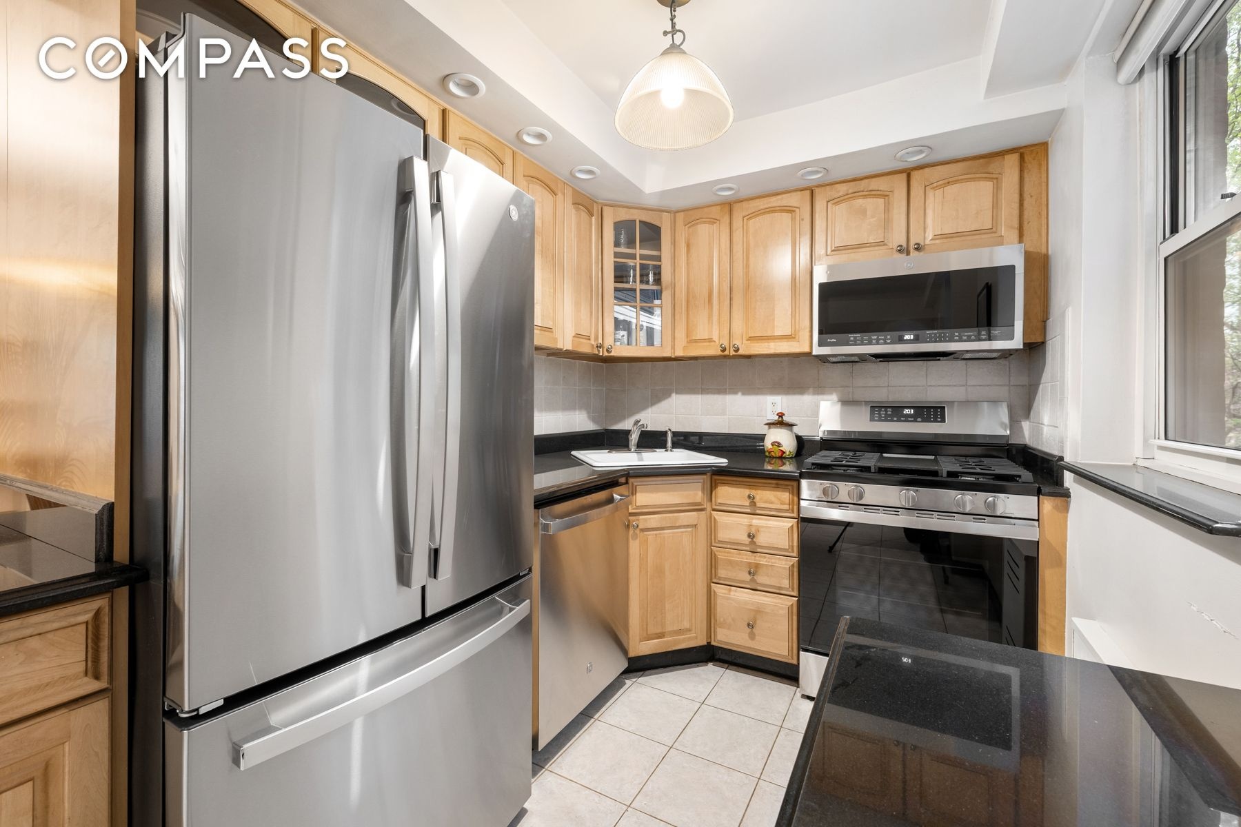 Apartment 2E is a warm, inviting, updated home that is great for entertaining, with its open kitchen and recently installed stainless steel appliances.
