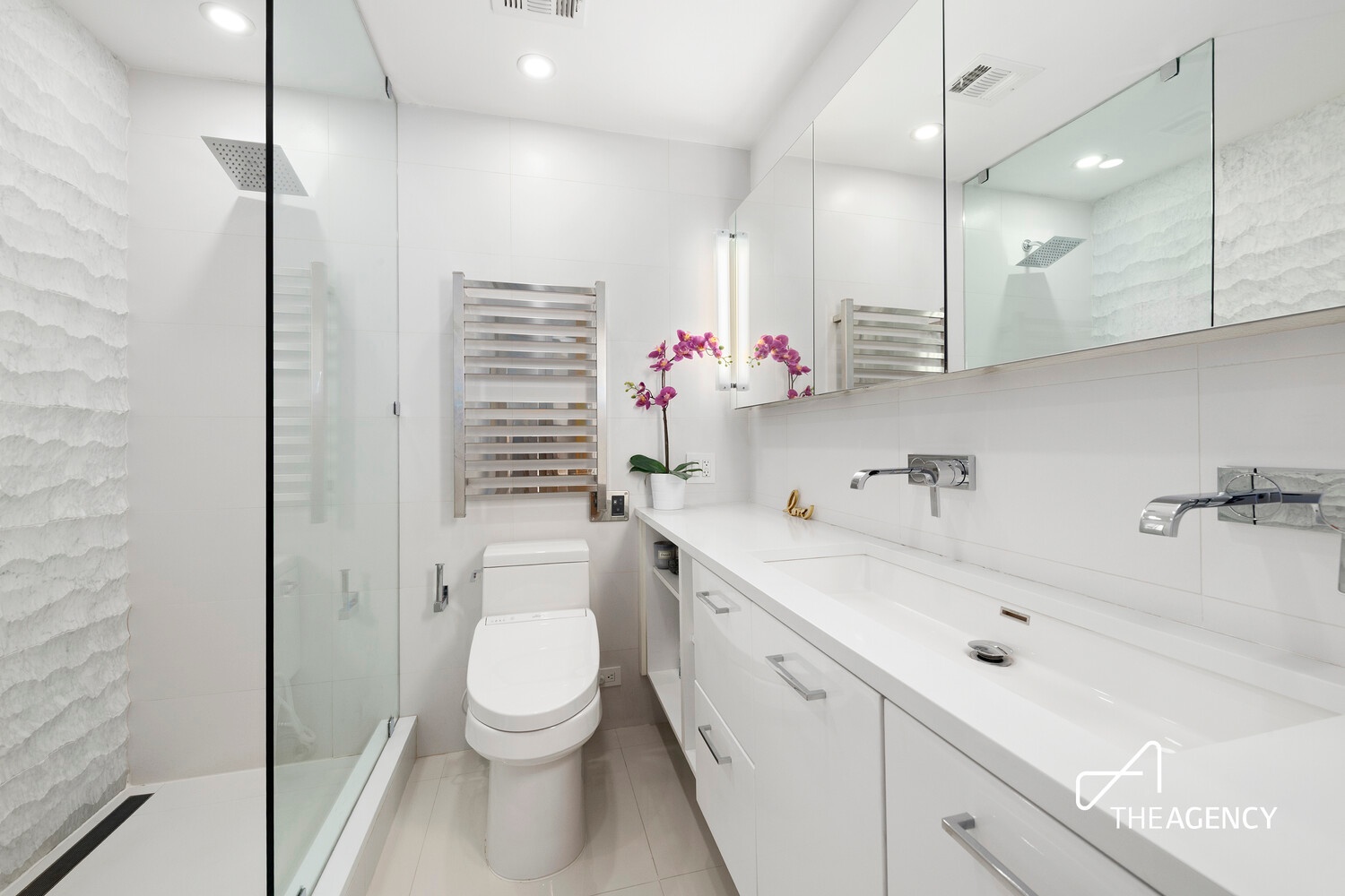 The primary suite is a private sanctuary, offering a generous walk-in closet and a spa-quality shower designed with a calming, elevated sensibility. The second bedroom is equally versatile and refined, effortlessly accommodating guests, a home office, or a hybrid of both. Throughout the home, custom storage solutions have been intelligently integrated, reinforcing both form and function.