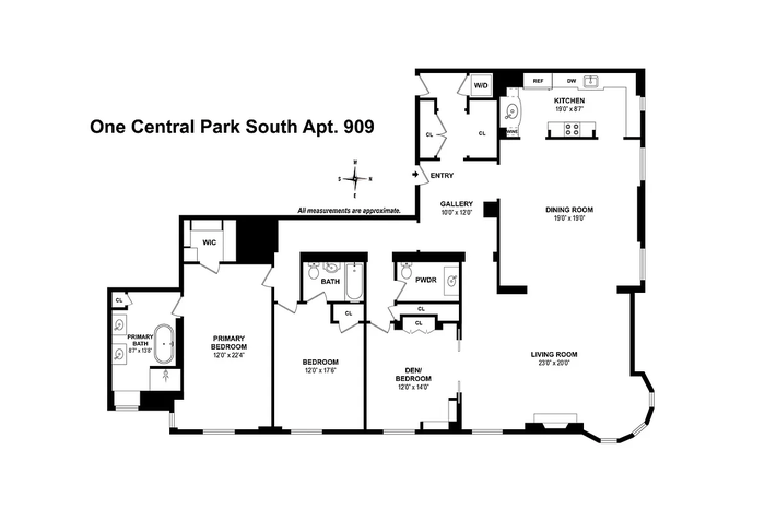 Residence 909 is a beautifully designed corner residence spanning approximately 2,900 square feet, offering 3 bedrooms and 2.5 bathrooms with sweeping views of Central Park and Fifth Avenue. Bathed in natural light, the home features an elegant foyer that opens into expansive living and dining rooms anchored by a rounded bay window overlooking the park. Rich architectural detailing, bespoke millwork, and a curated mix of herringbone, narrow plank, and parquet wood flooring define the interiors. The marble-clad chef’s kitchen is outfitted with a La Cornue range, Miele dishwasher, Sub-Zero refrigeration, and integrated wine storage, while a sophisticated den with coffered ceilings provides flexibility as a library or third bedroom. The primary suite is privately situated and features a custom walk-in closet and a luxurious five-fixture marble bath.